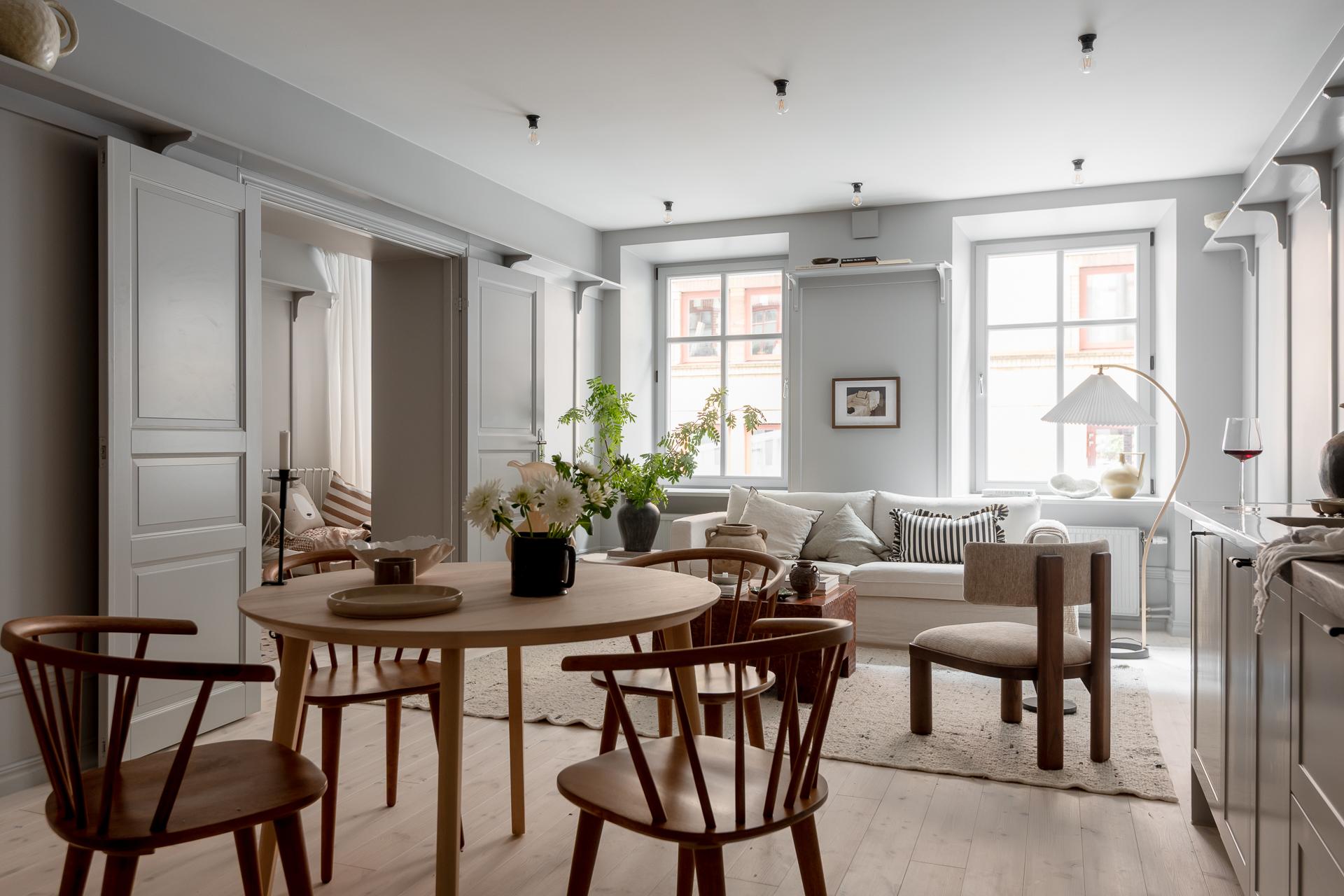 Det vilar en trivsam townhouse känsla över den här nybyggda trean i ett vackert hus från 1903, och från det stora sovrummet leder en altandörr ut till en egen uteplats på en tyst innergård. Lägenheten har färdigställts med påkostade och smakfulla materialval, och allt är i nyskick. Detaljer såsom furugolv, höga fotlister och spegeldörrar i massivt trä knyter an till husets sekelskifteskaraktär. Planlösningen är inbjudande, och vardagsrummet och köket förenas i en öppen och luftig sällskapsyta. Ett underbart boende erbjuds och via ett trapphus på gården når man Kråkängsparken, en gömd oas mitt i Linné som bara fastigheterna runt om har tillgång till. Runt hörnet har man Prinsgatan med mysiga trottoarserveringar, och på andra sidan kvarteret mitt emot huset väntar Linnégatans puls.