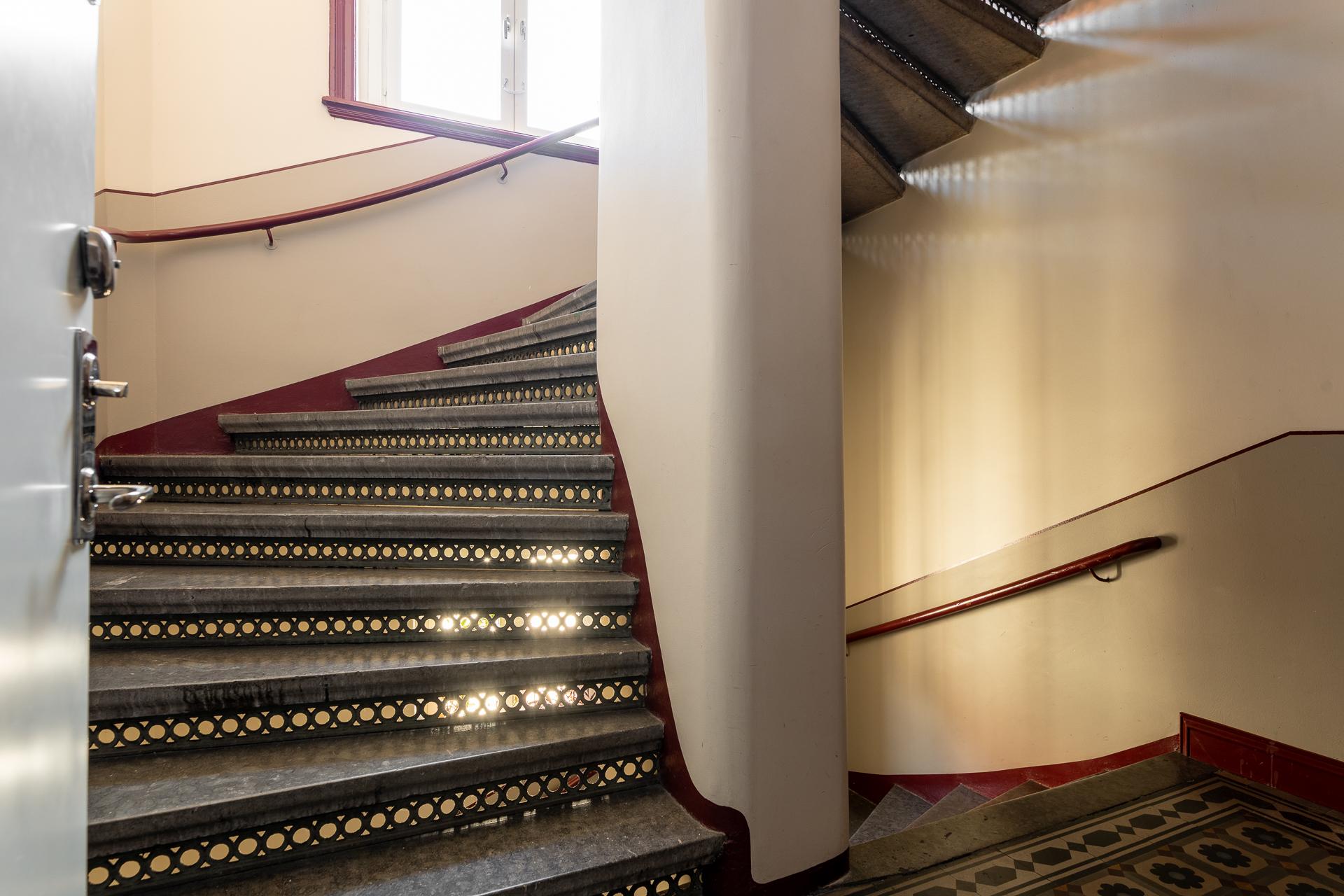 Till lägenheten medföljer två vindsförråd som är lättillgängliga bara en trappa upp från lägenheten. Hiss finns ej i huset.