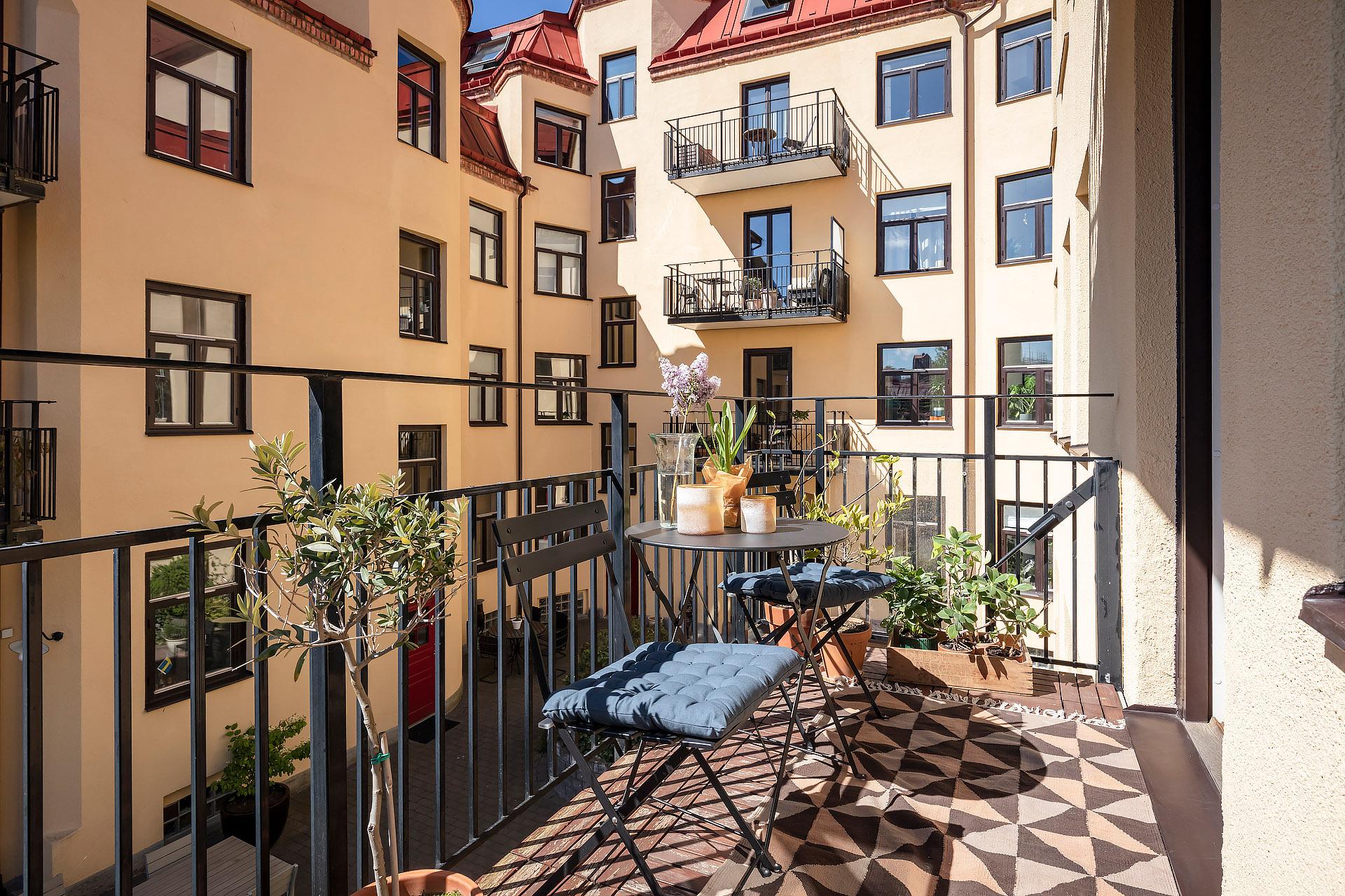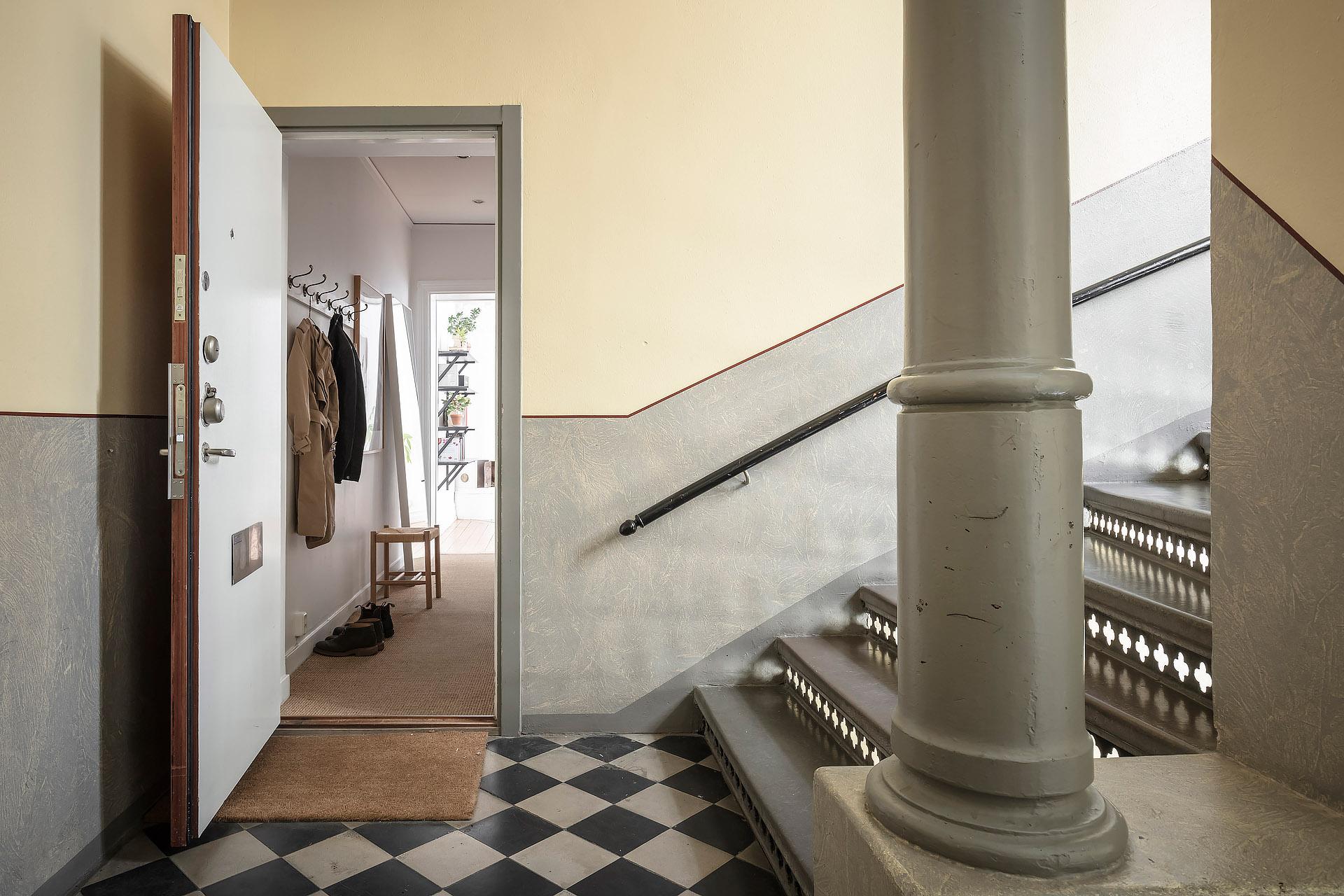 Mycket charmig och social sekelskiftestvåa med stor, solig smidesbalkong. Knäpptyst läge mot den öppna gården. Brädgolv, pardörrar, stuckatur, takrosetter och två kakelugnar (ej i bruk). Helkaklat badrum med tvättmaskin. Stabil förening med 3 hyresrätter, varav en ombildas och försäljs inom kort. Välskött fastighet från 1905 och förening med bra ekonomi.