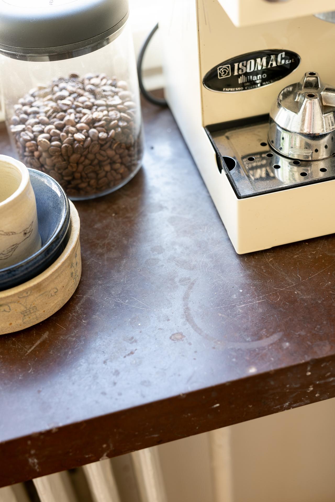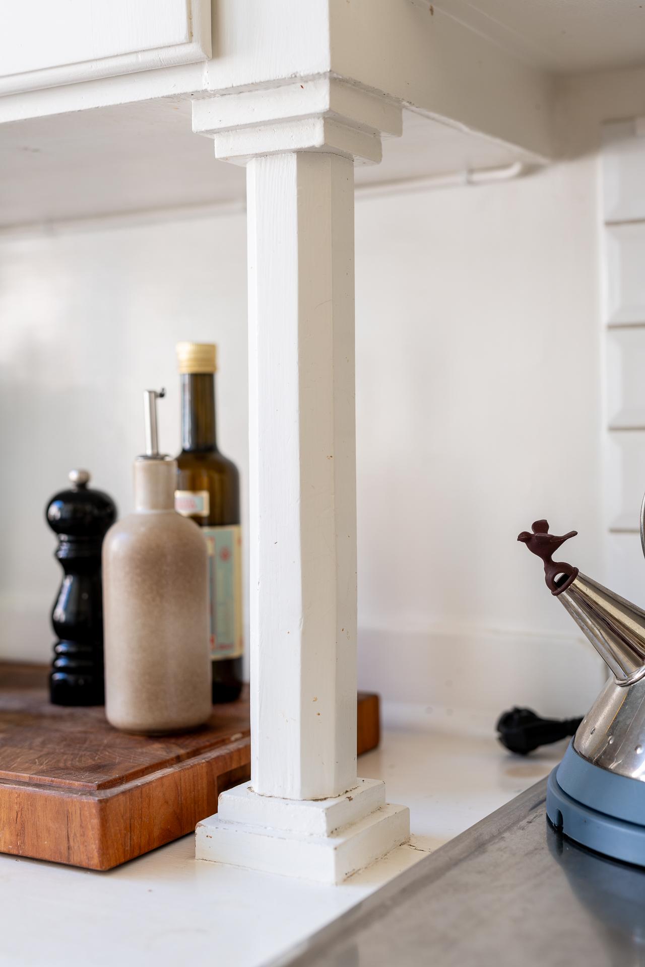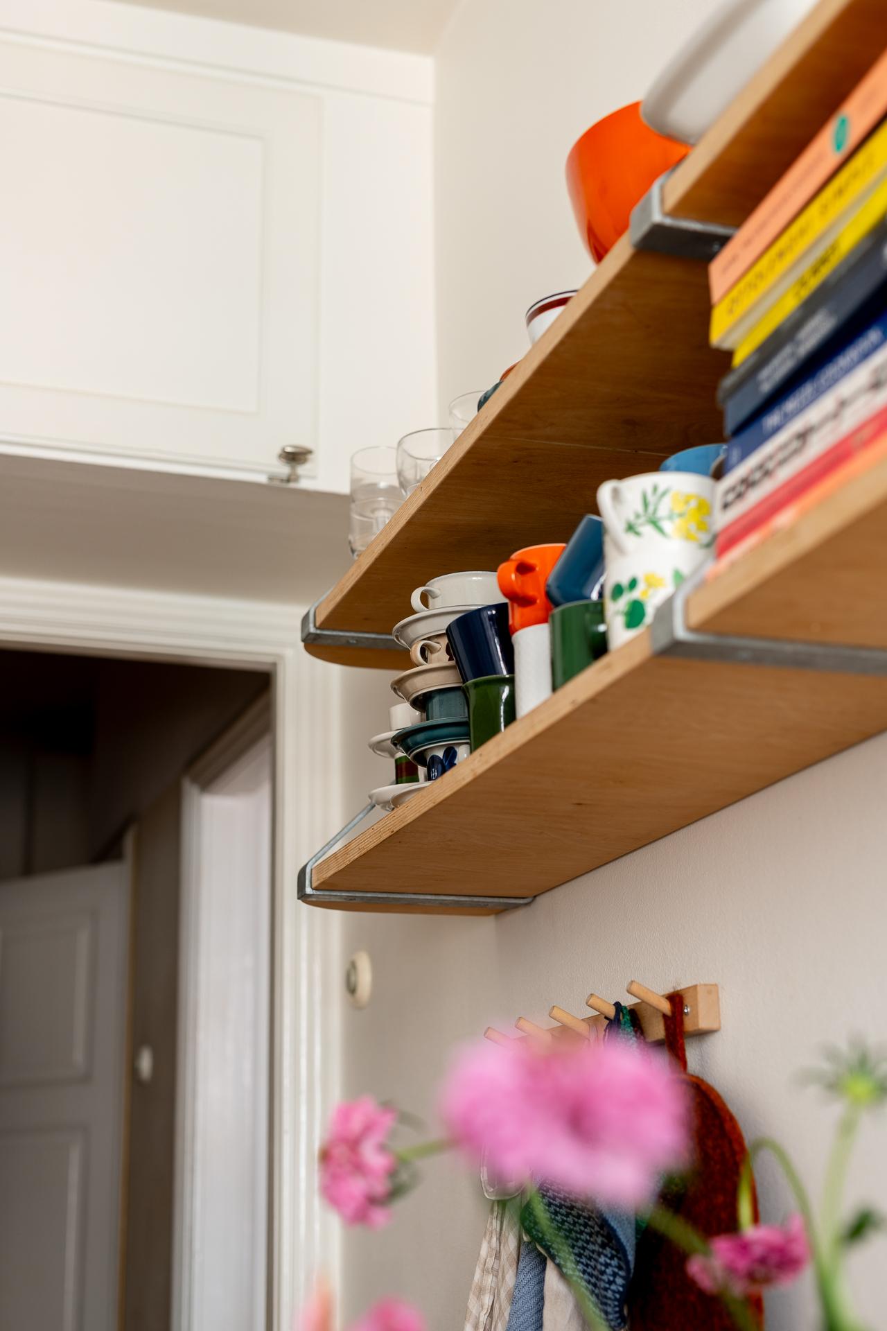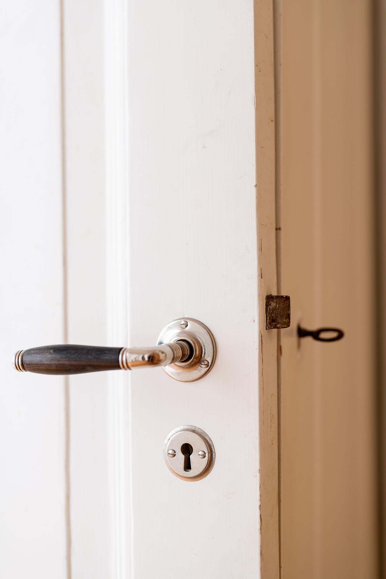 Rakt fram från hallen ligger köket – en plats där det tidstypiska möter moderna inslag på ett smakfullt sätt. Den ursprungliga köksinredningen med sina gedigna skåp och generösa förvaringsmöjligheter har bevarats och kompletterats med noggrant utvalda material. Här finns gasspis med ugn, kyl och frys, diskret integrerade i ett charmigt originalskafferi. Längst in i rummet släpper ett högt fönster in dagsljus och ger en fin kontakt med omgivningen.