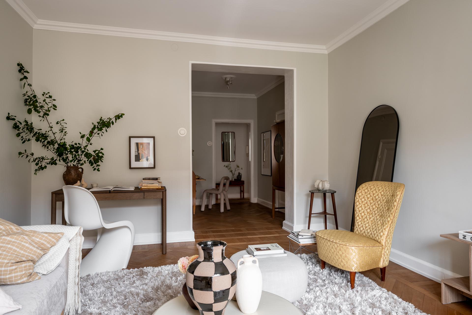 Underbar två och en halva med balkong i söderläge i ett vackert 1920-talshus. Högt upp i huset, på våning fyra. Perfekt och lugnt läge i Linné i kvarteret alldeles intill Slottsskogen. Bevarade originaldetaljer, såsom brädgolv, ekparketter, takrosetter och djupa fönsternischer. Renoverat badrum och ytskikt i perfekt finish. Grönskande innergård, fin välhållen fastighet och en mycket välskött bostadsrättsförening. Låg avgift, hiss, två förråd samt en övernattningslägenhet till föreningens medlemmars förfogande.