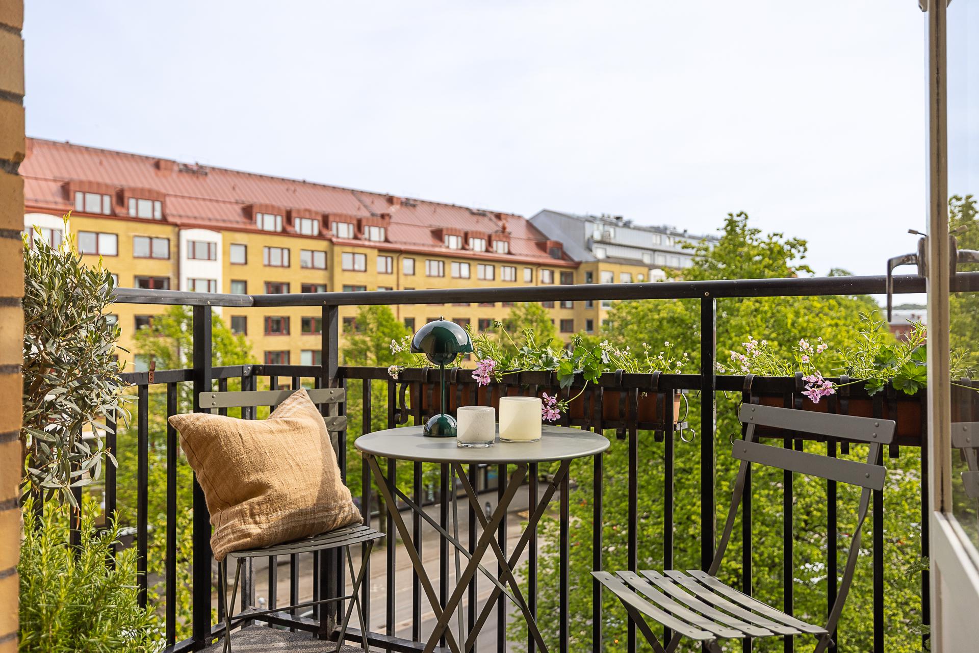 Underbar hörntvåa med högt och fritt läge på våning fyra med hiss. Solig smidesbalkong och en mängd sekelskiftesdetaljer bevarade. Rymligt socialt kök med plats för många middagsgäster och charmigt vardagsrum som utgör husets gavel. Nymålade ytskikt och nyslipad stavparkett i fiskbensläggning. Stuckaturer, takrosetter, pardörrar och listverk. Mycket stark förening från 1997 med endast 2 534 kr i månadsavgift, tre hyresrätter och stor andel lokalintäkter.