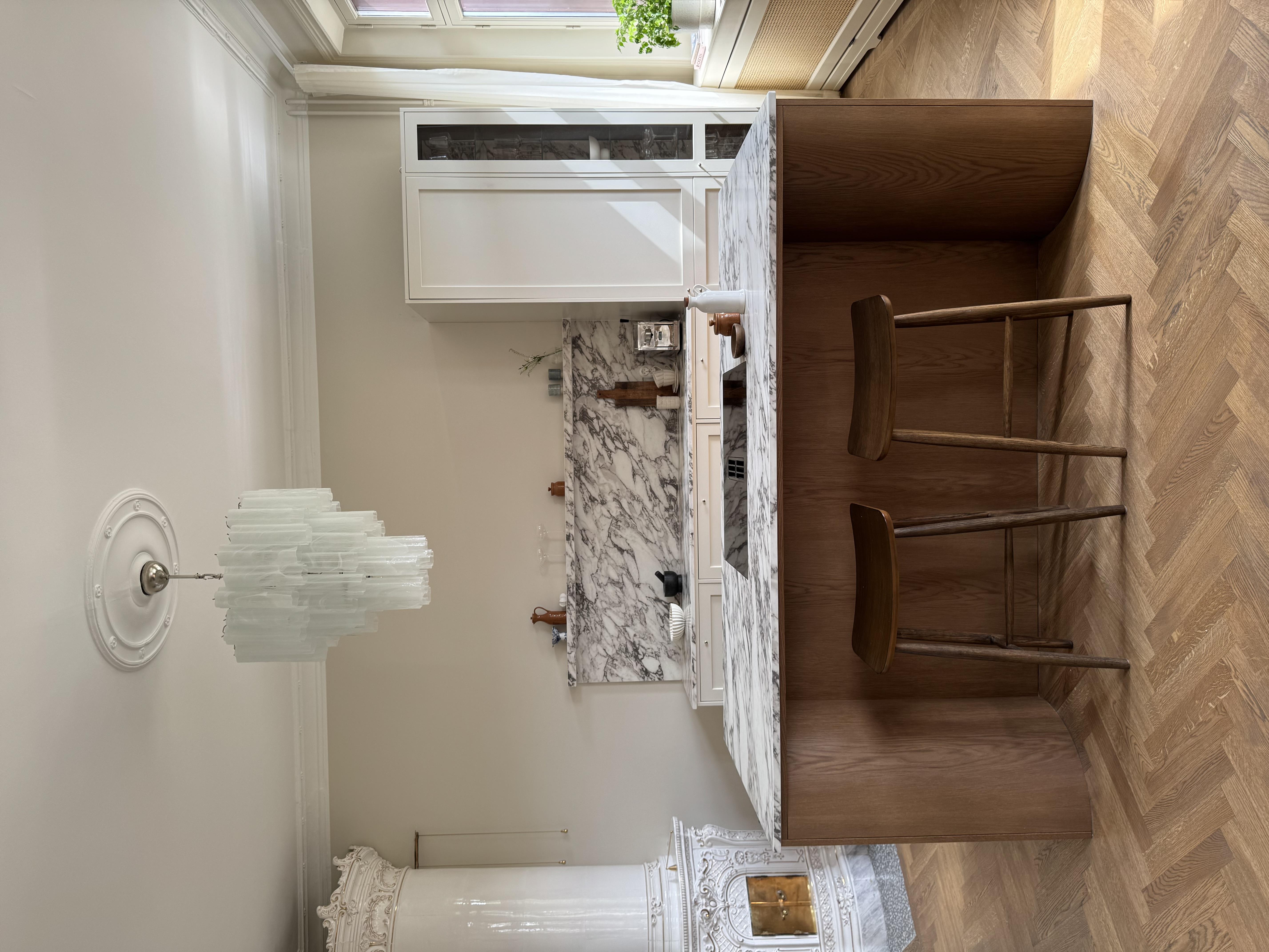 Stilfull sekelskiftestrea om 100 kvm fritt belägen mot grönskan på våning 4 av 6 med hiss (stannar på halvplan)Två fantastiska balkonger - en i öst och eni väst med sol från morgon till sen kväll. Många höga fönster gör detta hem oerhört ljust. Vacker kakelugn, stuckaturer, pardörrar och takrosetter. Möjlighet att flytta kök och skapa ditt egna drömboende!