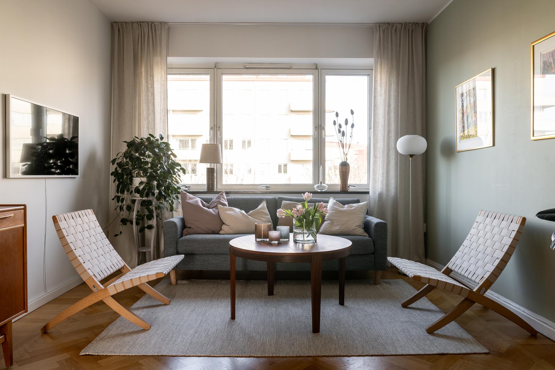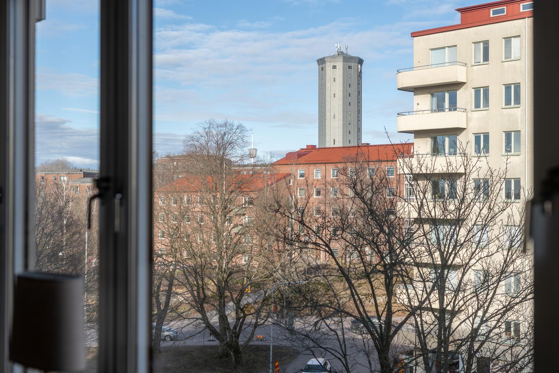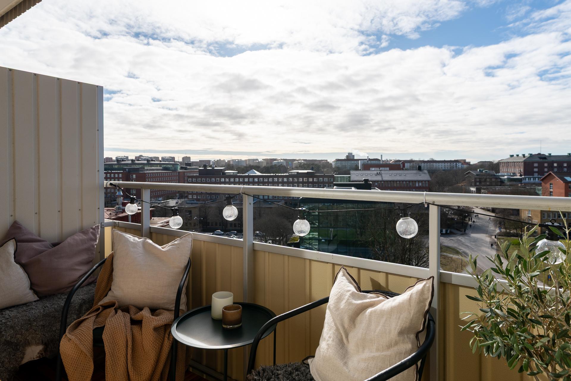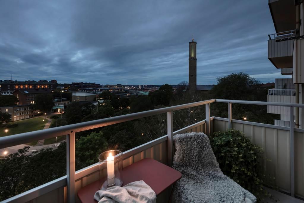 På Palmstedtsgatan 3, i ett oslagbart centralt men ändå rofyllt och grönt läge, finner vi denna charmiga och karaktärsfulla tvåa. Ett varmt och välkomnande hem med genuin själ där trivseln sitter i väggarna. Här samsas vackra originaldetaljer som fiskbensparkett, fungerande öppen spis och gjutjärnselement med generös takhöjd, stora fönster i motsatta väderstreck och genomtänkta ytor. Sovrum, kök och vardagsrum ligger högt, ljust och ogenerat. Balkongen vetter mot väster och bjuder på en magnifik utsikt över både stad och grönska – med frihetskänsla, eftermiddagssol och fantastiska solnedgångar som bonus.