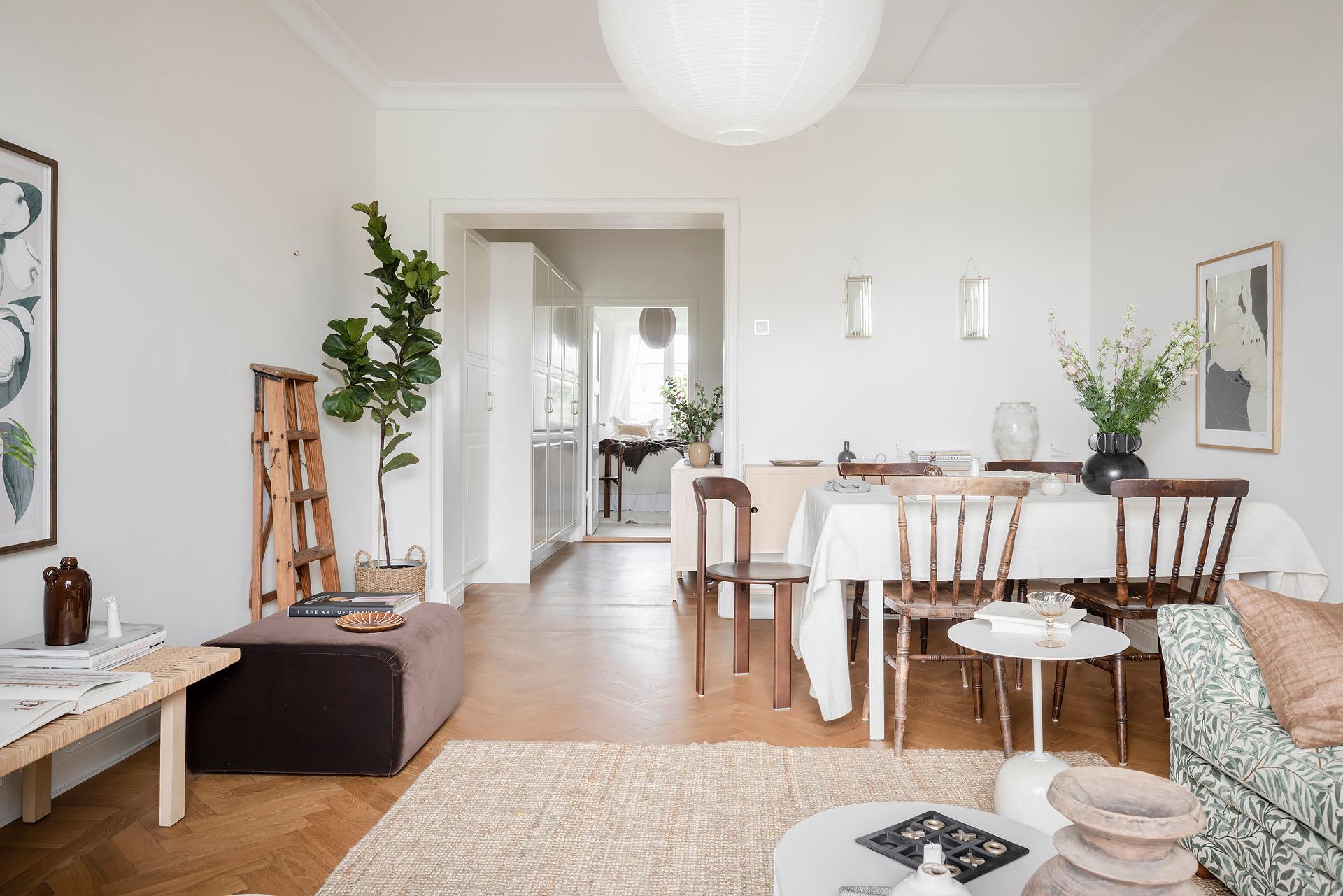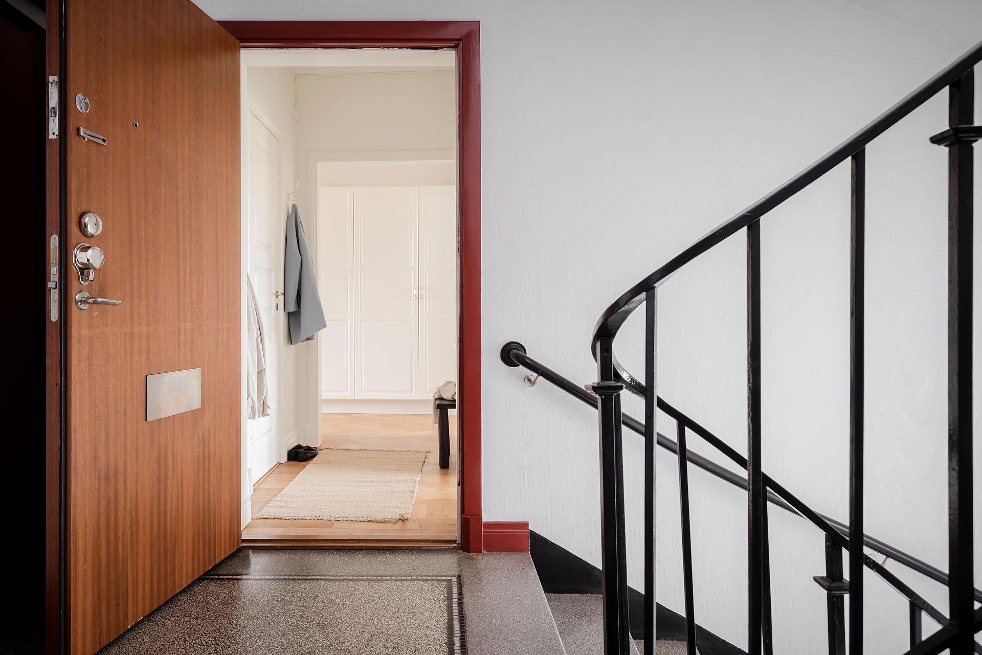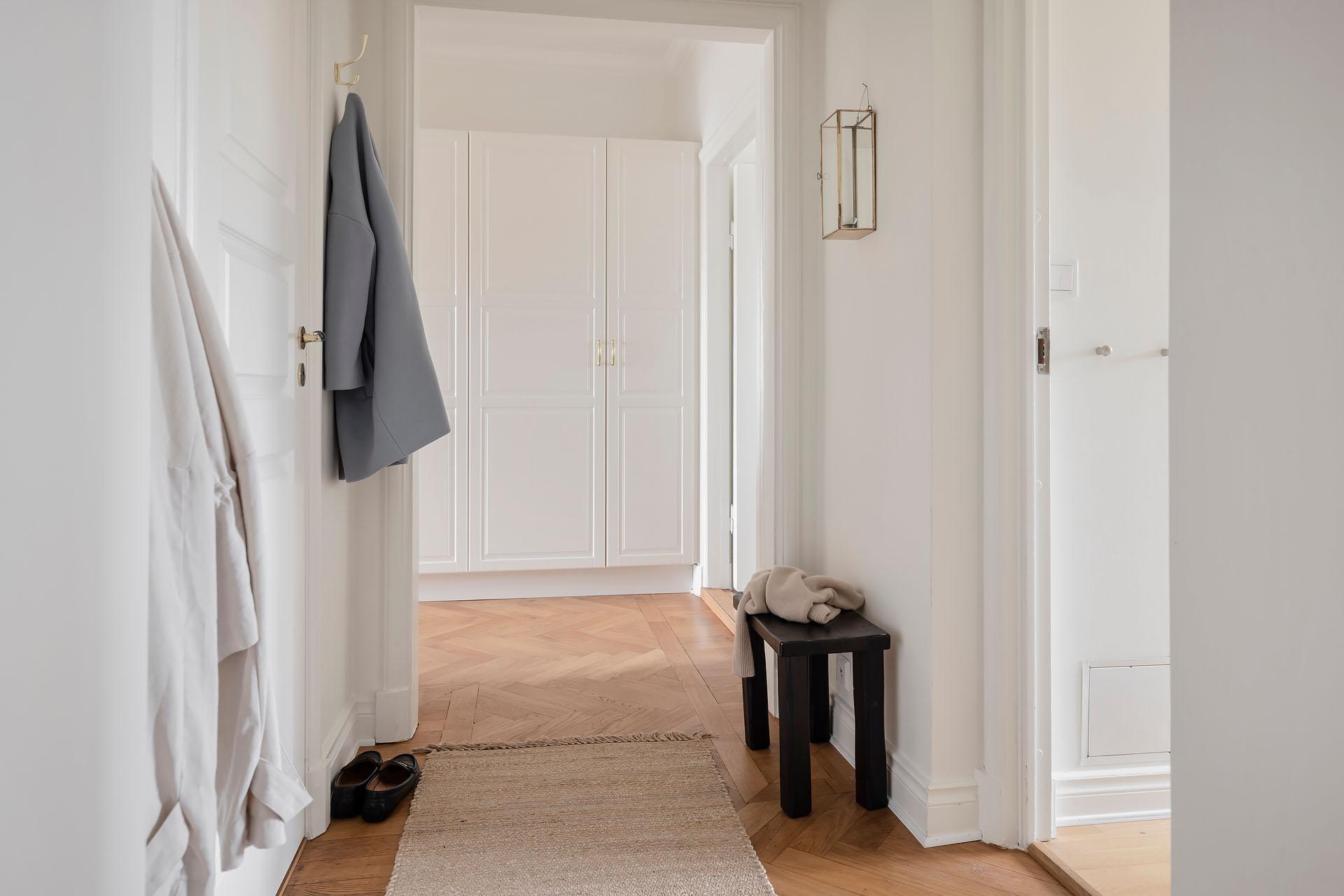 Med högt läge på våning 5 väntar en ljus och välplanerad tvåa med dubbla balkonger och en utsikt som tar andan ur en. Här möts tidstypiska originaldetaljer som fiskbensparkett, spegeldörrar och takrosett av smakfulla renoveringar i hög standard. Det generösa vardagsrummet vetter västerut mot stadens takåsar, medan köket bjuder på utgång till en rymlig balkong i soligt gårdsläge. Läget i Jakobsdal är svårslaget – lugnt och grönt men bara en kort promenad från Korsvägen. Ett hem att förälska sig i, där både interiör och exteriör håller högsta klass.