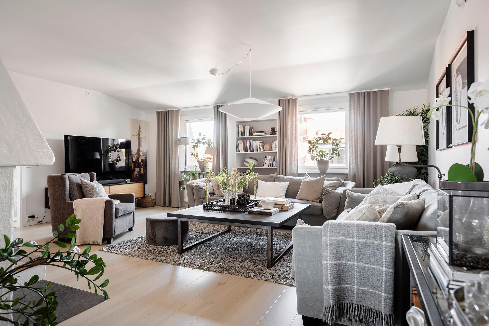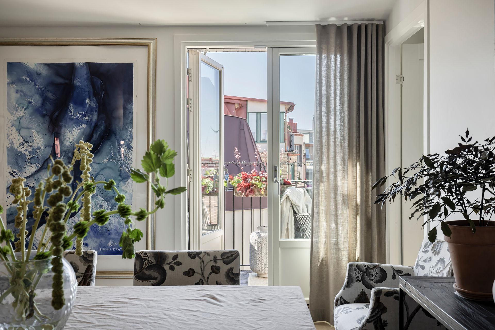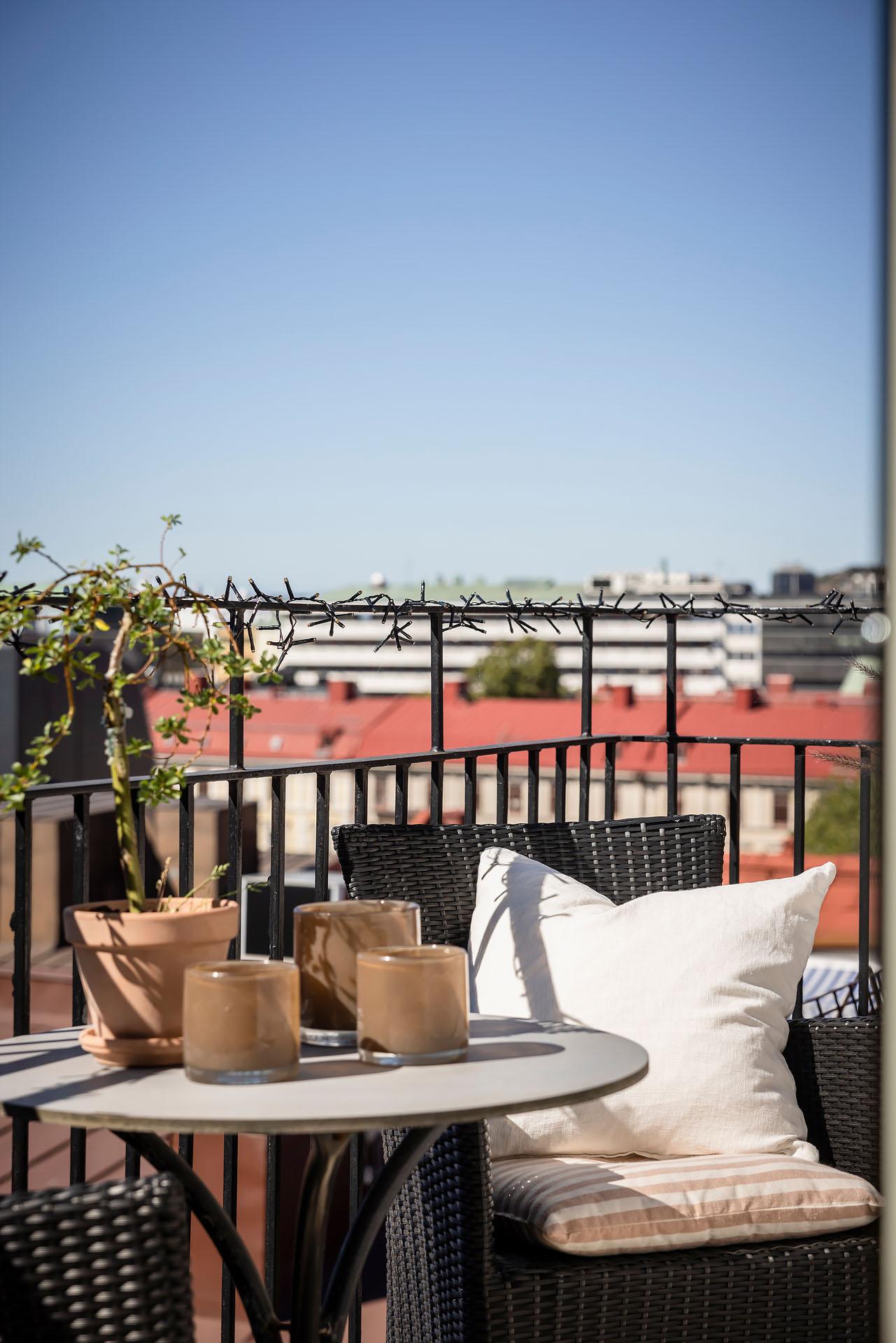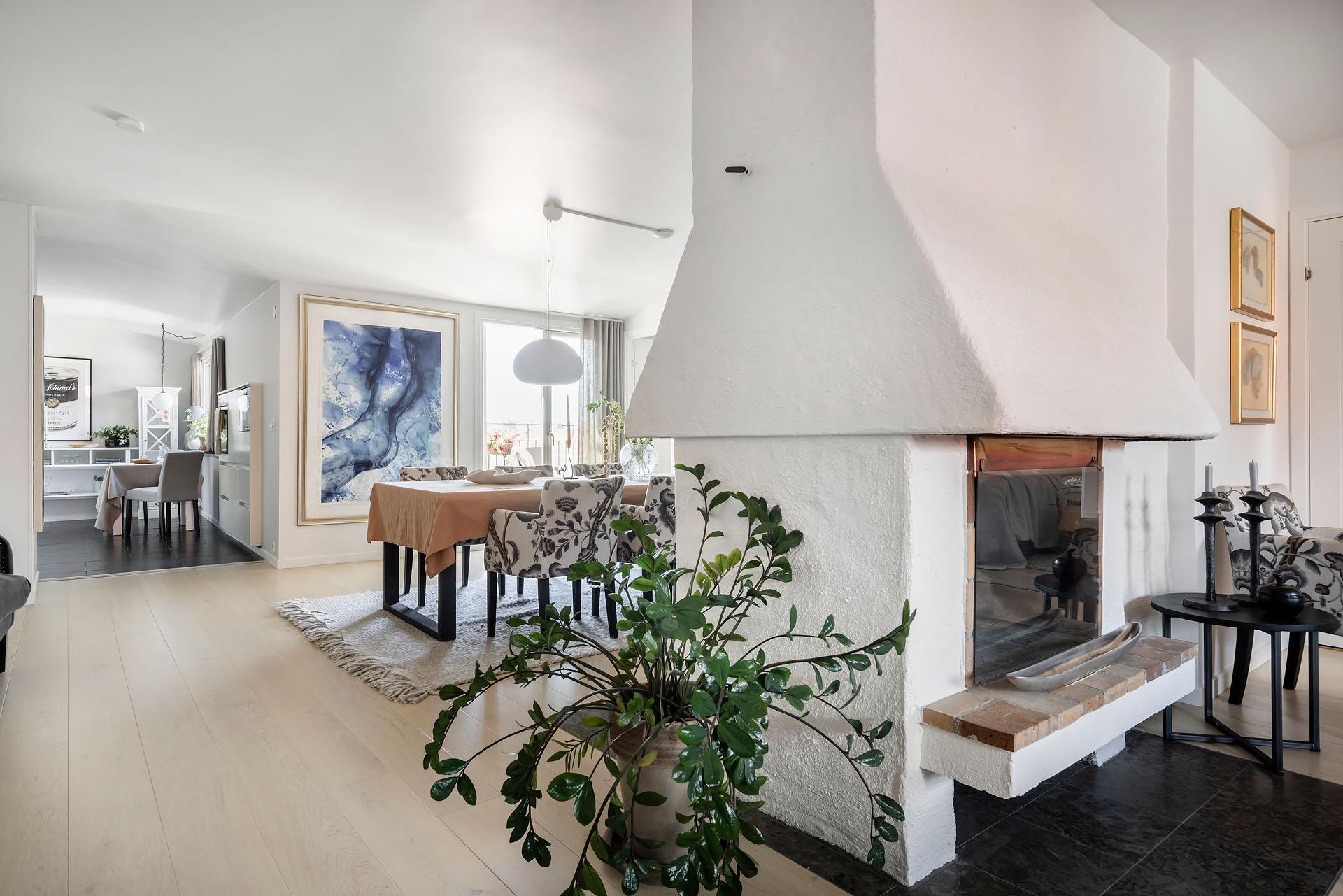 Högst upp bland takåsar och himmel väntar en privat vindsvåning som slår det mesta. Här möts slående utsikt, öppen spis, generösa sällskapsytor och en stor balkong med kvällssol – ert extra rum under sommarhalvåret. Lägg därtill två sovrum, gäst-wc och ett ljusflöde från tre väderstreck, så har du ett hem i särklass. Hiss finns, går från halvplan och till våning 4.