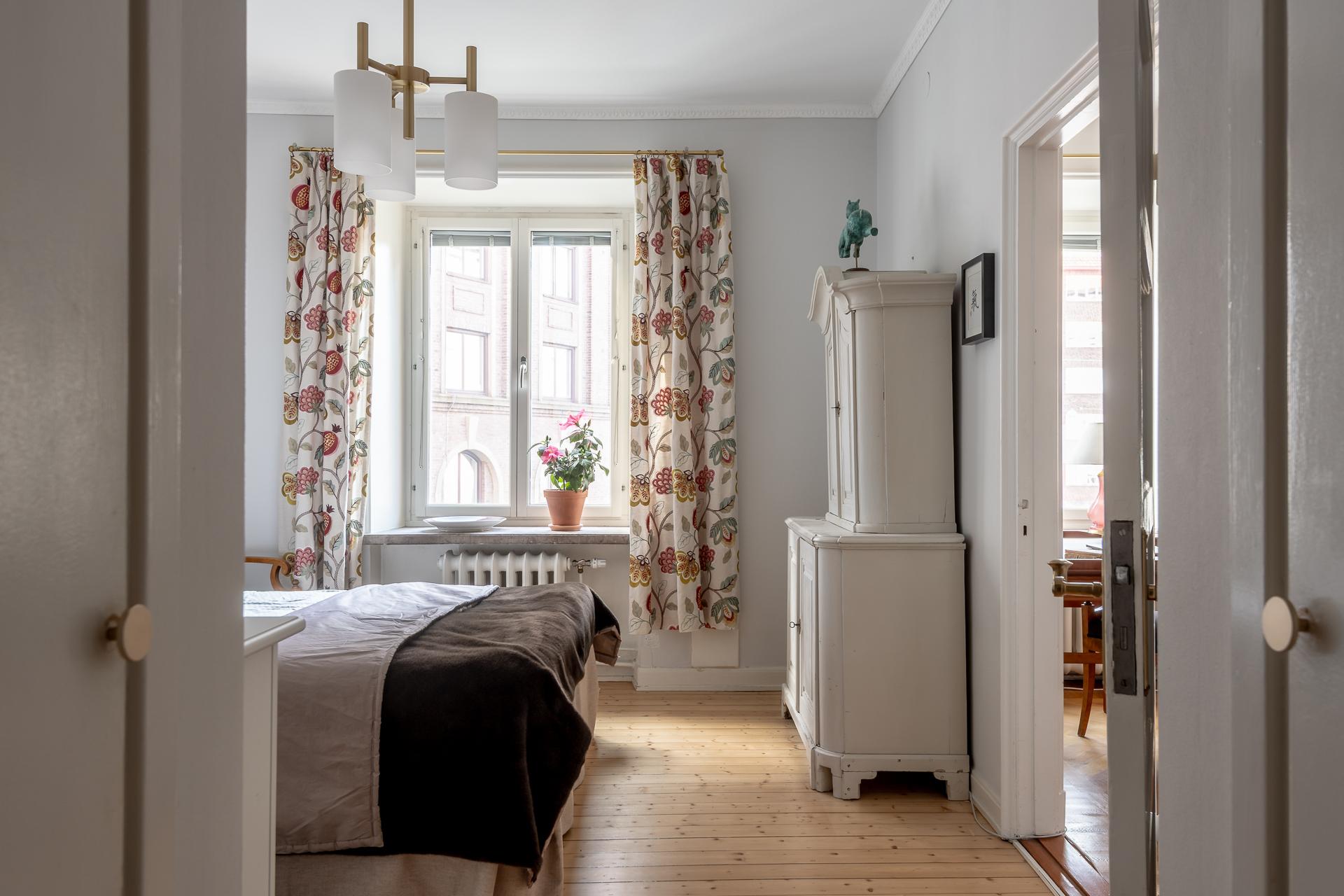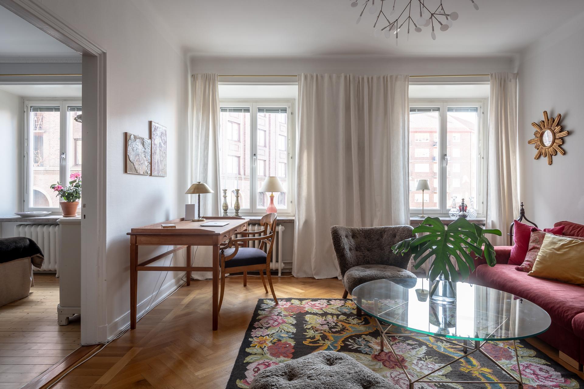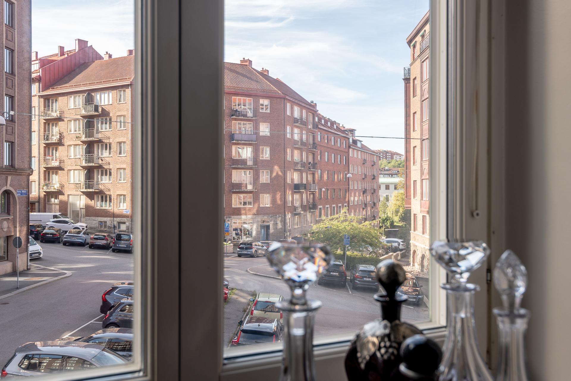 Spegeldörrar, serveringsskåp, högt i tak och djupa fönsternischer – ja denna ljusa och luftiga tvåa i mysiga Nedre Johanneberg andas verkligen 1920-tal. Vardagsrummet och det voluminösa sovrummet ligger i fil mot den lugna gatan, och härifrån har man långsträckt utsikt över det vackra kvarteret ända bort mot Norra Guldhedens höjder. Det rymliga köket och den tegelinramade balkongen, som delas med grannen, vetter mot rofylld innergård. Lägenheten ligger en trappa upp, och det är ingen direkt insyn från förbipasserande. Utanför husets port finns en lummig och insynsskyddad förträdgård med gemensam uteplats. Det är en trevlig bostadsrättsförening med välskött fastighet och den välmående ekonomin, med exceptionellt låg belåningsgrad, återspeglas inte minst i den låga avgiften. Varmt välkomna på visning!