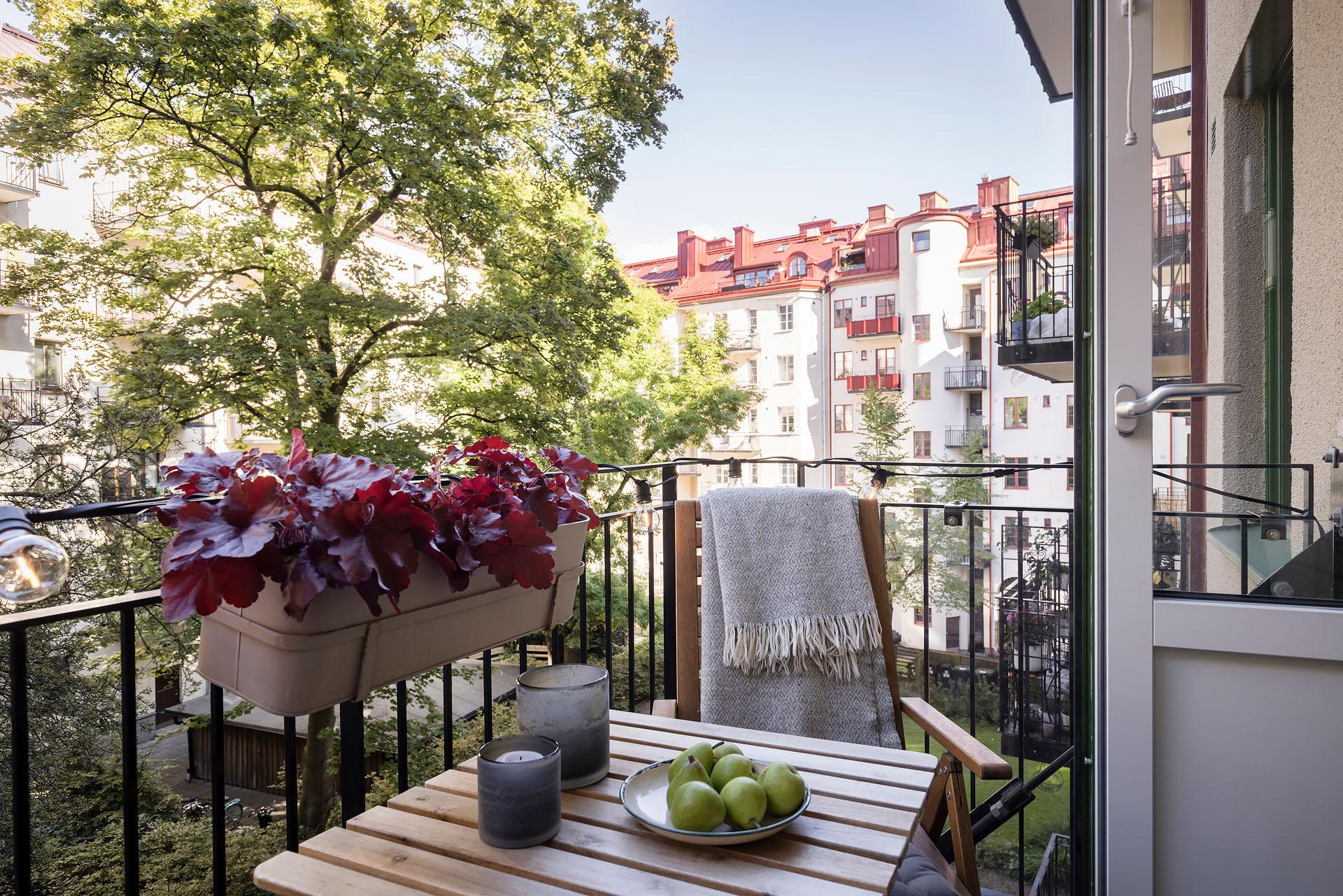 - Balkong/Uteplats: Ja. Härlig balkong mot den grönskande innergården.