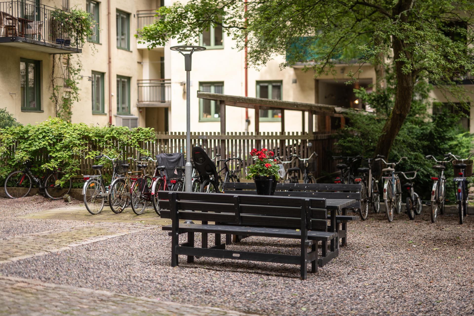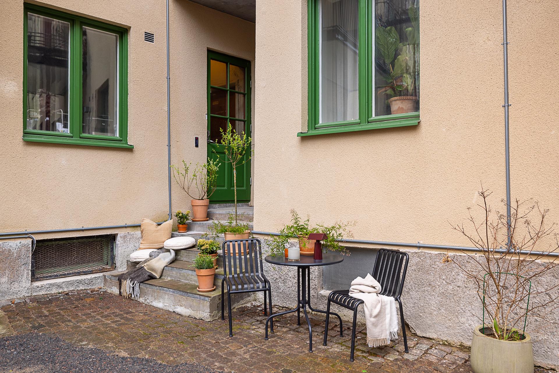 Välkommen till ett hem som verkligen har allt. En totalrenoverad (2019) och genomtänkt 2,5:a där varje kvadratmeter bjuder på både funktion och känsla. Här bor du i ett sällsynt lugn, inbäddad mot en grönskande gård där tystnaden är påtaglig, samtidigt som stadens puls finns precis runt hörnet. De stora fönstren i söder släpper in ett generöst ljusflöde som ger bostaden en varm och inbjudande atmosfär, och från vardagsrummet kliver du rakt ut till en liten uteplats – en självklar plats för morgonkaffet eller ljumma sommarkvällar.