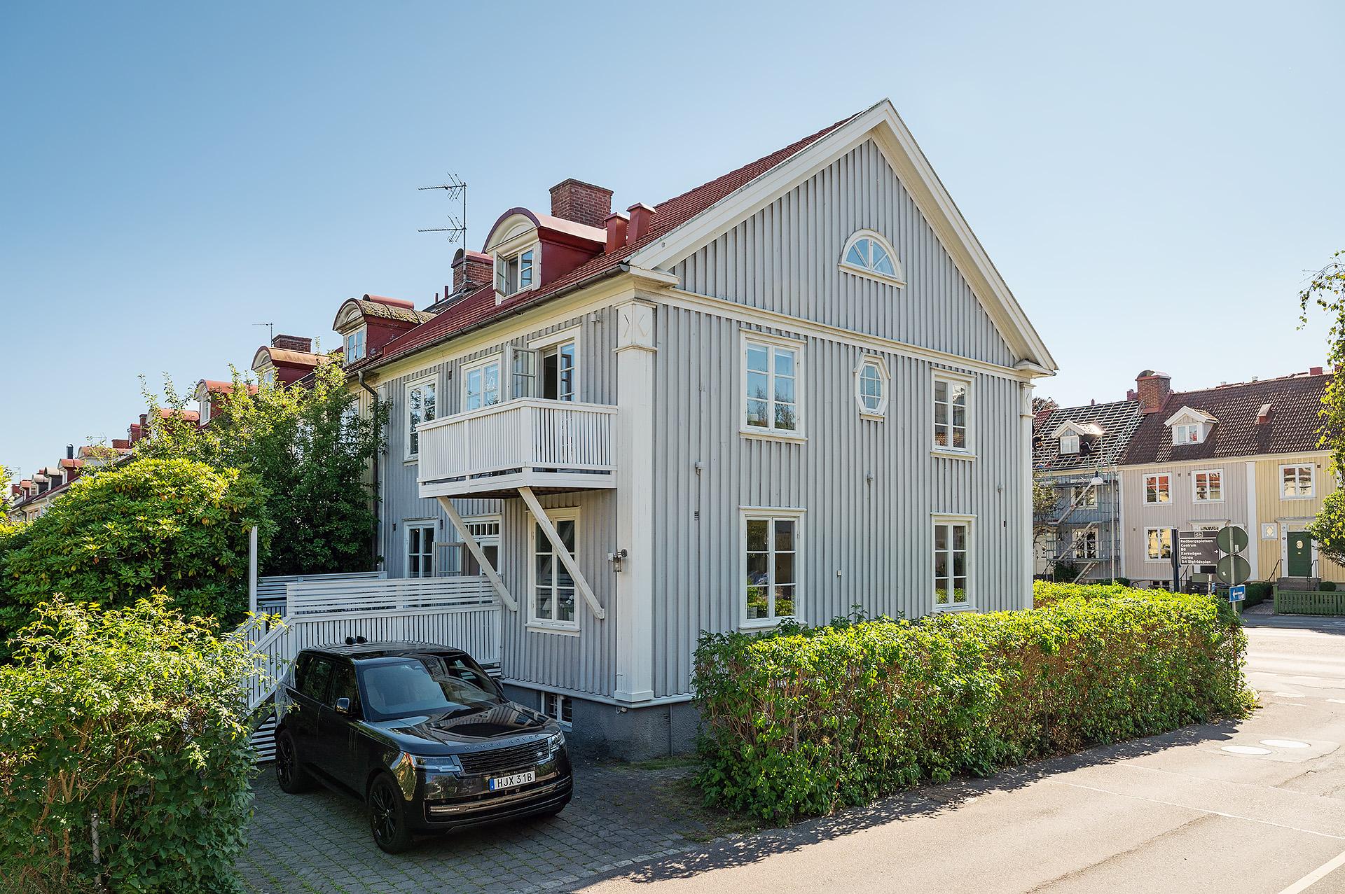 Totalrenoverat gavelradhus i mycket fint skick om 7 rum och kök, två badrum och inredd vind. Totalrenoverat i tidlösa material och i harmoni med 20-talets elegans. Brädgolv, stavparkett, spröjsade fönster och vackra listverk. Källare med tvättstuga och välskött mysig trädgård med altan. Egen parkering med plats för två bilar. Mycket centralt läge nära puls och grönska.