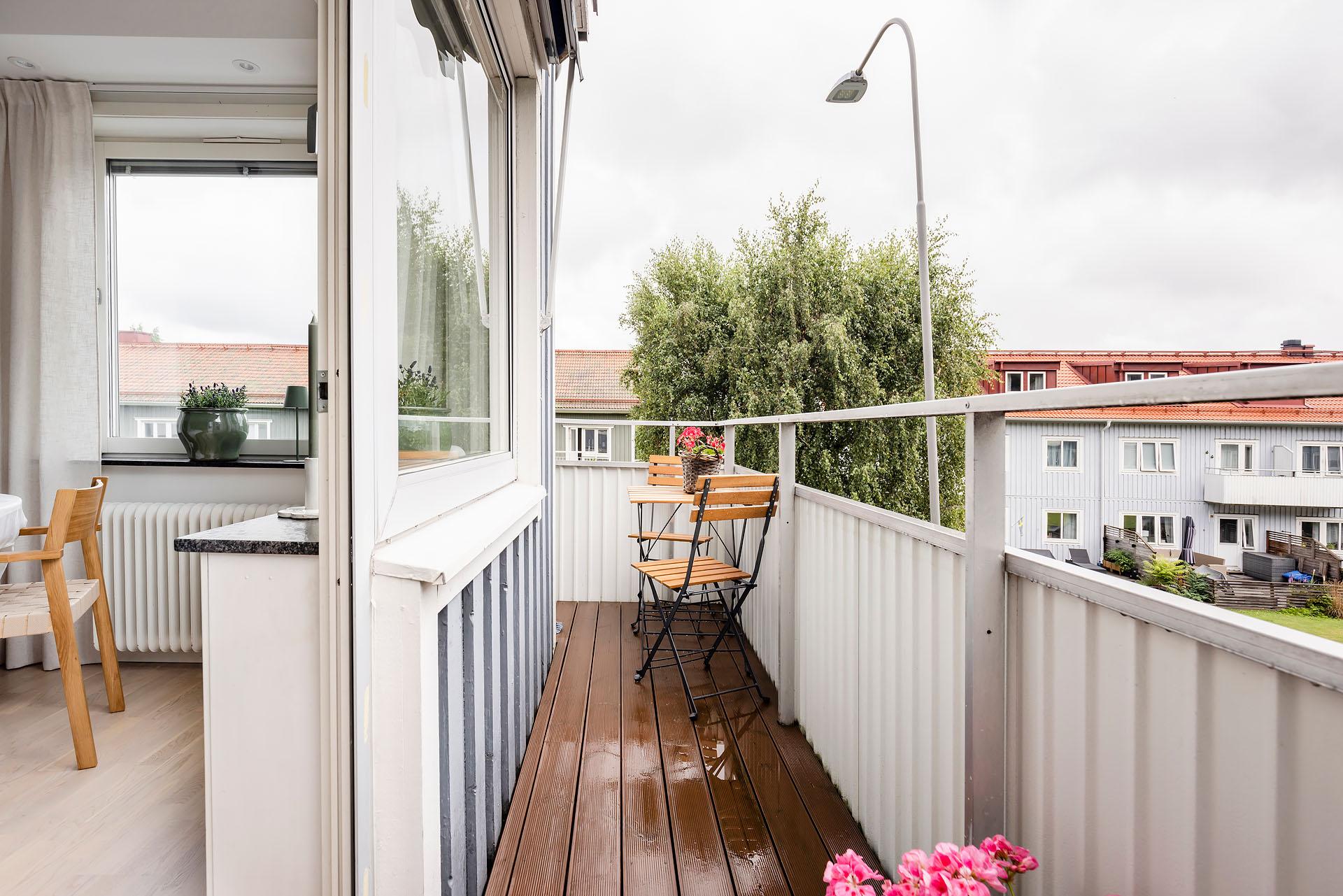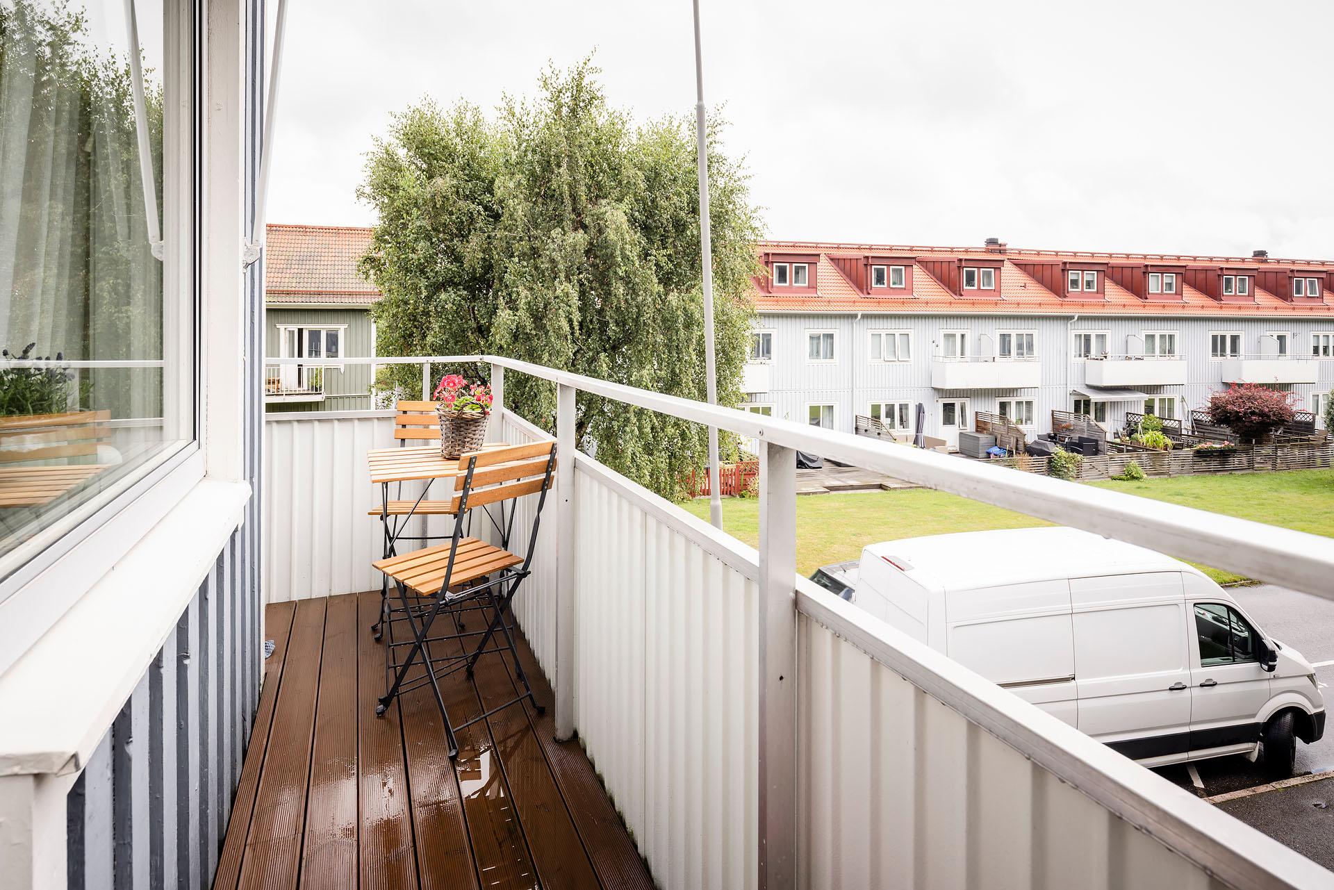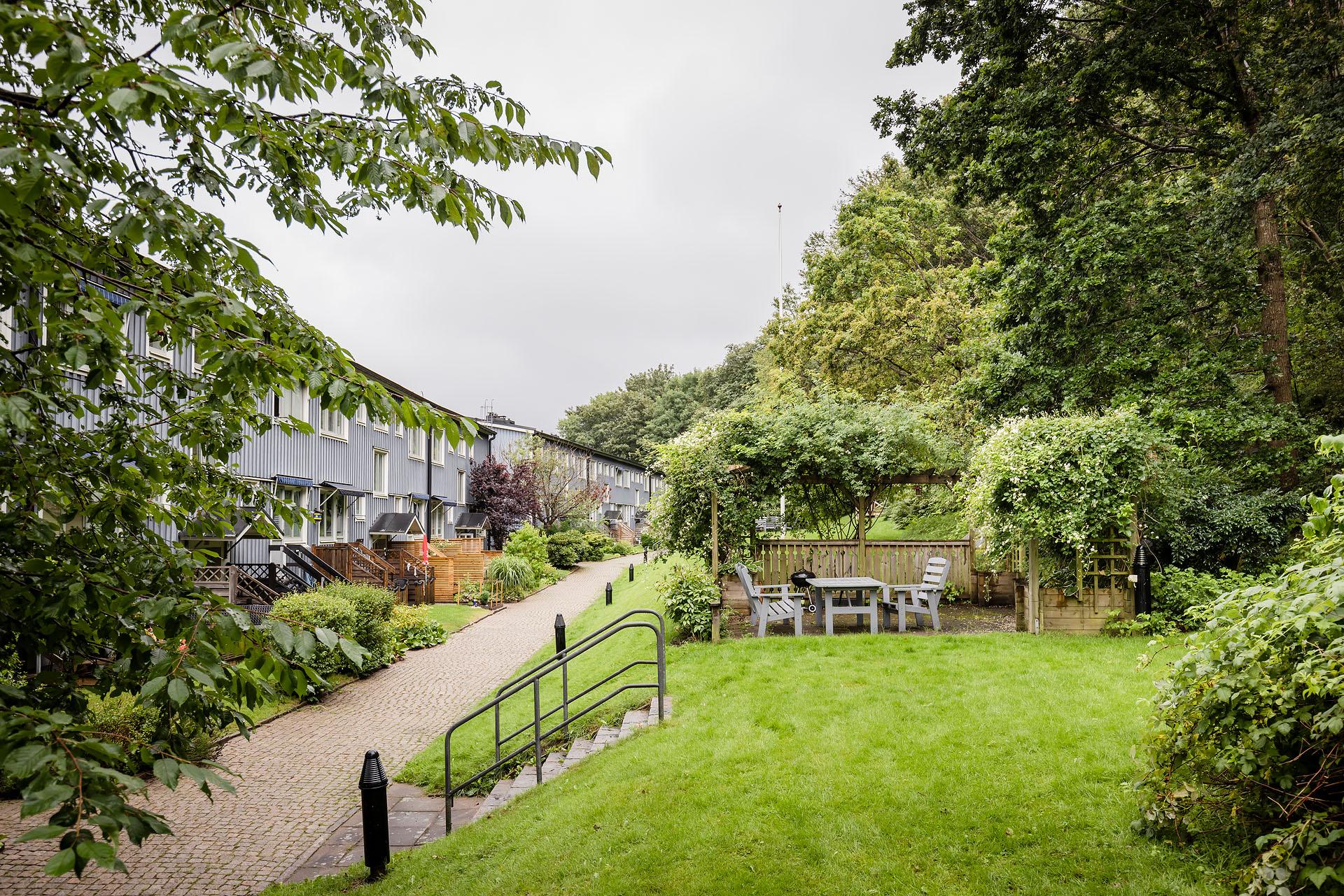 - Balkong/Uteplats: Ja. Föreningen har fem gemensamma uteplatser med utemöbler i trädgården.