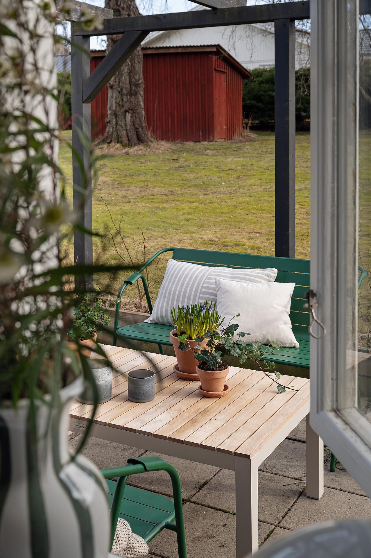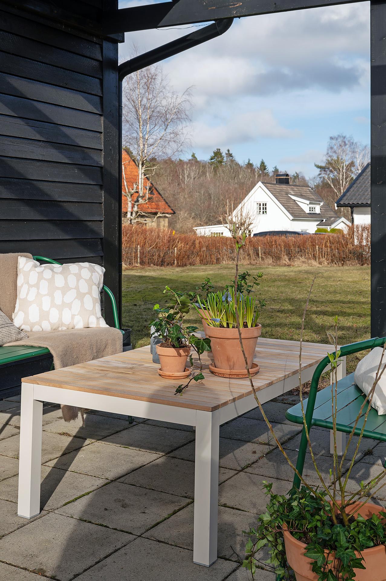 Såväl huset som trädgården är lättskött, och bergvärmen som distribueras genom vattenburen golvvärme är både behaglig och kostnadseffektiv. Det genomgående betonggolvet kontrasterar de vitmålade plankväggarna och de trärena bjälkarna. Planlösningen låter livet ta plats både till vardags och till fest, och rummen är lika lättmöblerade som trivsamma. På fastigheten finns även ett fristående garage med vidbyggt förråd och en gammal, rödmålad och mycket charmig trädgårdsbod.