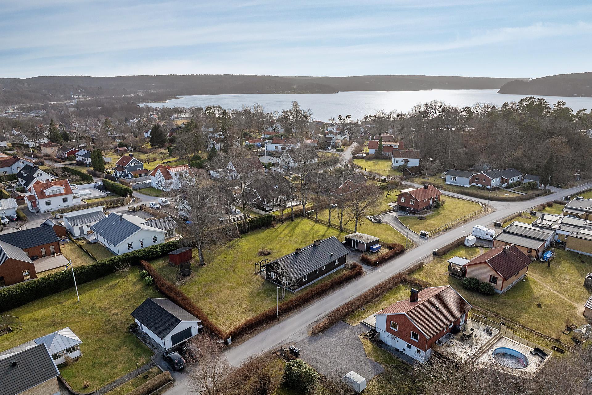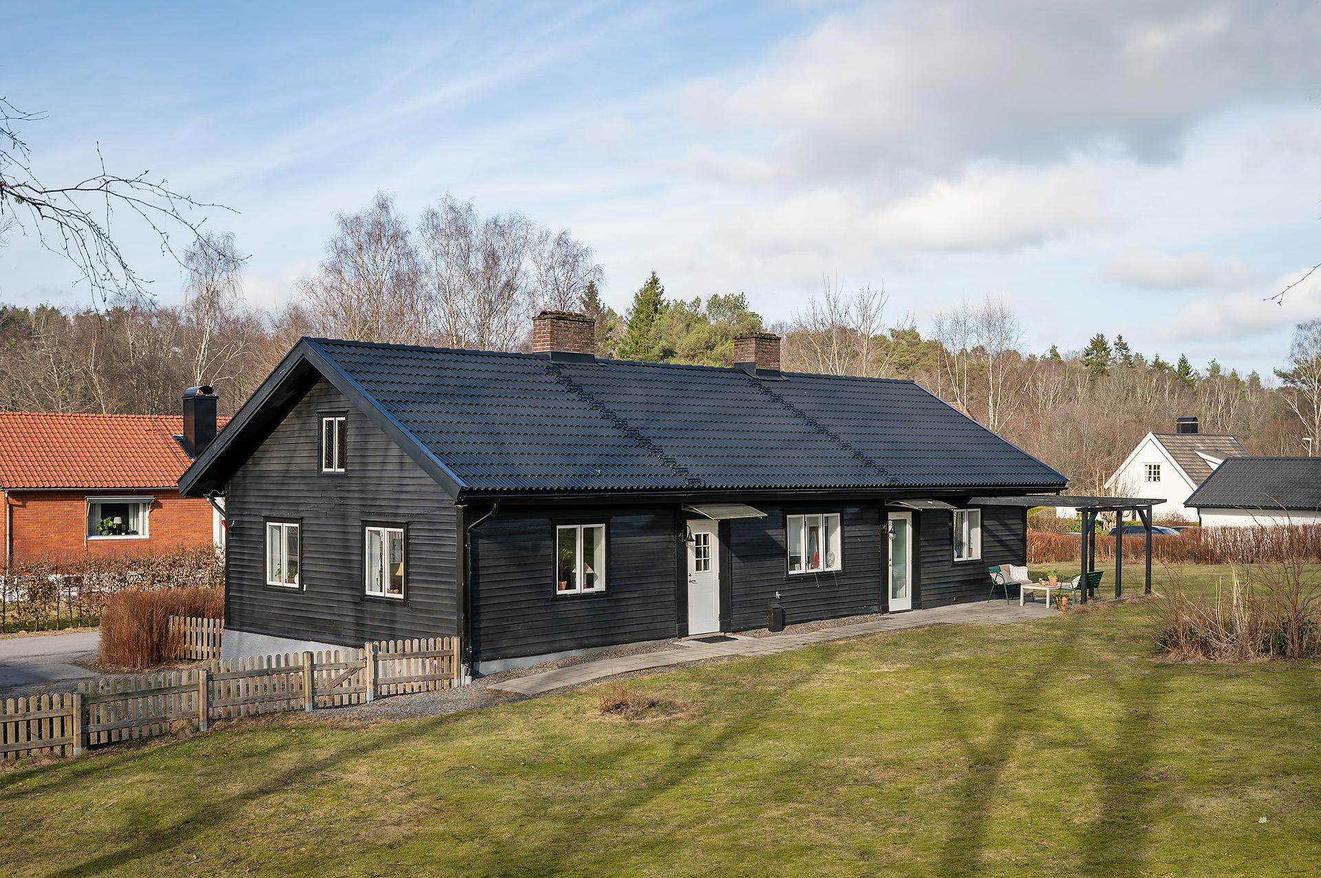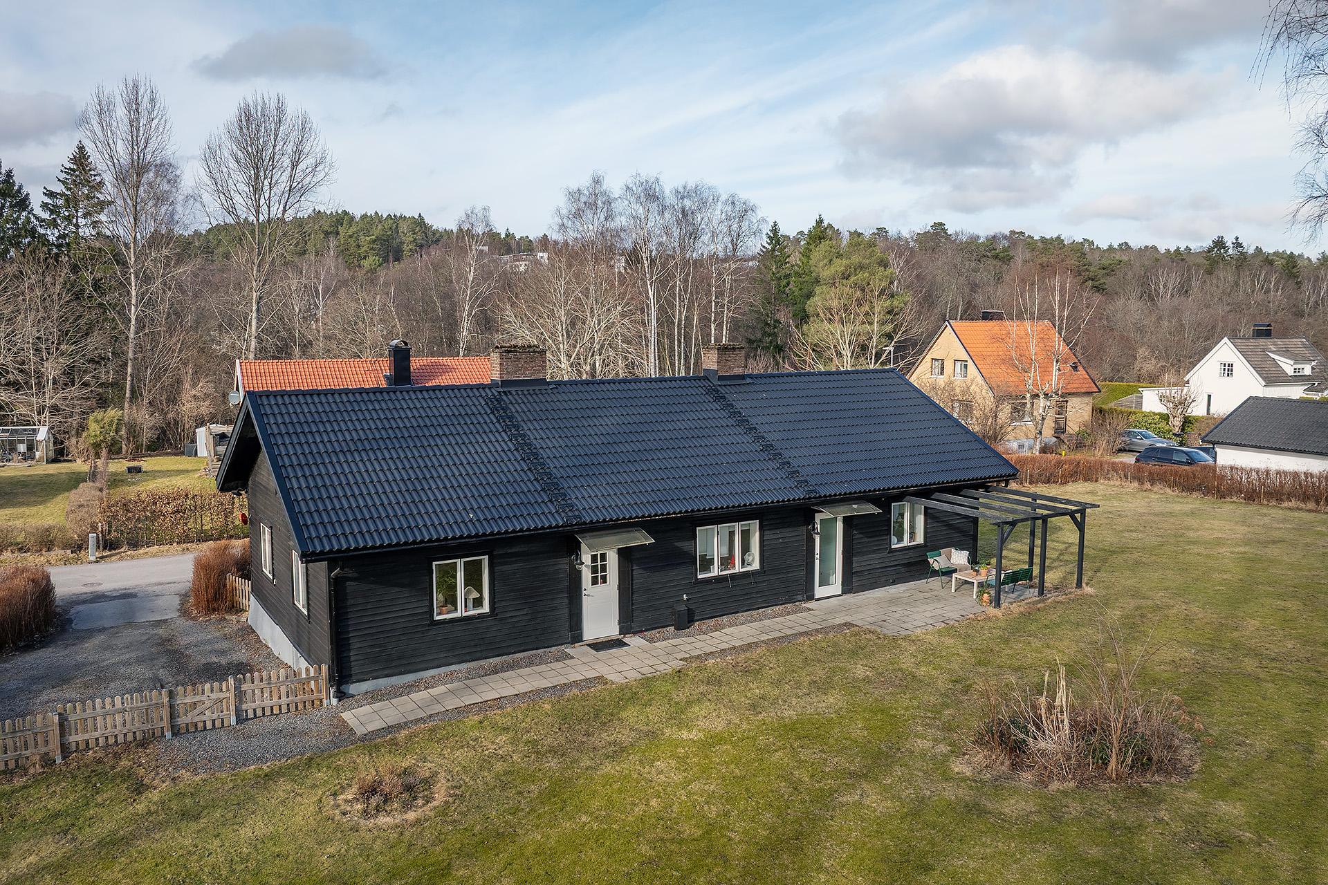 Denna unika villa uppfördes ursprungligen som torp under gården Skafsås, och invändigt finns många fina detaljer som berättar dess historia. Här bodde torpare som utförde dagsverk åt gårdens ägare – grosshandlare Arthur Seaton. Det berättas att Arthur, vars fader Georg hade lämnat England för att slå sig ner i Göteborg, var en snäll karl som lät sina arbetare sova en timme längre på morgnarna än brukligt. På den årliga skördefesten brukade han bjuda dem på grogg. Huset är renoverat från topp till tå, och den äldre charmen i form av vedugn, synliga bjälkar med mera samsas med en modern stilkänsla på ett osedvanligt lyckat sätt. Det är ett lika praktiskt som mysigt hem med en överraskande rymlig känsla – inte minst tack vare den öppna planlösningen mellan vardagsrummet och köket. Vardagsrummet kompletteras av ett allrum, och intill ett av de tre sovrummen finns en rymlig alkov som passar perfekt som hemmakontor. Dubbla badrum, varav det ena med tvättmaskin, underlättar vardagslivet. Ljuset strömmar in genom de vackra fönstren, och från vår till höst njuter man av solen på den längsgående uteplatsen i söder. Eller ute i den stora rofyllda trädgården som ramas in av lummiga häckar och björkar. En underbar plats för lek, odling, fika eller bara en stunds avkoppling i det gröna. Läget är svårslaget, och här njuter man av tystnaden i idylliska villakvarter med närhet till både naturen, sjön Aspen och Lerums centrum med ett trevligt utbud av kaféer, restauranger och butiker. Med pendeltåget tar man sig in till centrala Göteborg på mindre än tjugo minuter. Närmaste förskola ligger bara ett stenkast bort, och det är även nära till Lerums skolor.