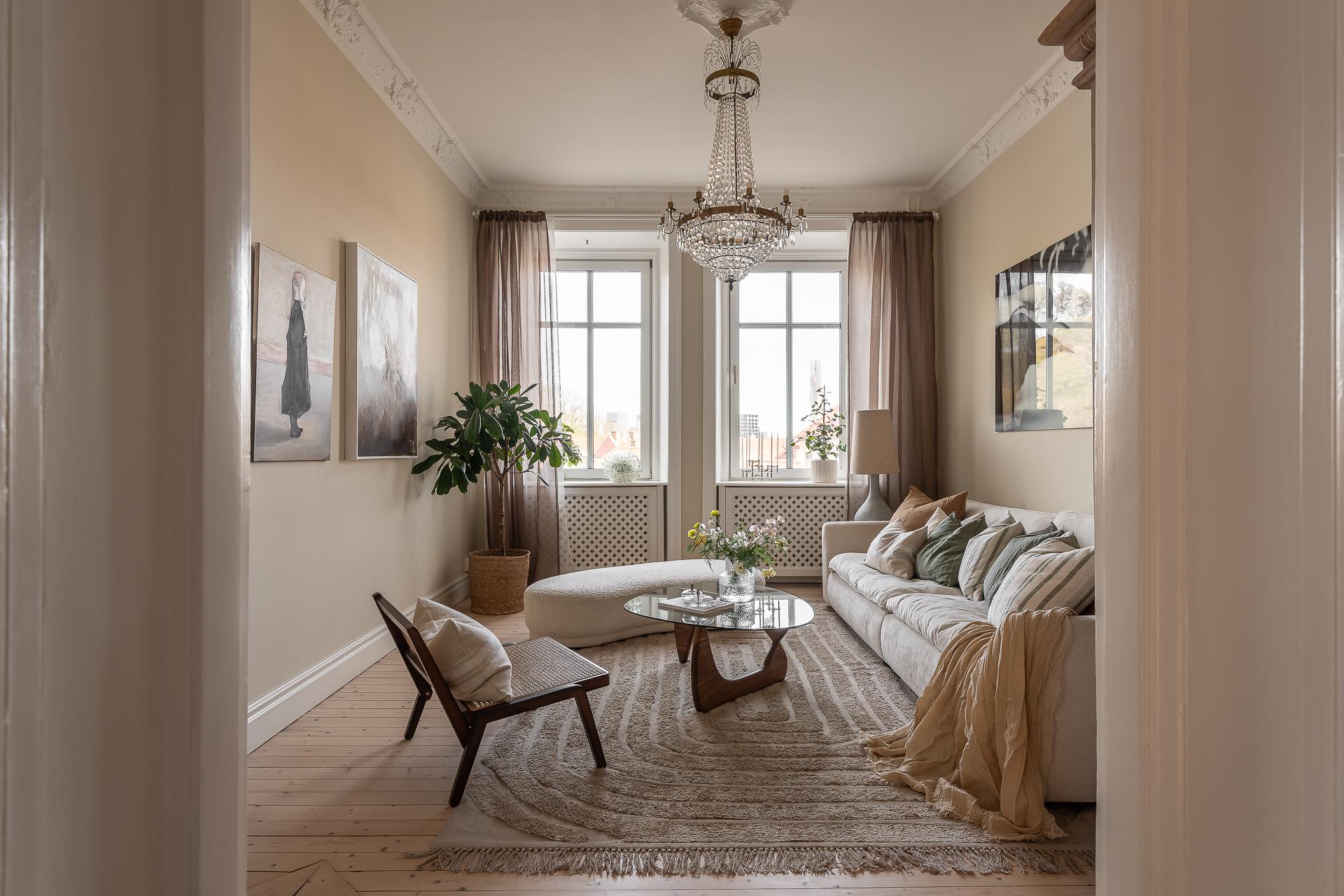 Sekelskiftestvåa om 51 ytterst väldisponerade kvadrat, fritt belägen på våning 3 med utsikt mot Skansen kronan i väster och sovrum med utgång till österbalkongen i knäpptyst gårdsläge. Nytt kök från 2022 med plats för ett rejält matbord och fräscht badrum som delvis renoverats 2022 - här är det bara att flytta in. Stora ljusa rum & charmiga sekelskiftesdetaljer bevarade i form av generös takhöjd om ca 3,10 meter, stuckatur, originalbrädgolv och kakelugn. Allt detta i en välskött förening med stora hyresintäkter, råvind och 2 hyresrätter kvar. Hiss finns.