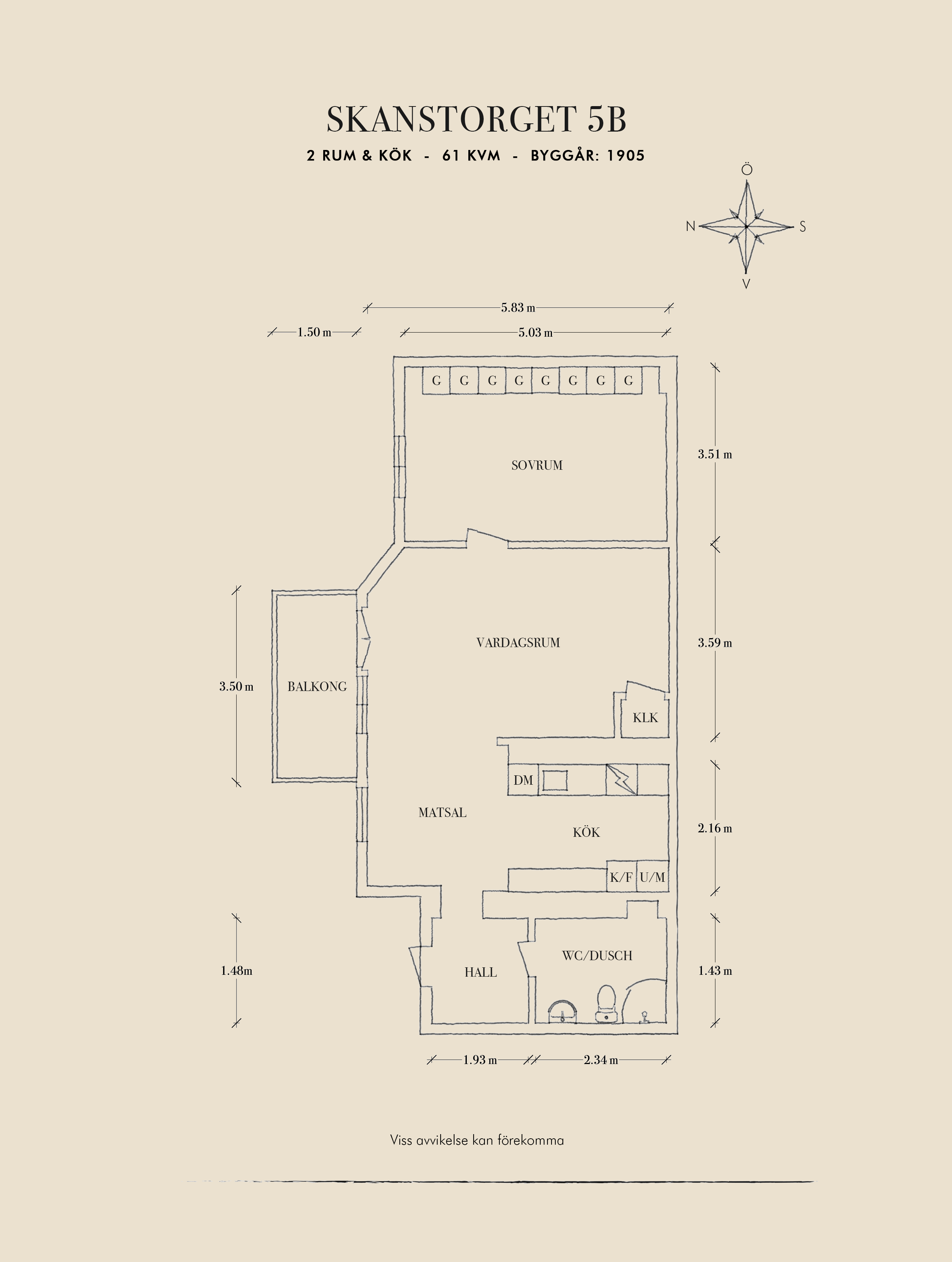 - Boarea: 61 kvm