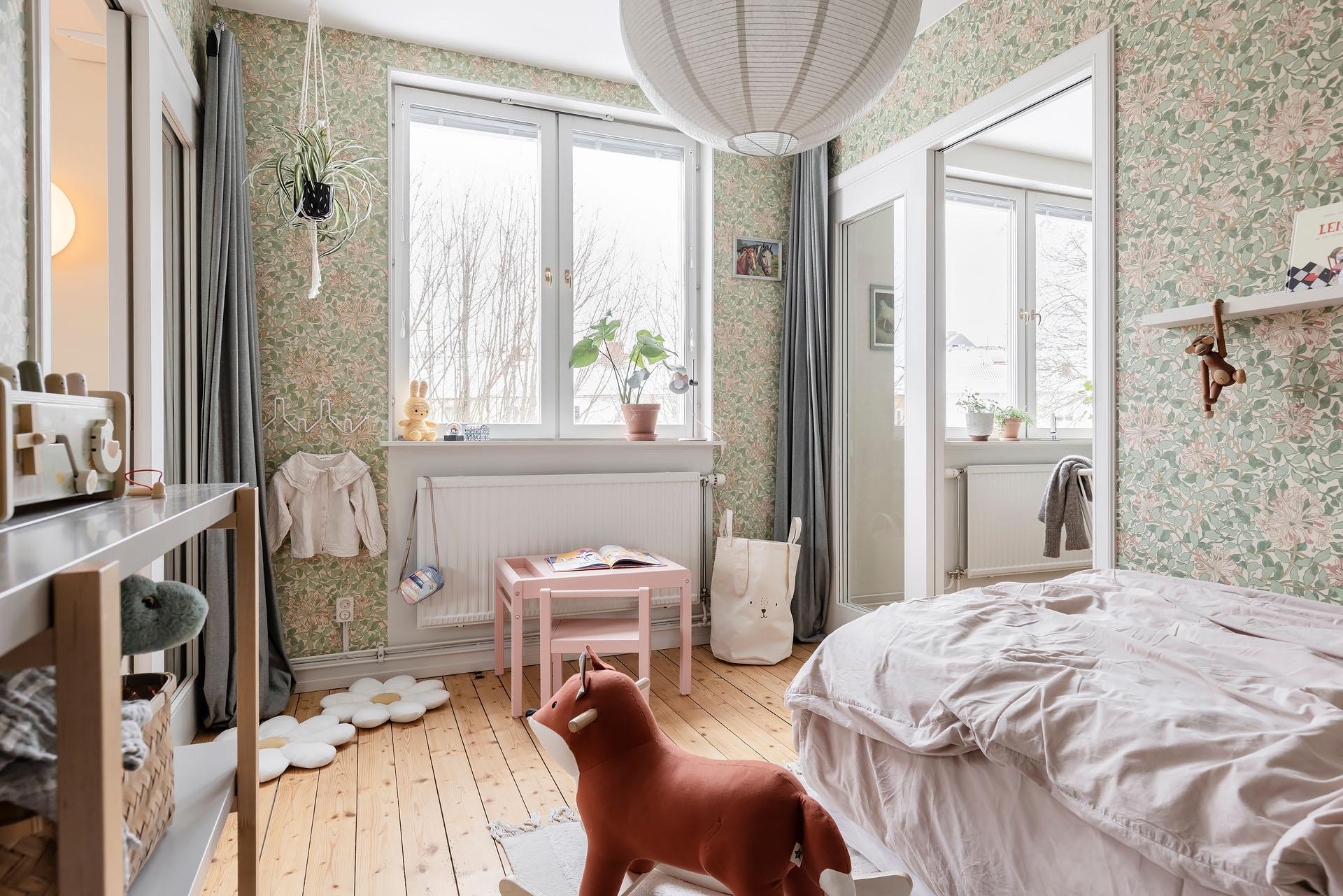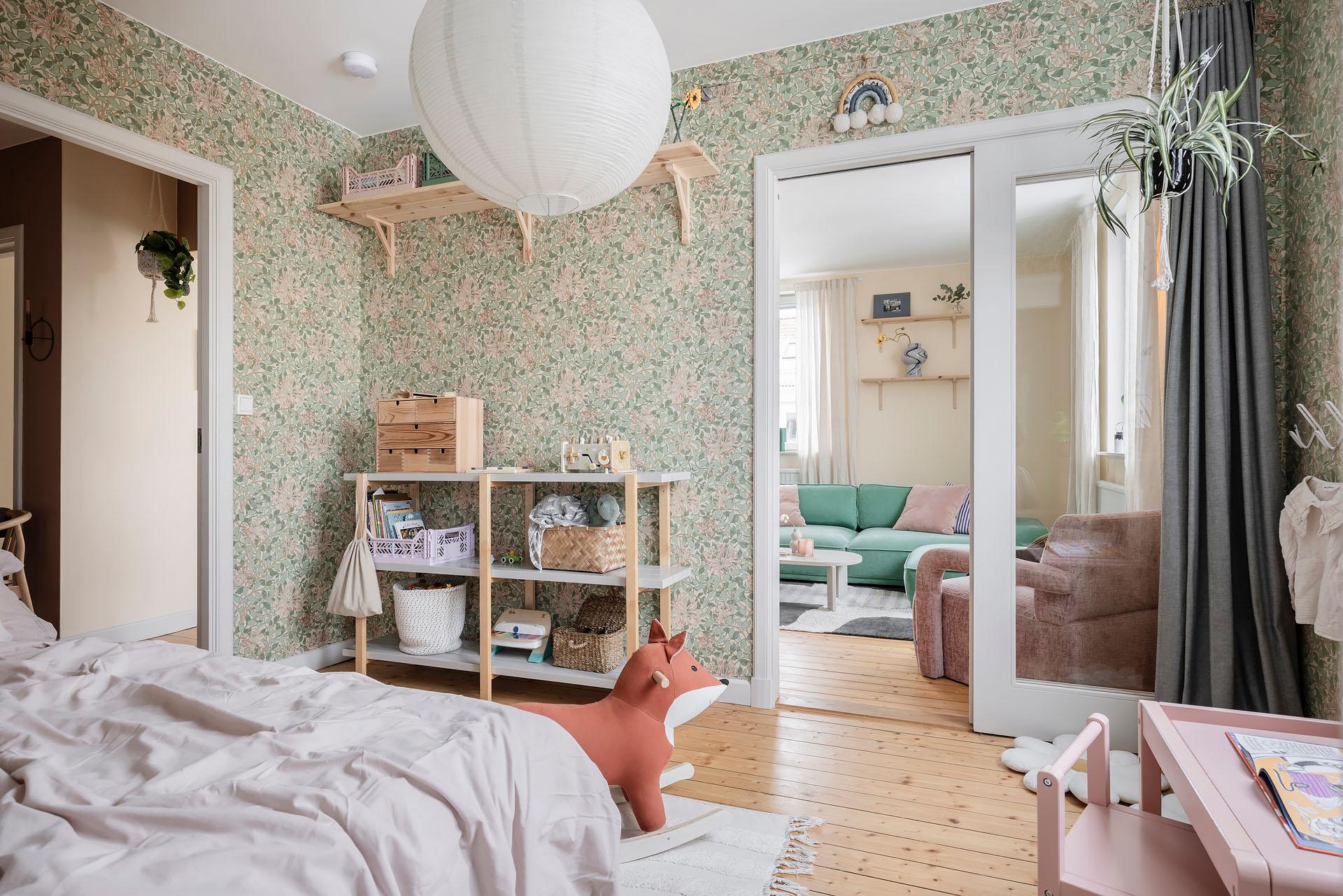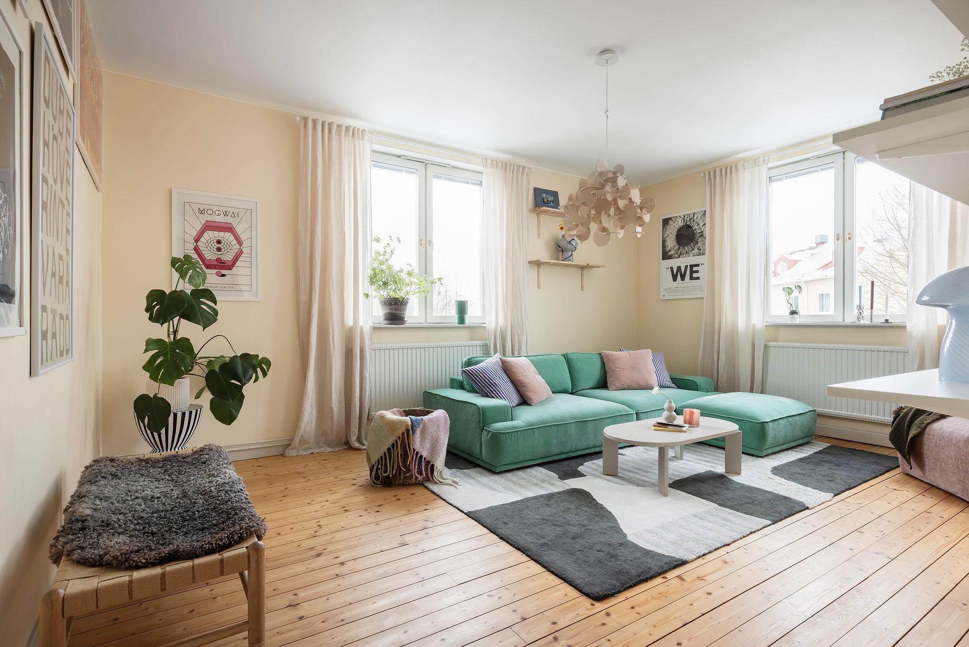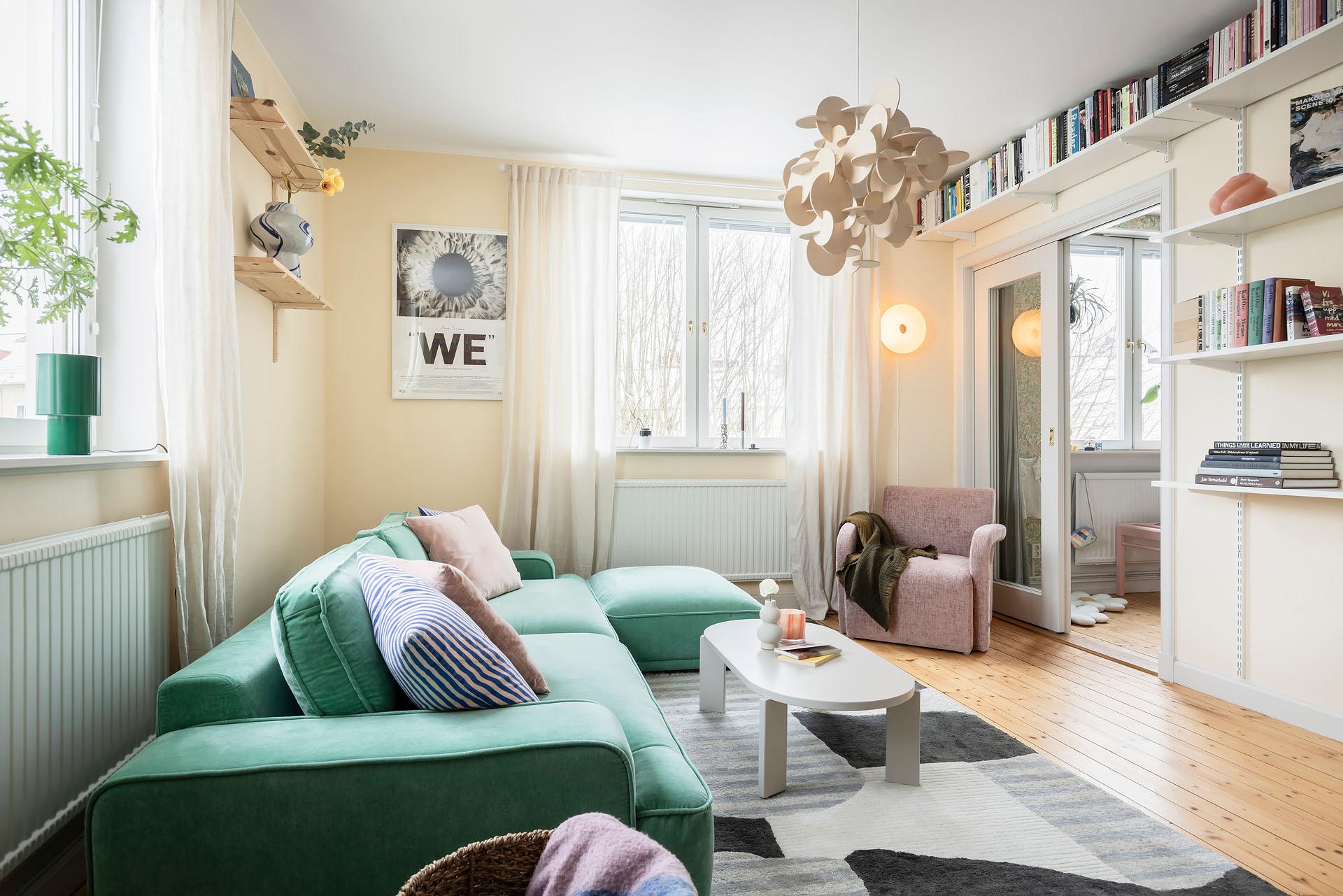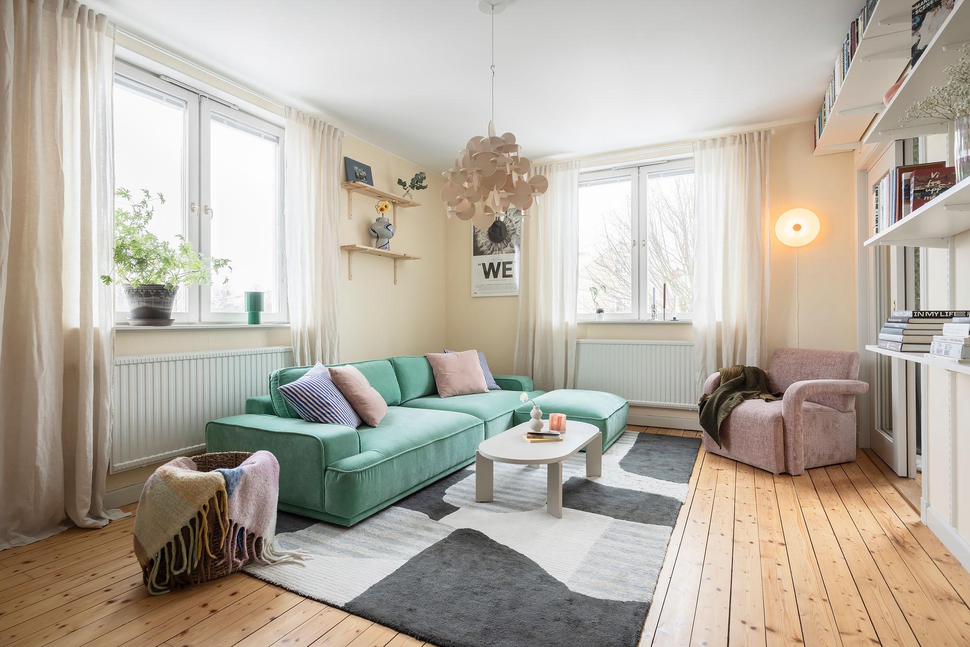 Högt upp i huset på eftertraktade adressen Solrosgatan 23 väntar ett ljust och karaktärsfullt hem med gavelläge och fri känsla mot trädtoppar och himmel. Planlösningen är både unik och naturlig, med fint flöde mellan rummen och ljus från flera håll. Genomgående brädgolv, spegeldörrar och vackra listverk ger charm, medan den mjuka färgsättningen skapar en lugn helhet. Här bor man ostört men centralt i Kålltorp, i en av områdets mest välskötta föreningar. Som extra bonus väntar en innergård som hör till de allra finaste i kvarteren.