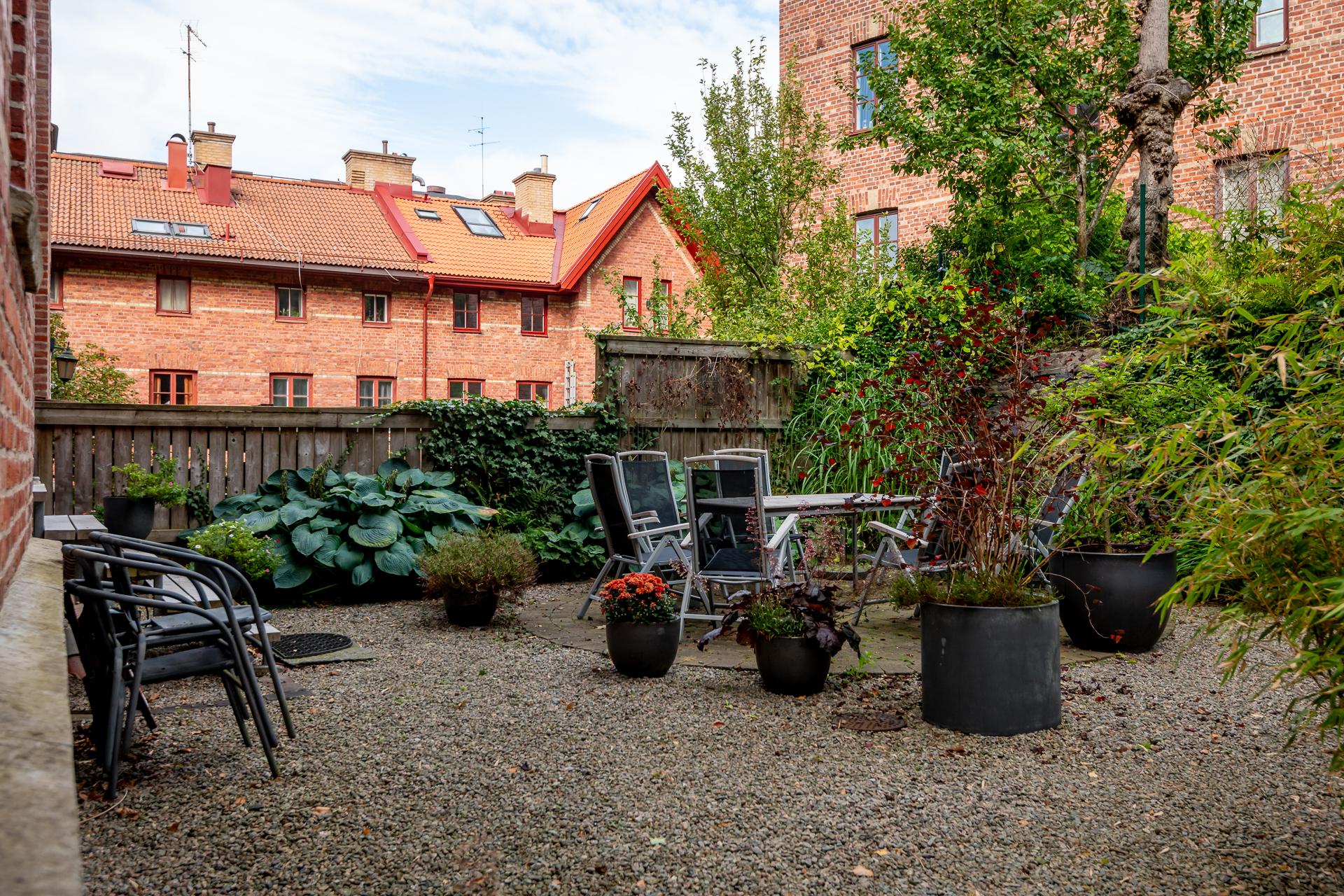- Balkong/Uteplats: Nej. Två fina gemensamma uteplatser gränsande till Engelska parken