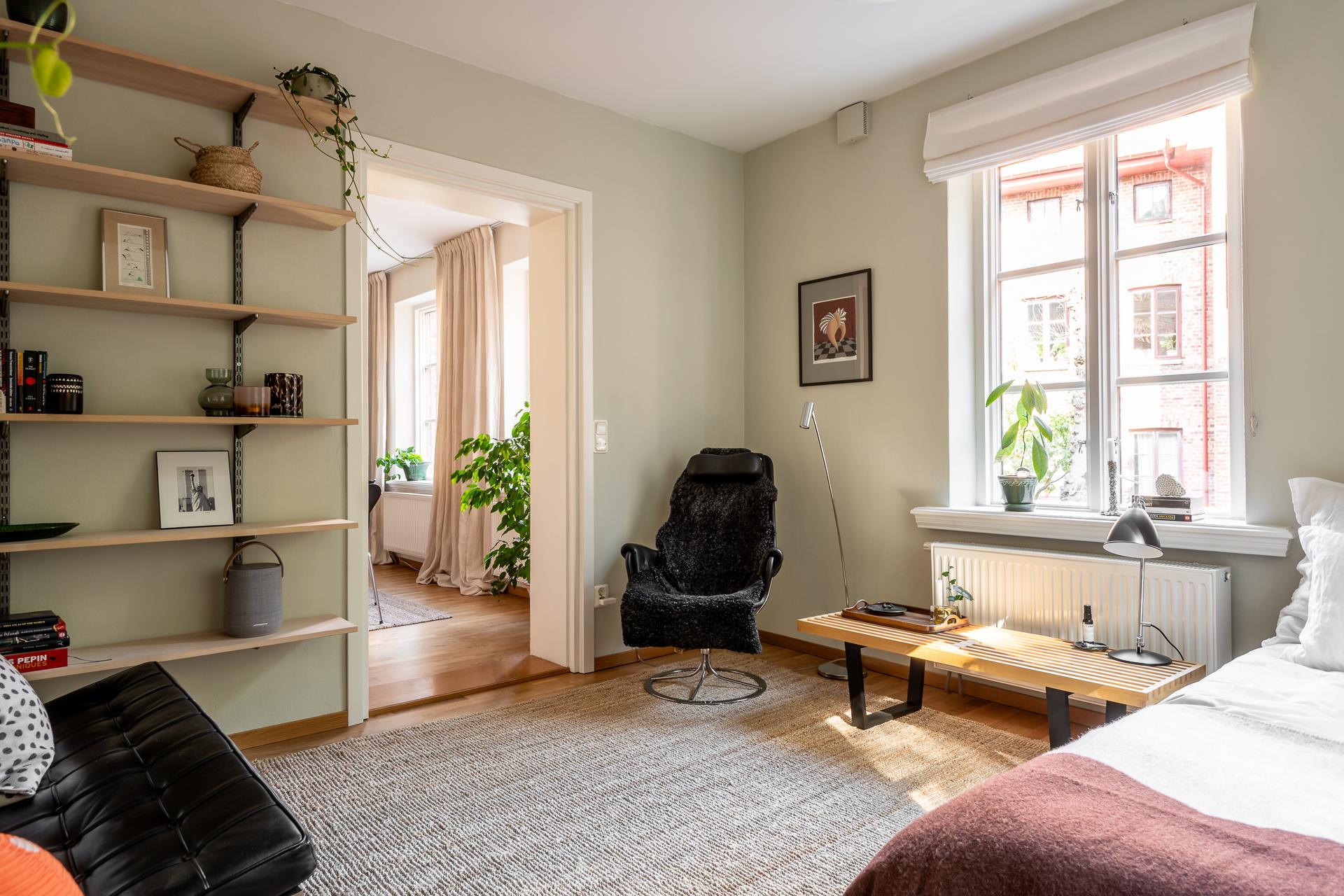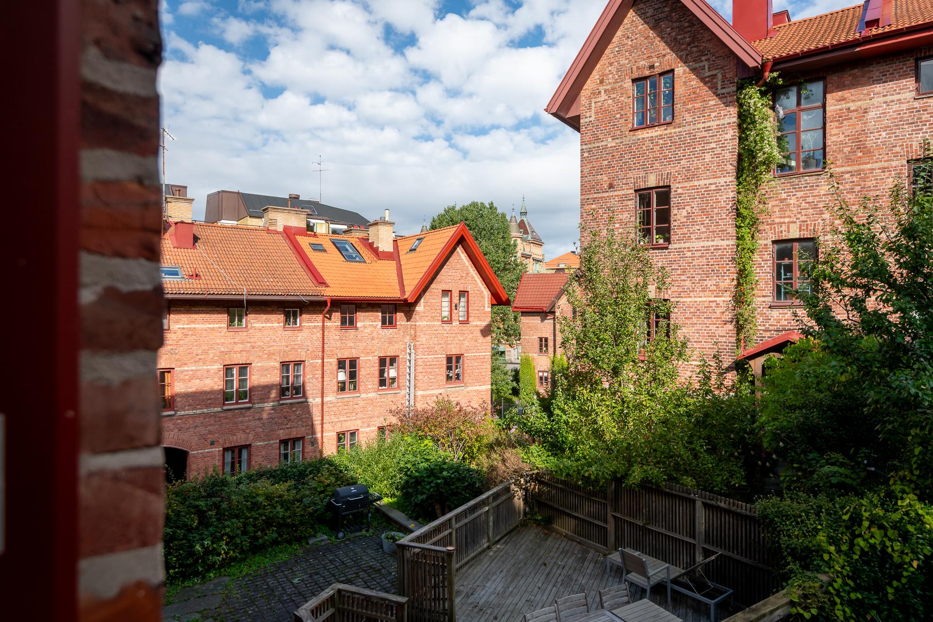 I ett av de engelskdoftande tegelhusen hittar vi denna totalrenoverade ateljébostad med mer känsla av Brick Lane än Annedal. Bostaden och hela bostadsfastigheten är stilrent och påkostat renoverad år 2008. Njut av närheten till naturen eller föreningens lummiga gård med två sällsynt vackra uteplatser. Gångavstånd till allt staden har att erbjuda. Historiska kvarter vilka gränsar till stort grönområde och Engelska parken utanför fönstret och läget i stan är perfekt med direkt närhet till Linnéstaden, Haga och Vasastaden med mycket bekvämt strosar avstånd. Endast fyra minuters promenad till Slottsskogen och direkt närhet till Handels. Välkommen till Spekebergsgatan 12, välkommen hem.