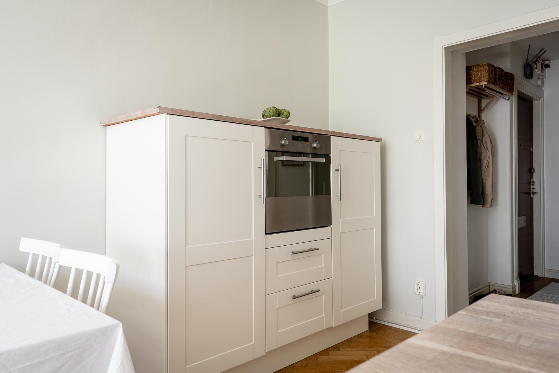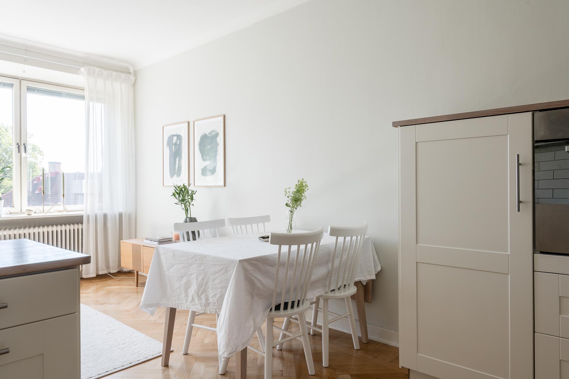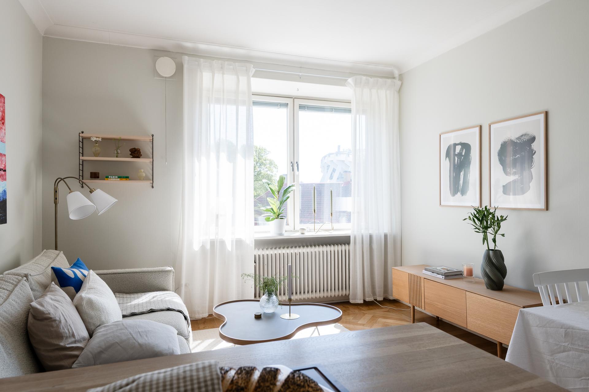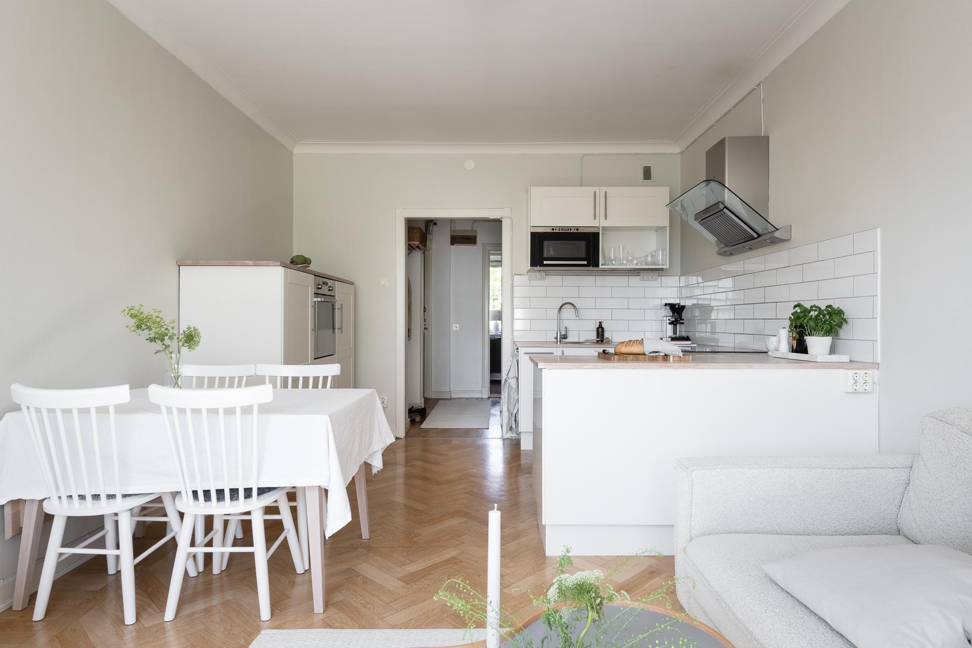 Charmig och ombonad minitvåa med ett ypperligt centralt läge. Kök och vardagsrum i öppen planlösning. Vackra detaljer som fiskbensparkett i ek, plankgolv, stuckaturer, takrosett och en härlig takhöjd. Hiss och Gemensam balkong. Nyrenoverat badrum och mycket gott skick i övrigt - här kan ni flytta in direkt. Bra förening med låg belåningsgrad. Prunkade innergård.