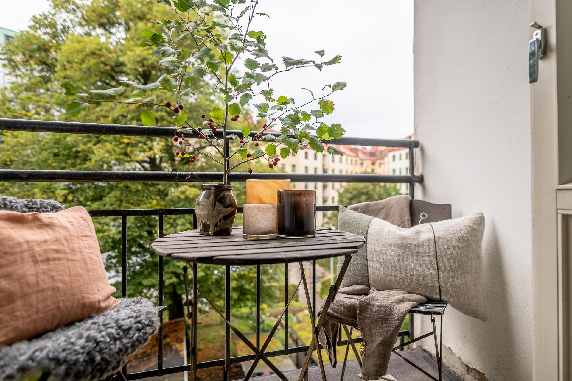 - Balkong/Uteplats: Nej. Gemensam balkong mot innergården