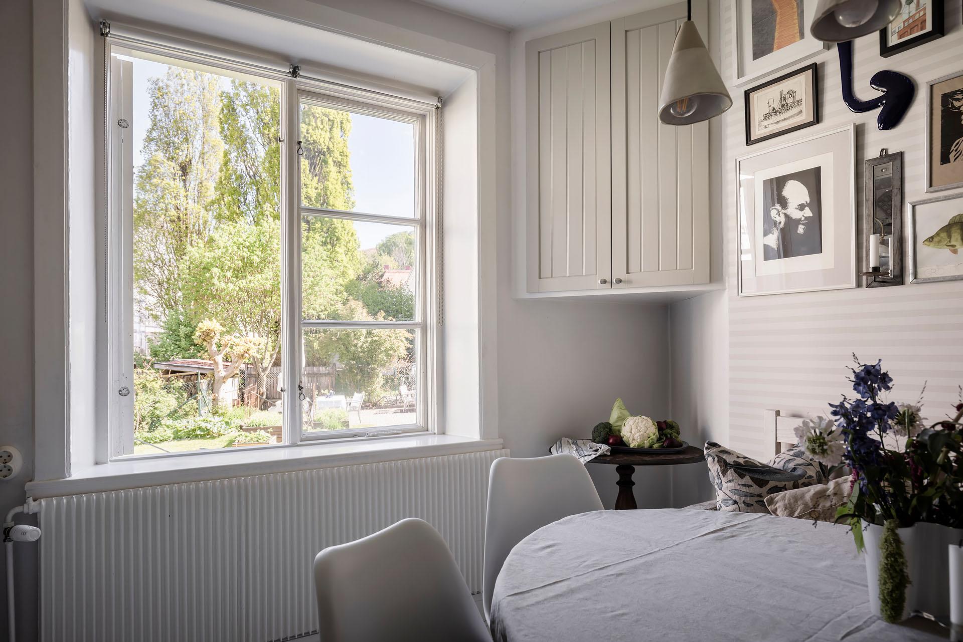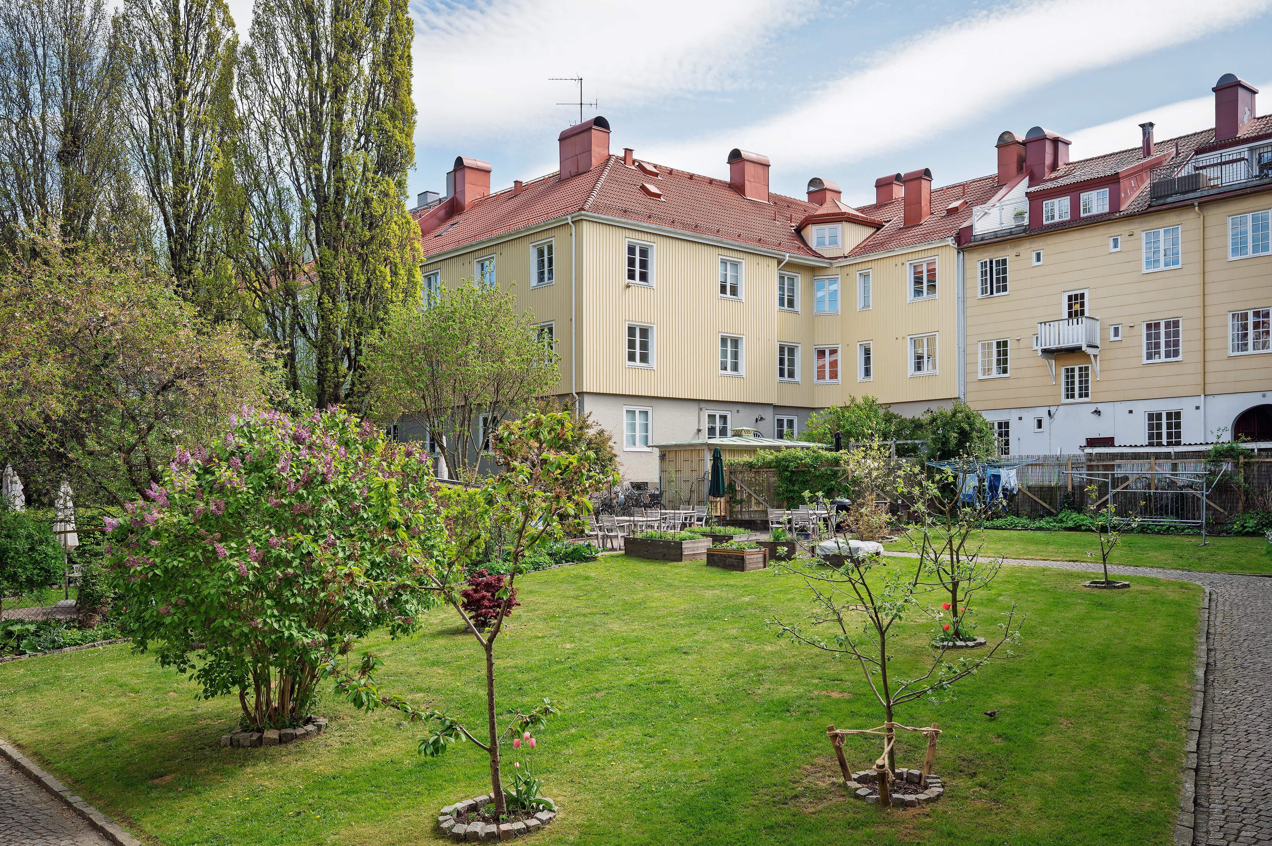 En mysig landshövdingehustrea med takrosetter, spegeldörrar, spröjsade fönster, framtagna brädgolv och eldningsbar kakelugn. Den genomgående planlösningen låter dagsljuset flöda, och de handblåsta fönsterglasen bryter solens strålar på ett vackert sätt. Från köket och det ena sovrummet är det utsikt mot föreningens innergård som är en grönskande oas med trädgårdsmöbler, odlingslådor och välskött växtlighet. Det är en välskött förening, och trevlig stämning råder grannar emellan. Läget är perfekt, och här erbjuds ett lugnt, avskilt och barnvänligt boende med skola runt hörnet och förskola inom ett stenkast. Tillträde: mellan 15 augusti till 1 oktober. Varmt välkomna på visning!