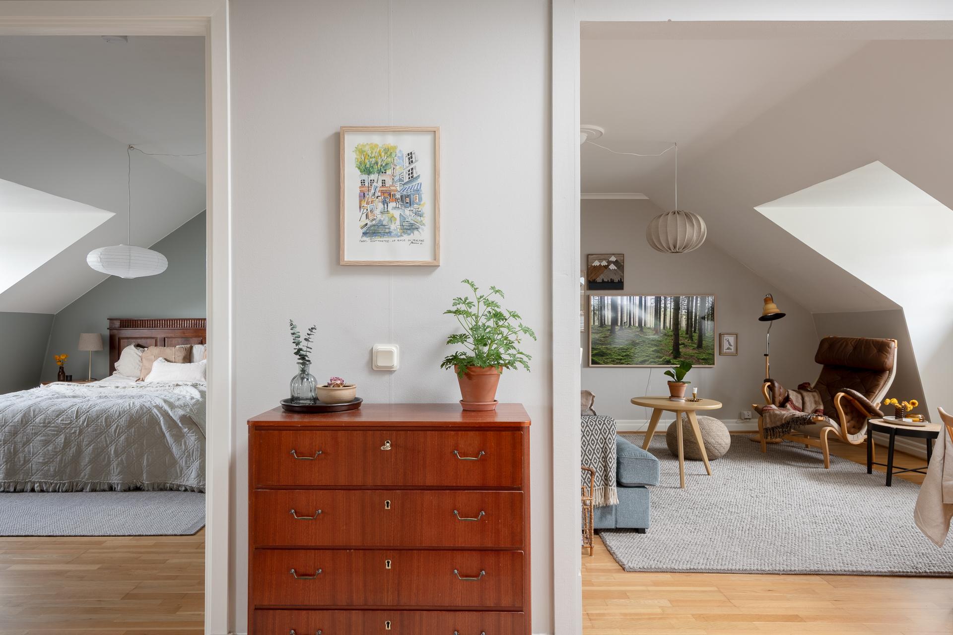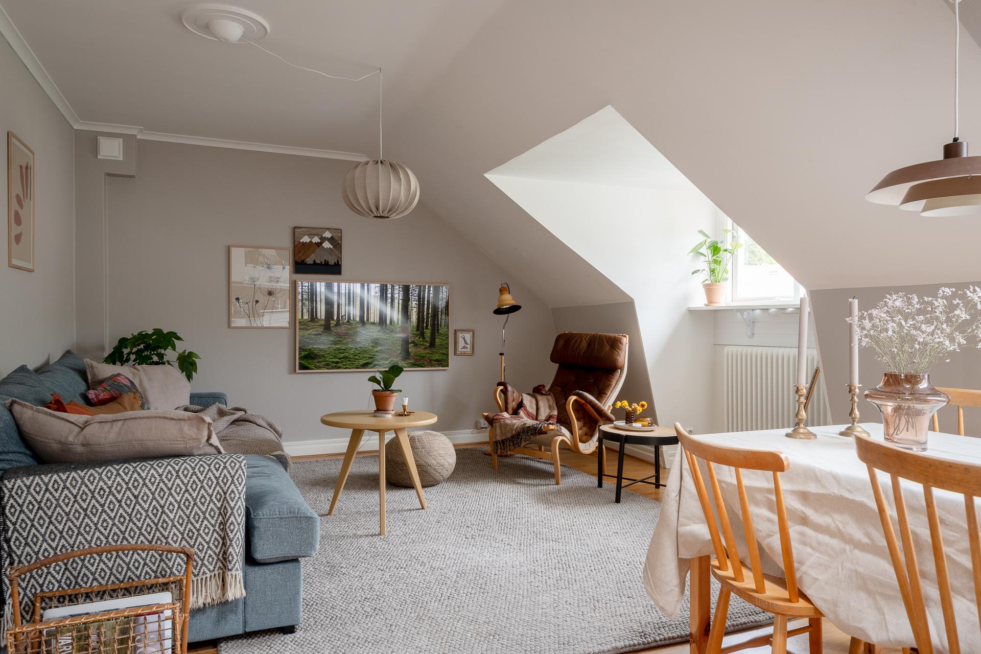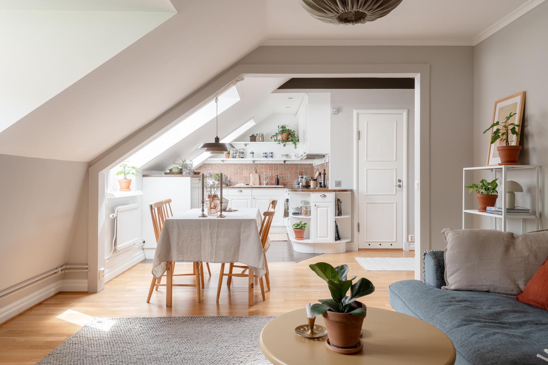 Sommaren står i full blom i ett av Göteborgs mest pastelliga områden, Änggården. Här ligger den här grönskande vindslägenheten med uteplats! Vardagsrummet ligger i öppen planlösning med vardagsrum och kök. Takfönster och stora härliga öppna ytor definierar detta hem. Varmt välkomna på visning!