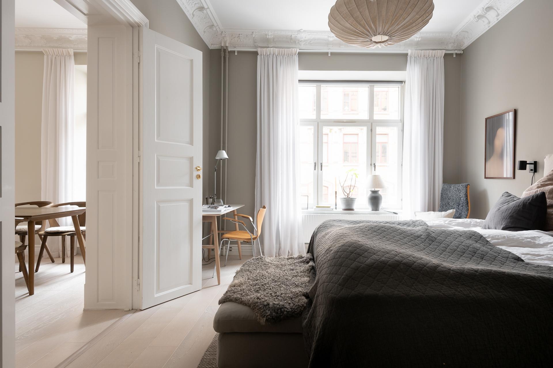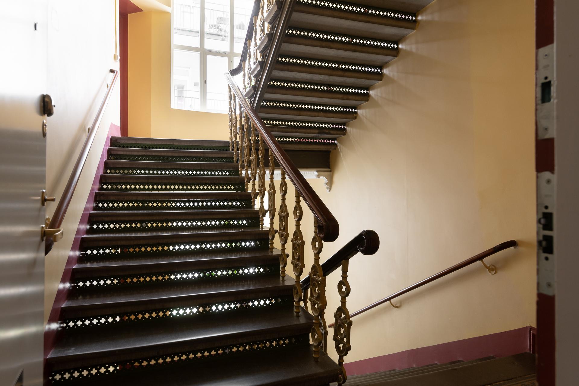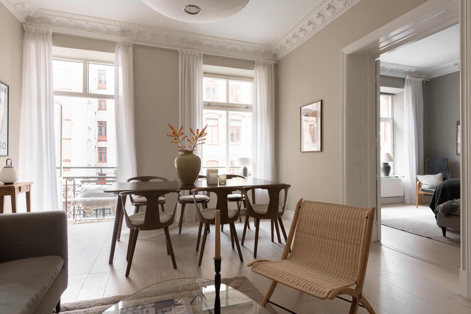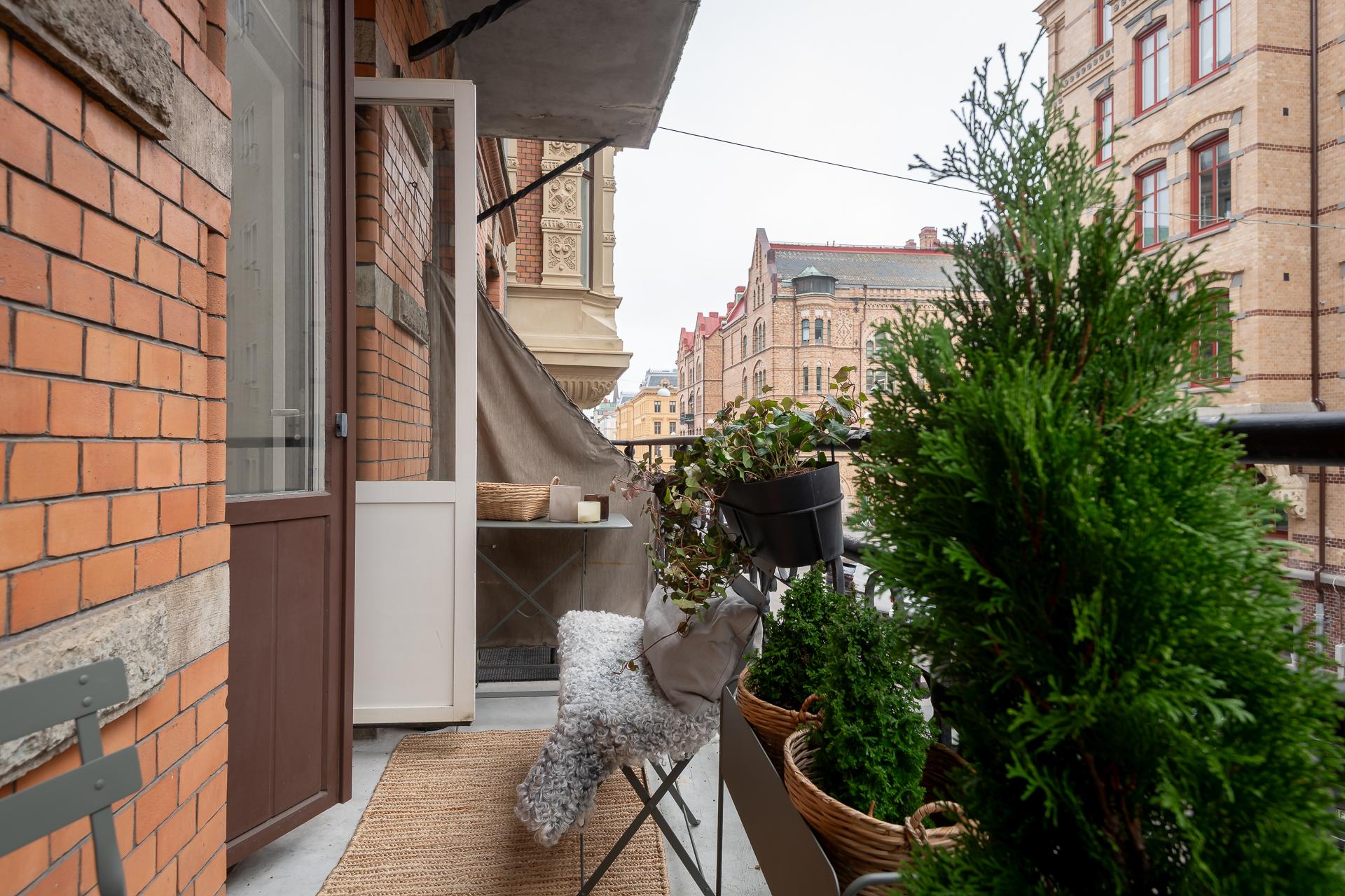 - Balkong/Uteplats: Ja. Stor smidesbalkong ut mot gatan i originalutförande.