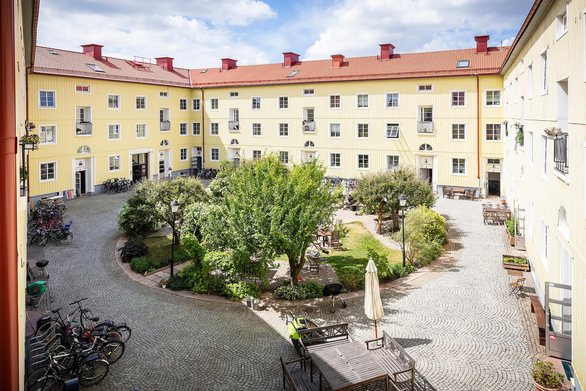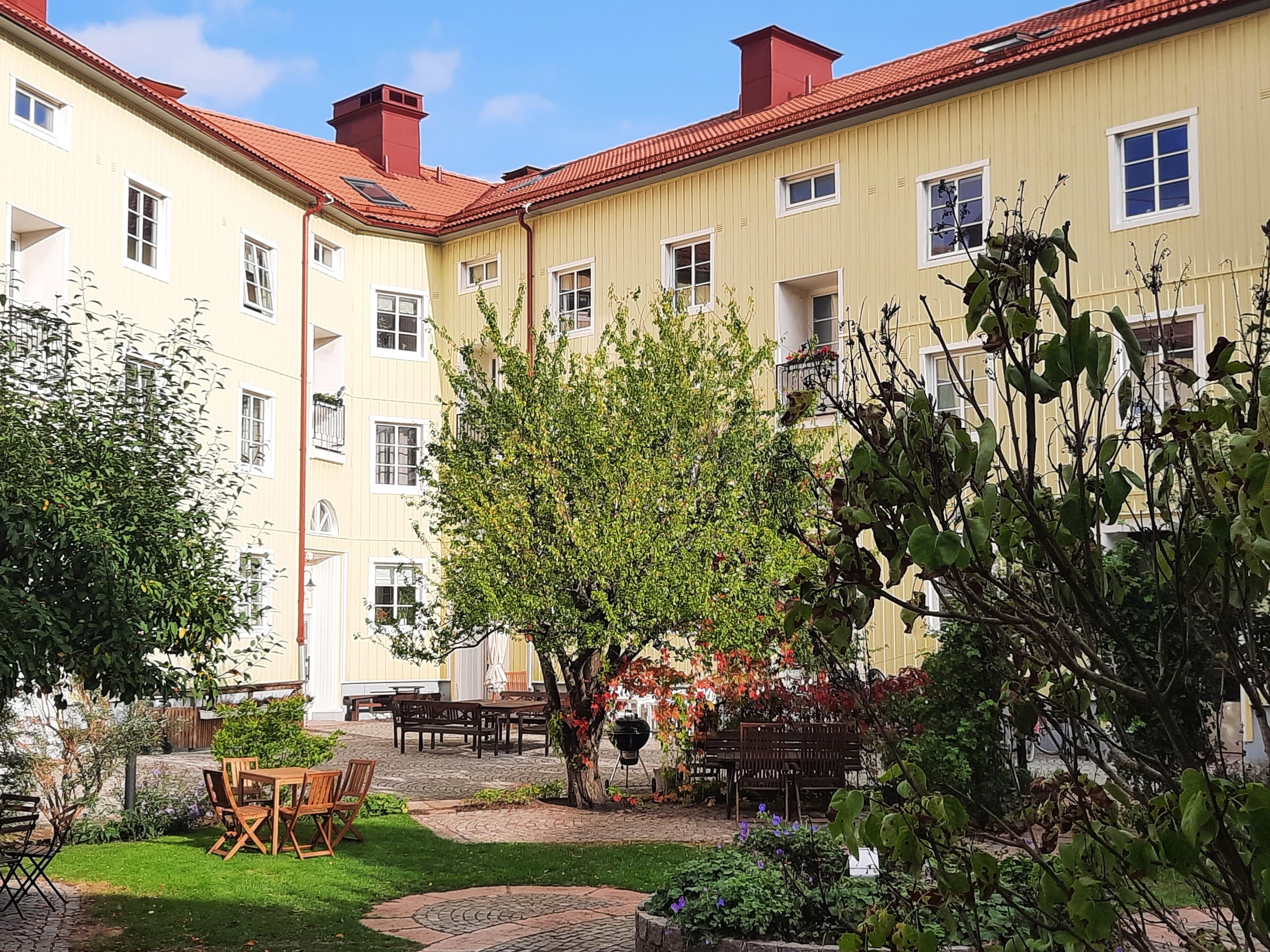 - Balkong/Uteplats: Nej. Underbar innergård med flertalet sittplatser, grillar, och planteringar. Möjlighet finns att ha en egen odlingslåda på gården.