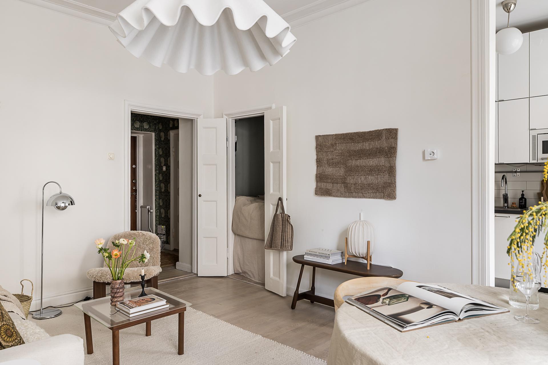 Charmig och smart planerad 1,5:a i ett vackert 20-talshus med hiss! Här möts du av ett stilrent kök i öppen planlösning mot vardagsrummet – perfekt för både vardag och umgänge. Renoverat badrum med tvättmaskin och spröjsade fönster för generöst ljusinsläpp. Läget är oslagbart och huset är i mycket gott skick – en riktig pärla för dig som söker både stil och funktion i ett attraktivt område. Välrenoverad 20-talsfastighet ed hiss. Mycket välskött fastighet och engagerad förening med stor del hyresintäkter.