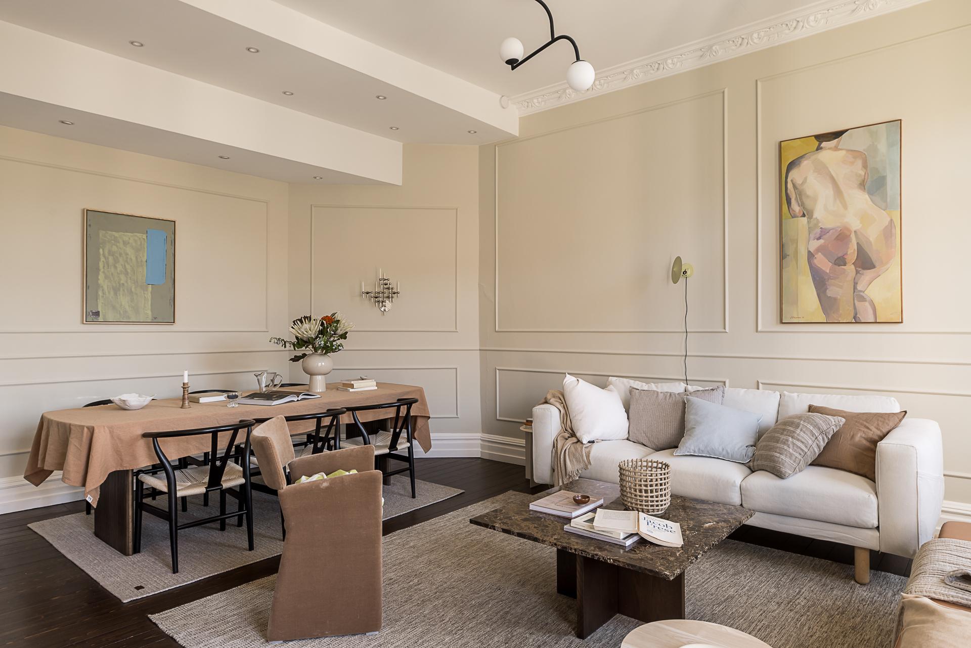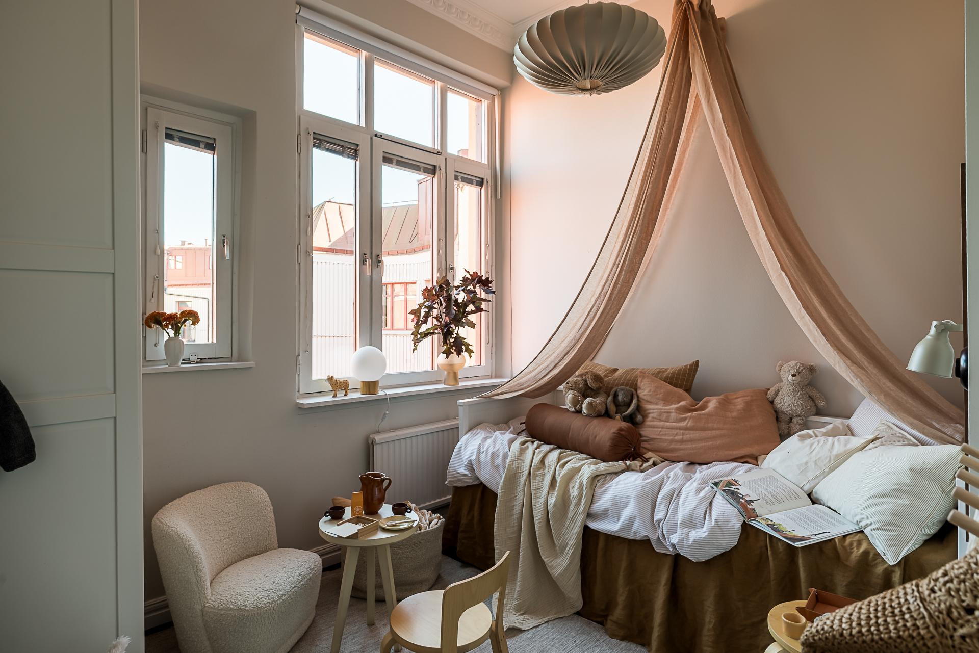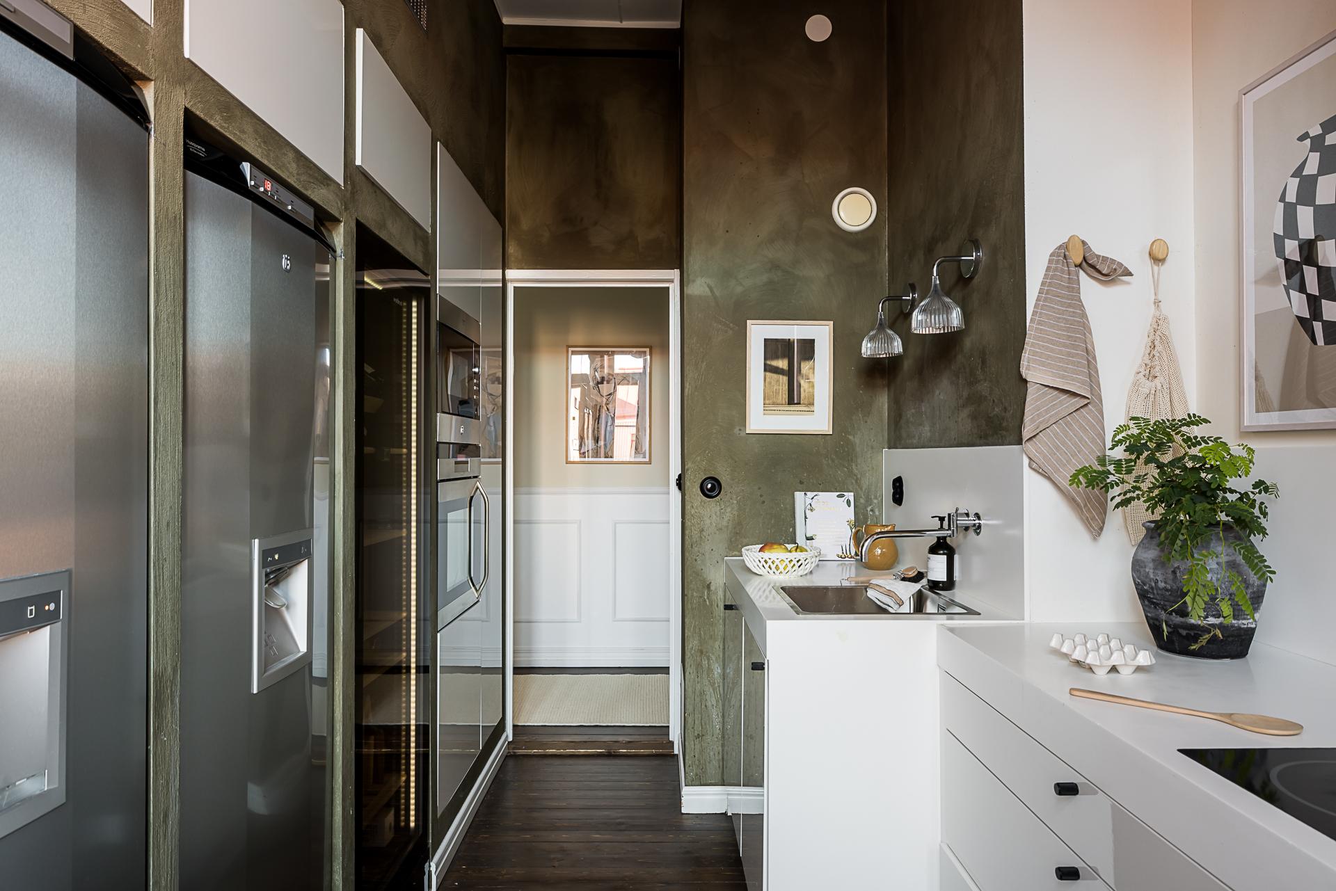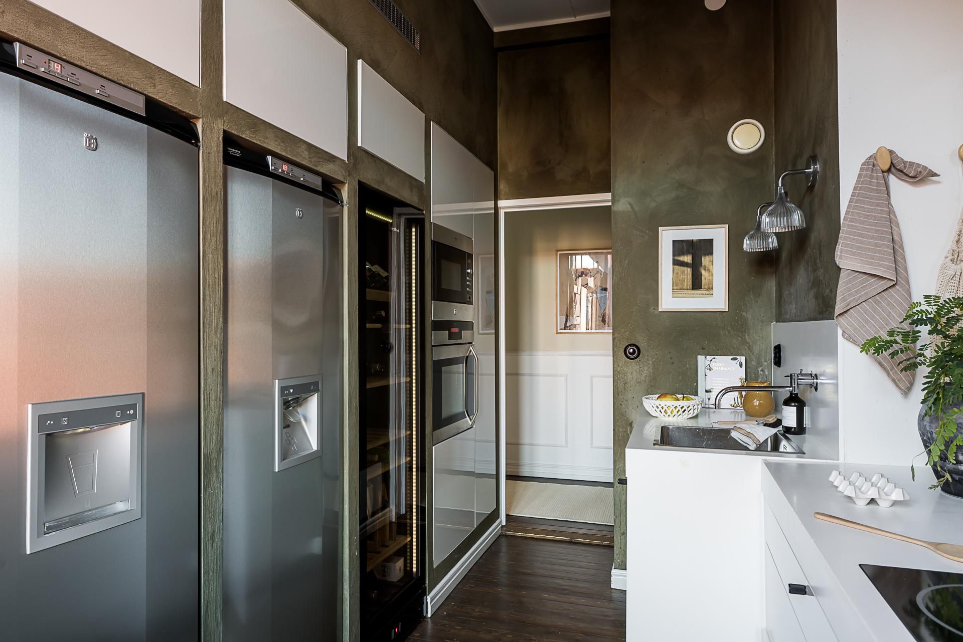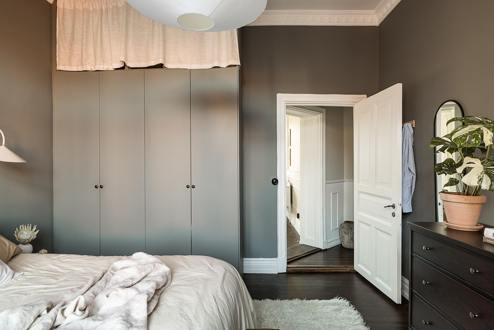 Sekelskiftestrea i högsta, friaste, ljusaste läge. Hissen går hela vägen upp till femte våningen och där väntar 82 kvadrat med brädgolv, dryga tre meter till tak och en västerbalkong med smidesräcke. Allt detta i fastighet med alldeles nyrenoverad fasad och nya fönster från 2020.