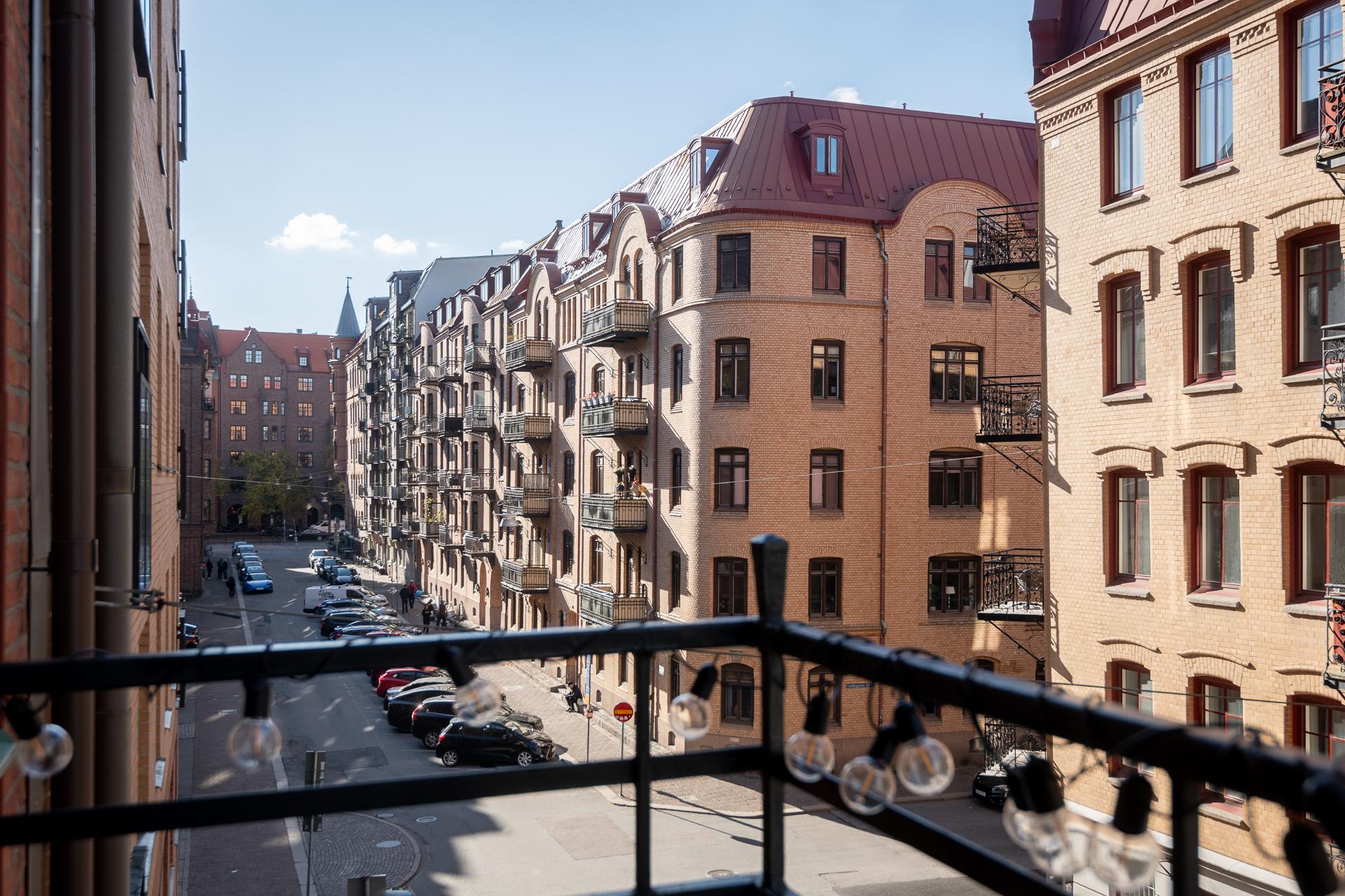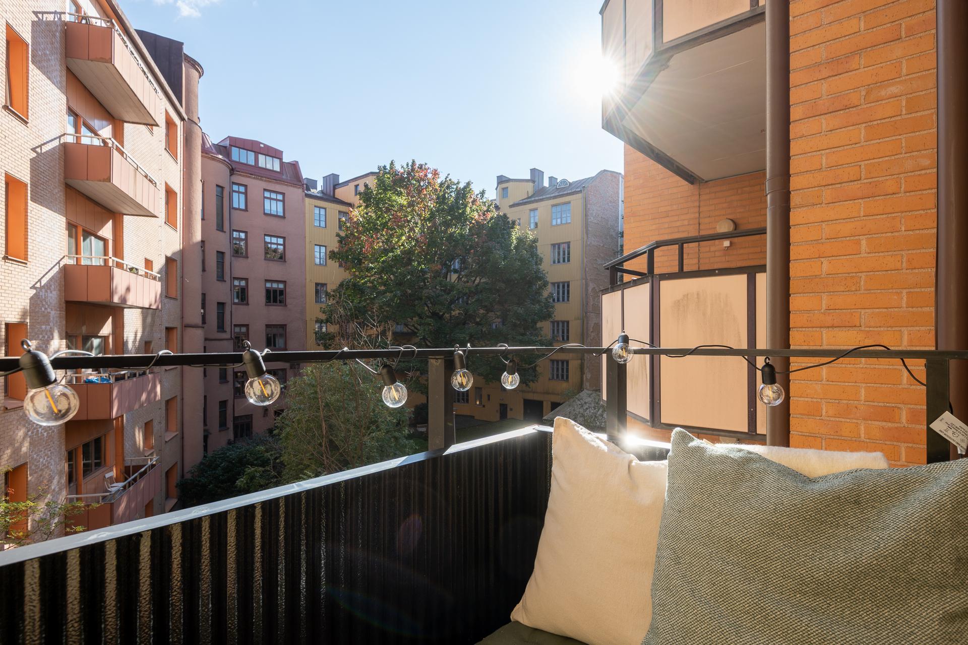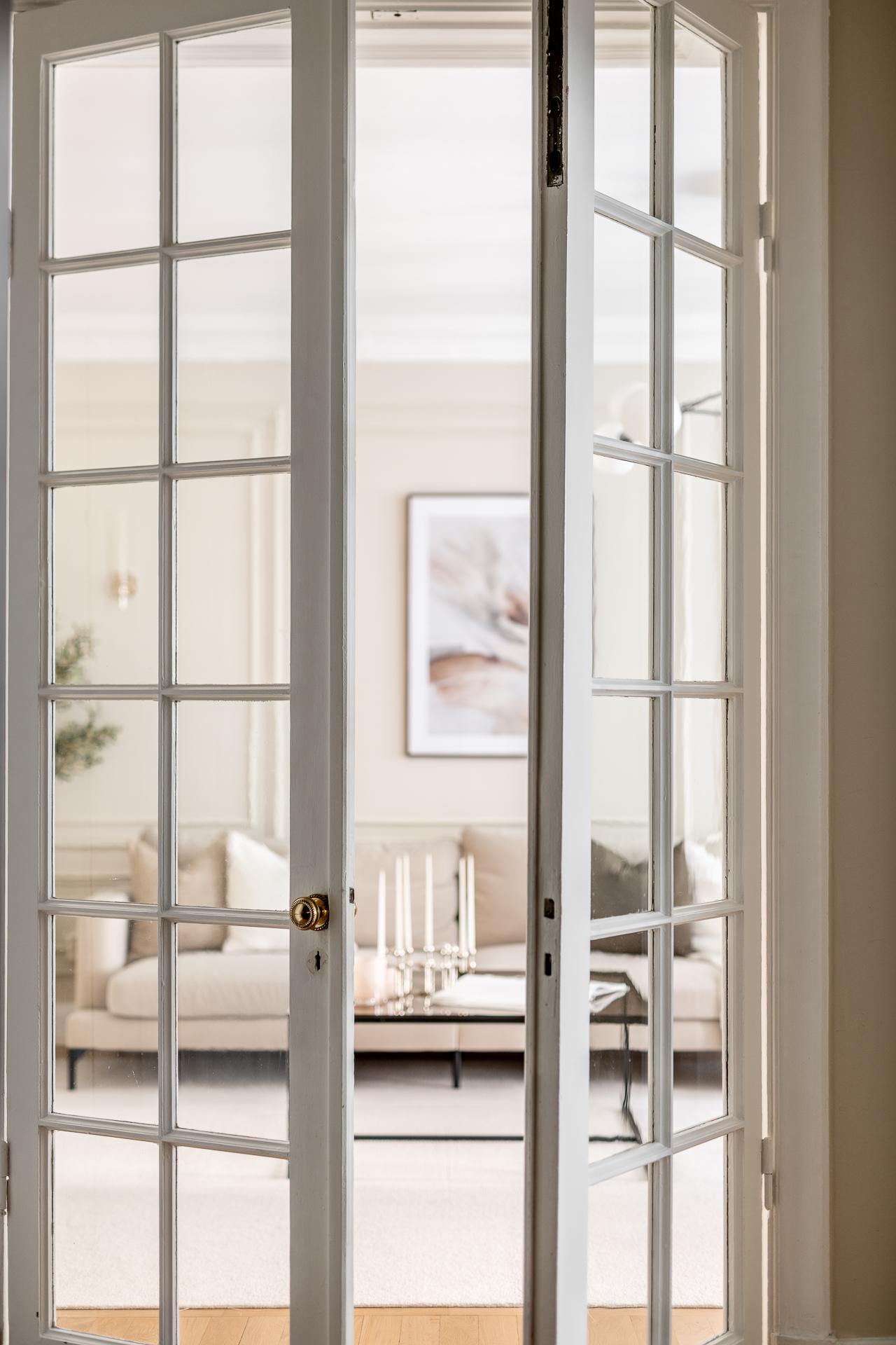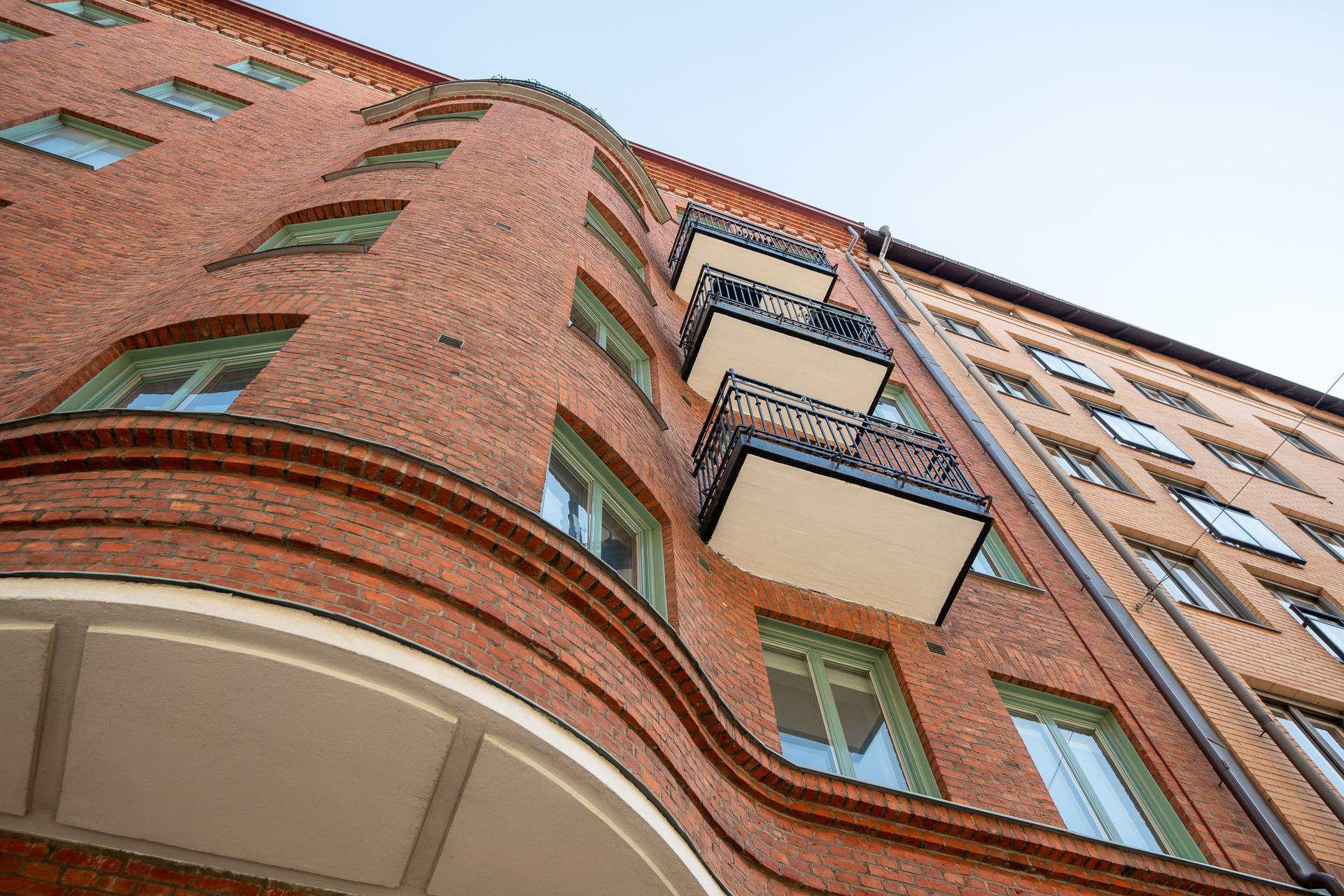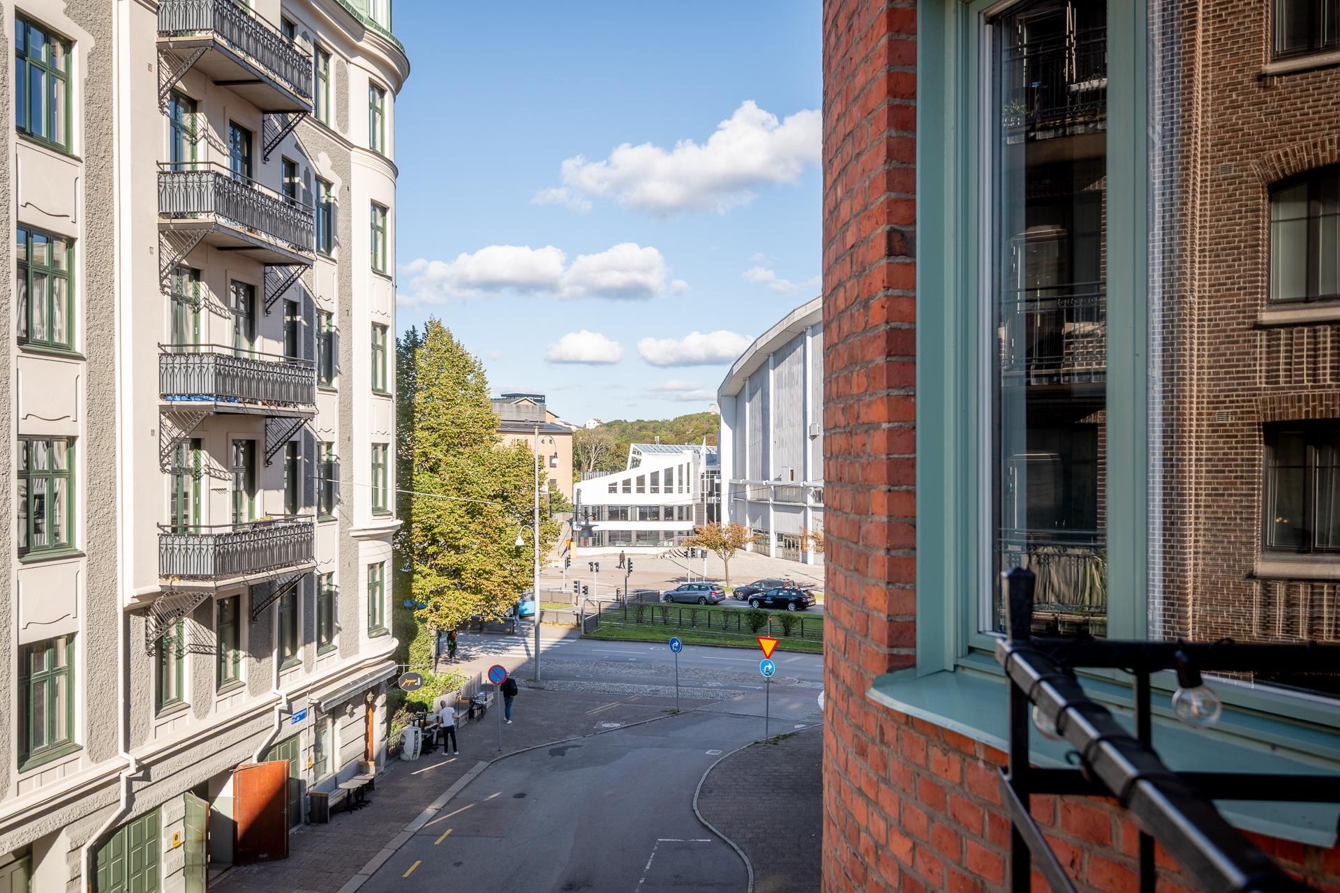 Helrenoverad 30-talstrea med två balkonger, två utmärkta sovrum och hiss upp till andra boendeplanet. Här erbjuds ett underbart hem med vackra originaldetaljer så som fiskbensparkett, luftig takhöjd, höga fotlister, nätt stuckatur och takrosetter som i kombination med de stilfulla materialvalen skapar en mycket fin helhet. Välhållen fastighet och bostadsrättsförening med mycket låg belåningsgrad, låga avgifter där även fiber ingår och betydande intäkter från tre hyreslokaler och en kvarvarande hyresrätt.