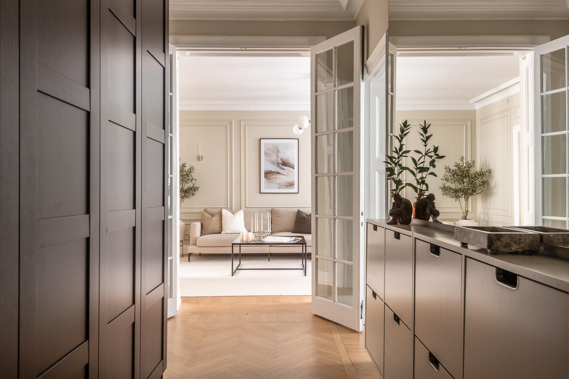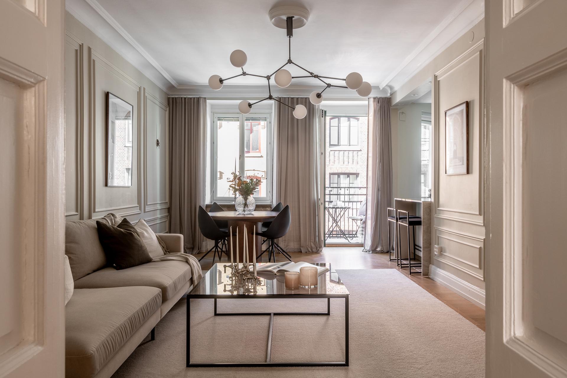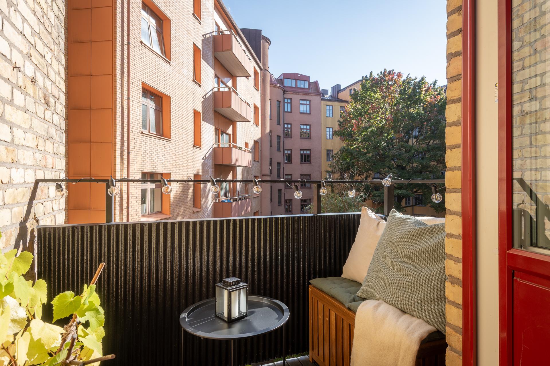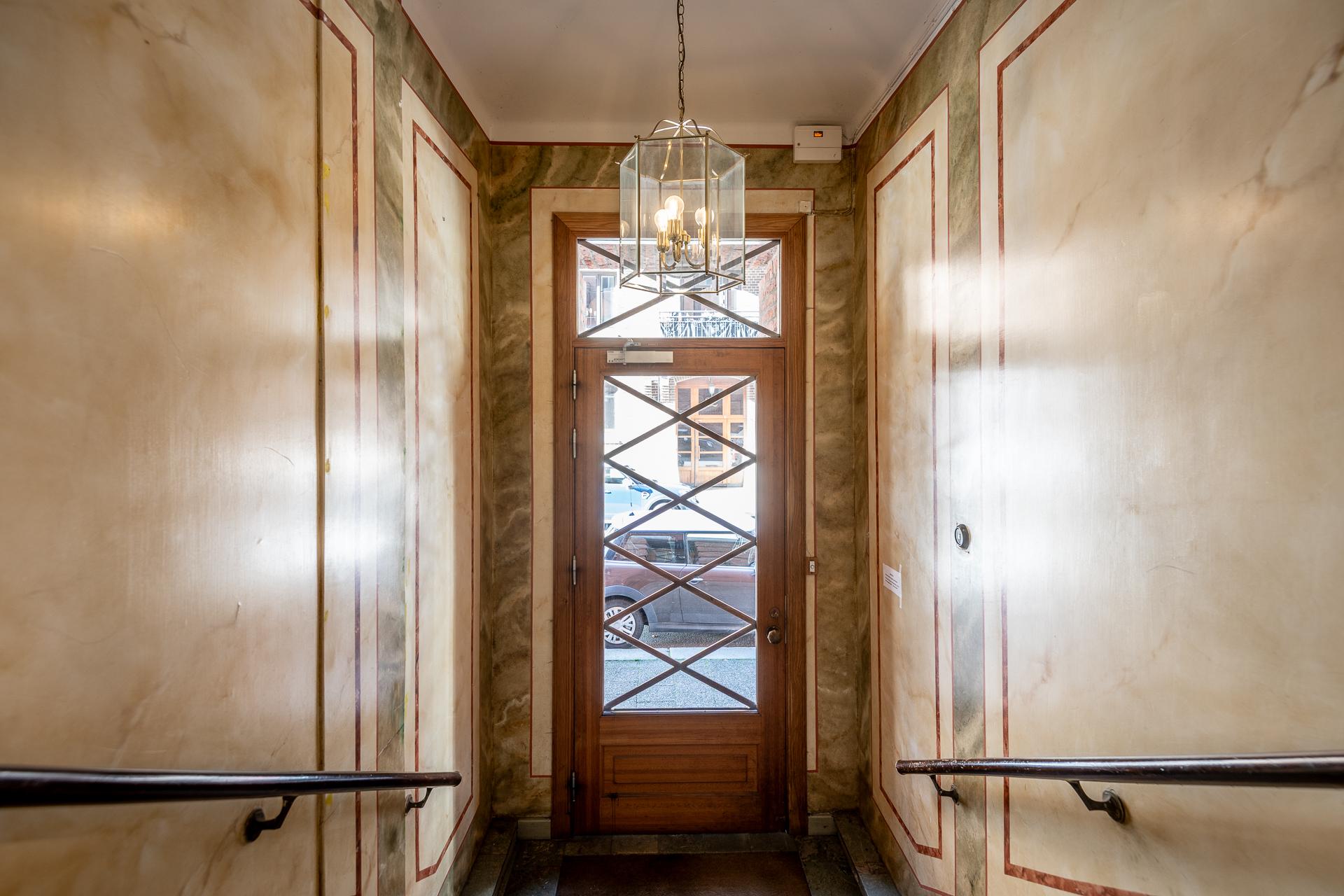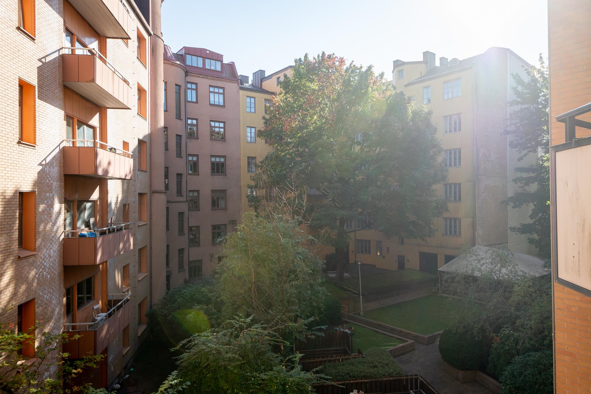 Helrenoverad 30-talstrea med två balkonger, två utmärkta sovrum och hiss upp till andra boendeplanet. Här erbjuds ett underbart hem med vackra originaldetaljer så som fiskbensparkett, luftig takhöjd, höga fotlister, nätt stuckatur och takrosetter som i kombination med de stilfulla materialvalen skapar en mycket fin helhet. Välhållen fastighet och bostadsrättsförening med mycket låg belåningsgrad, låga avgifter där även fiber ingår och betydande intäkter från tre hyreslokaler och en kvarvarande hyresrätt.