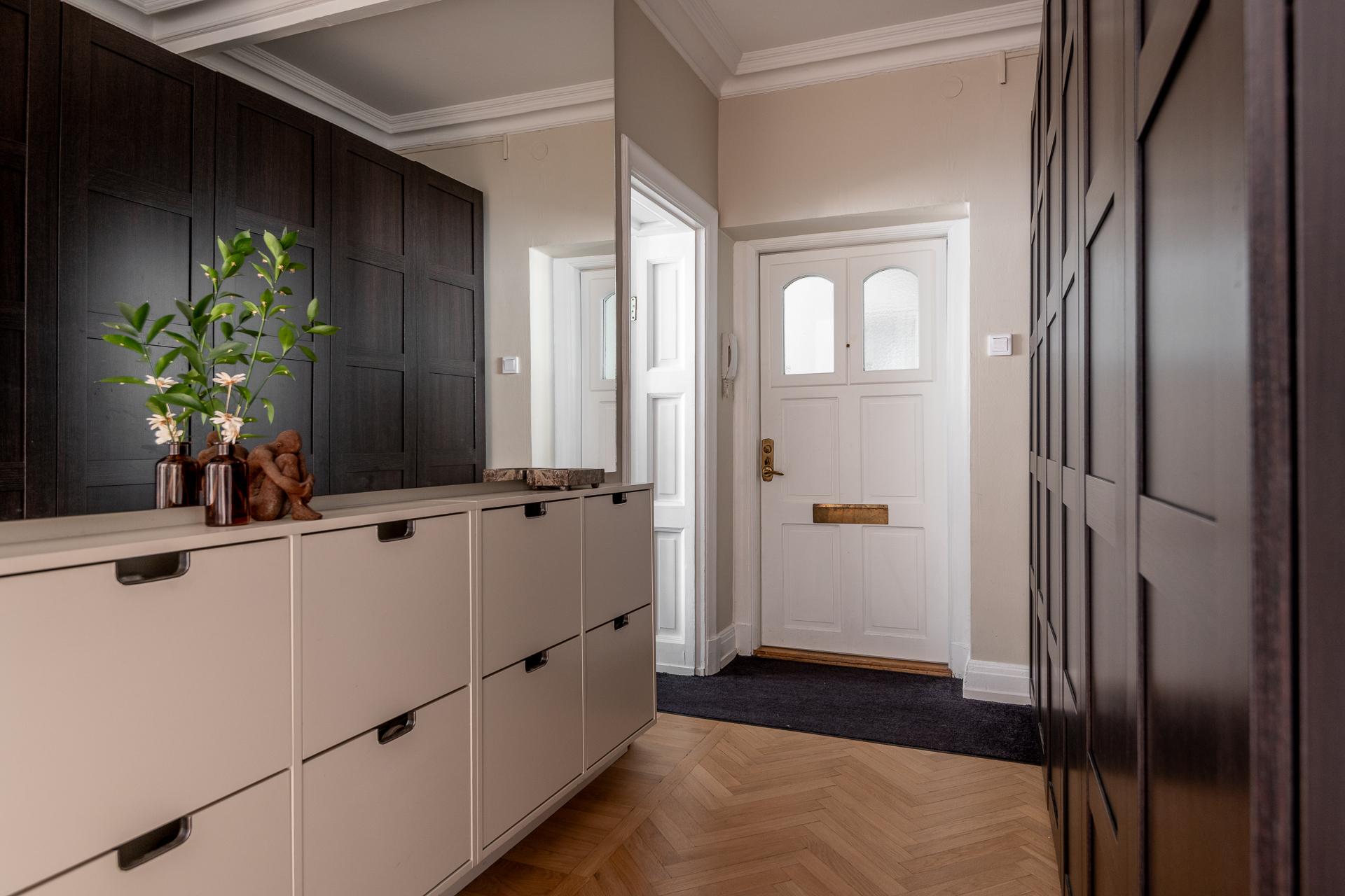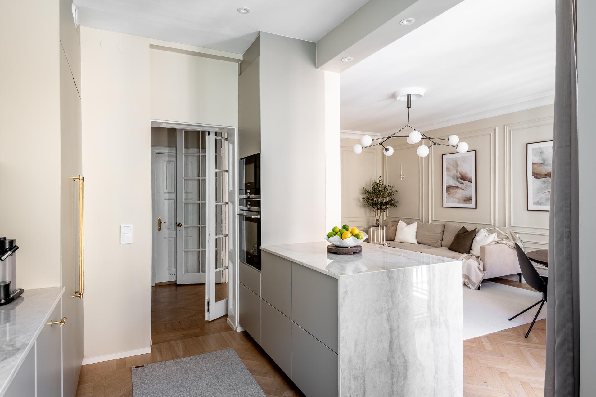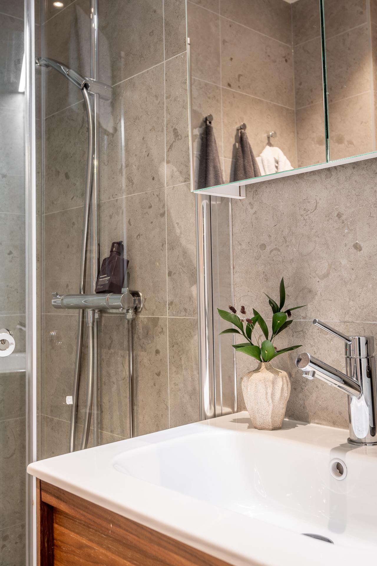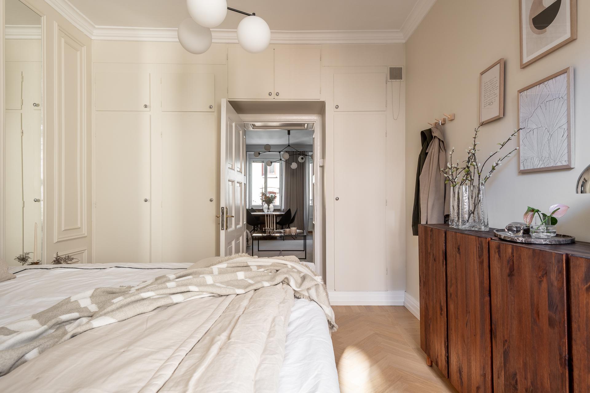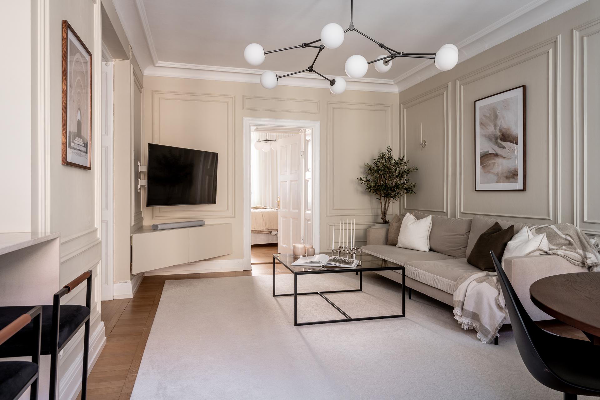 Helrenoverad 30-talstrea med två balkonger, två utmärkta sovrum och hiss upp till andra boendeplanet. Här erbjuds ett underbart hem med vackra originaldetaljer så som fiskbensparkett, luftig takhöjd, höga fotlister, nätt stuckatur och takrosetter som i kombination med de stilfulla materialvalen skapar en mycket fin helhet. Välhållen fastighet och bostadsrättsförening med mycket låg belåningsgrad, låga avgifter där även fiber ingår och betydande intäkter från tre hyreslokaler och en kvarvarande hyresrätt.