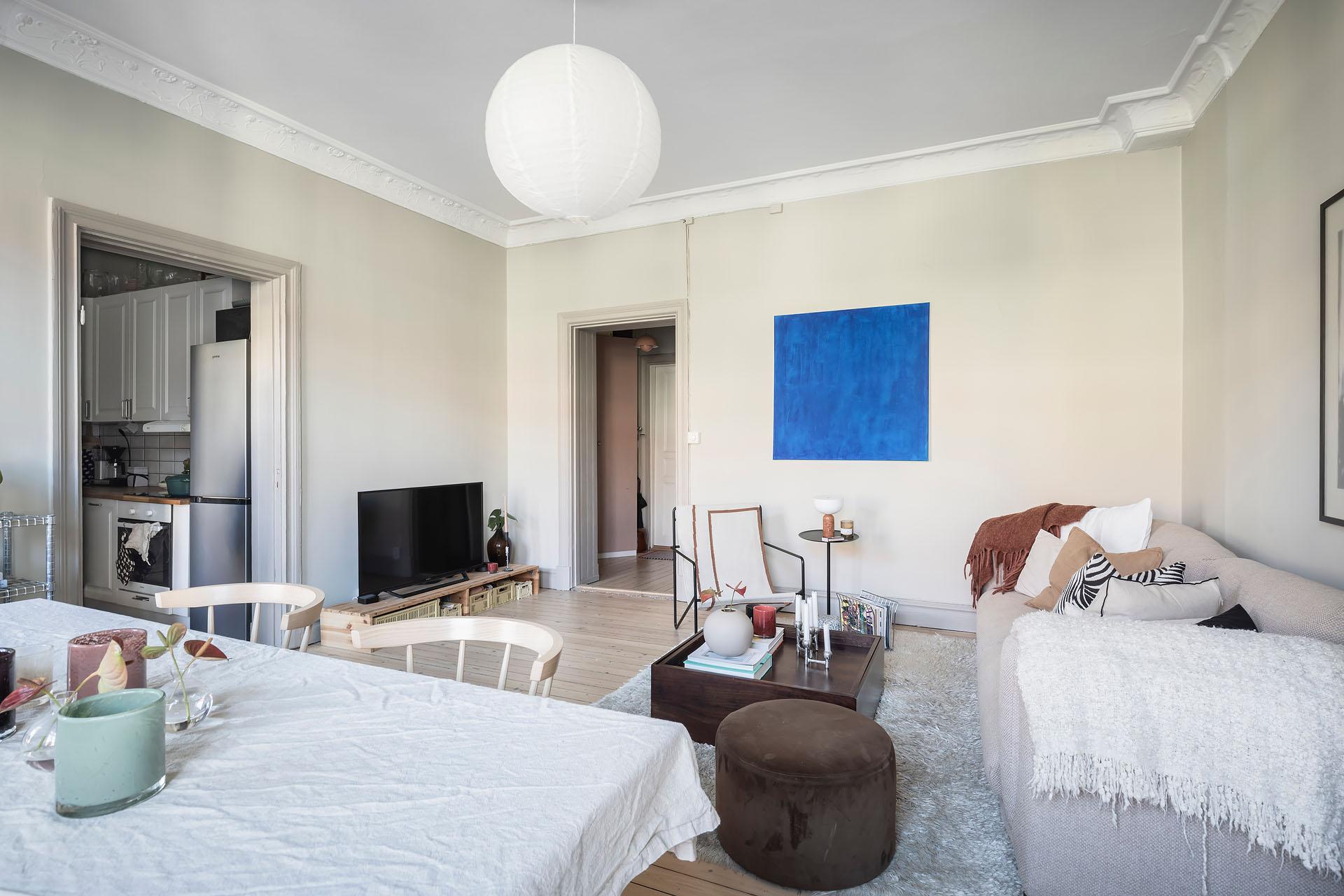 Högt upp i ett av Linnés vackraste sekelskifteshus väntar denna supermysiga “minitvåa” på 42 kvm – ett hem fyllt av charm, ljus och karaktär. Här samsas brädgolv, stuckatur, högresta fönster och generös takhöjd med en genomtänkt planlösning där varje kvadratmeter används på bästa sätt. Den mysiga sovalkoven rymmer en dubbelsäng, och vardagsrummet erbjuder gott om plats för både matbord och soffhörna. På lugna delen av Tredje Långgatan bor du nära både stadens puls och grönskan i Slottsskogen – i en grundförstärkt fastighet i toppskick, med en av Linnéstadens allra vackraste innergårdar