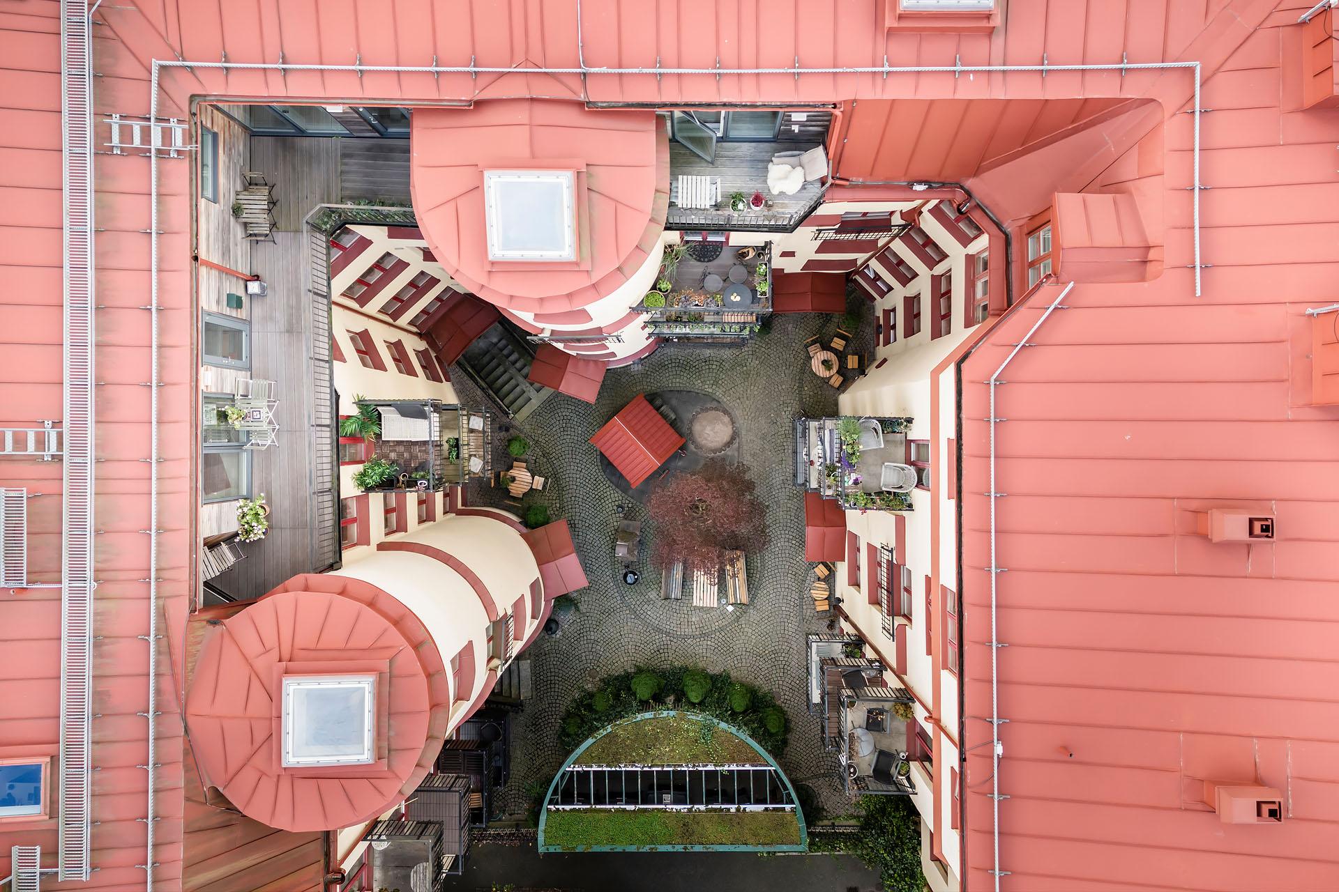 - Balkong/Uteplats: Nej. Föreningen stoltserar med en av Linnéstadens vackraste innergårdar.