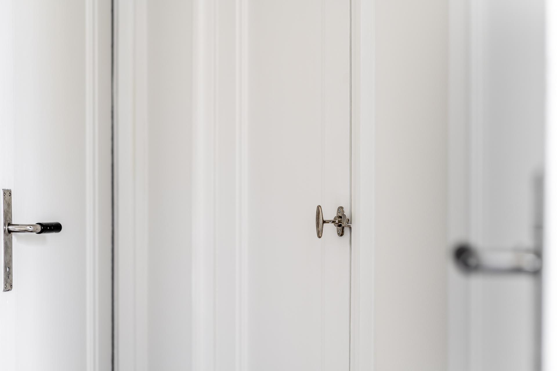 Innanför ytterdörren möts du av goda avhängningsmöjligheter och praktisk förvaring i två platsbyggda originalgarderober. Vidare in öppnar bostaden upp sig i en möblerbar inre hall som naturligt blir lägenhetens nav, här finns ytterligare en inbyggd garderob – perfekt för extra förvaring. På golvet ligger vacker stavparkett i ek och väggarna är målade i en ljus, harmonisk ton som sätter en lugn bas genom hemmet.