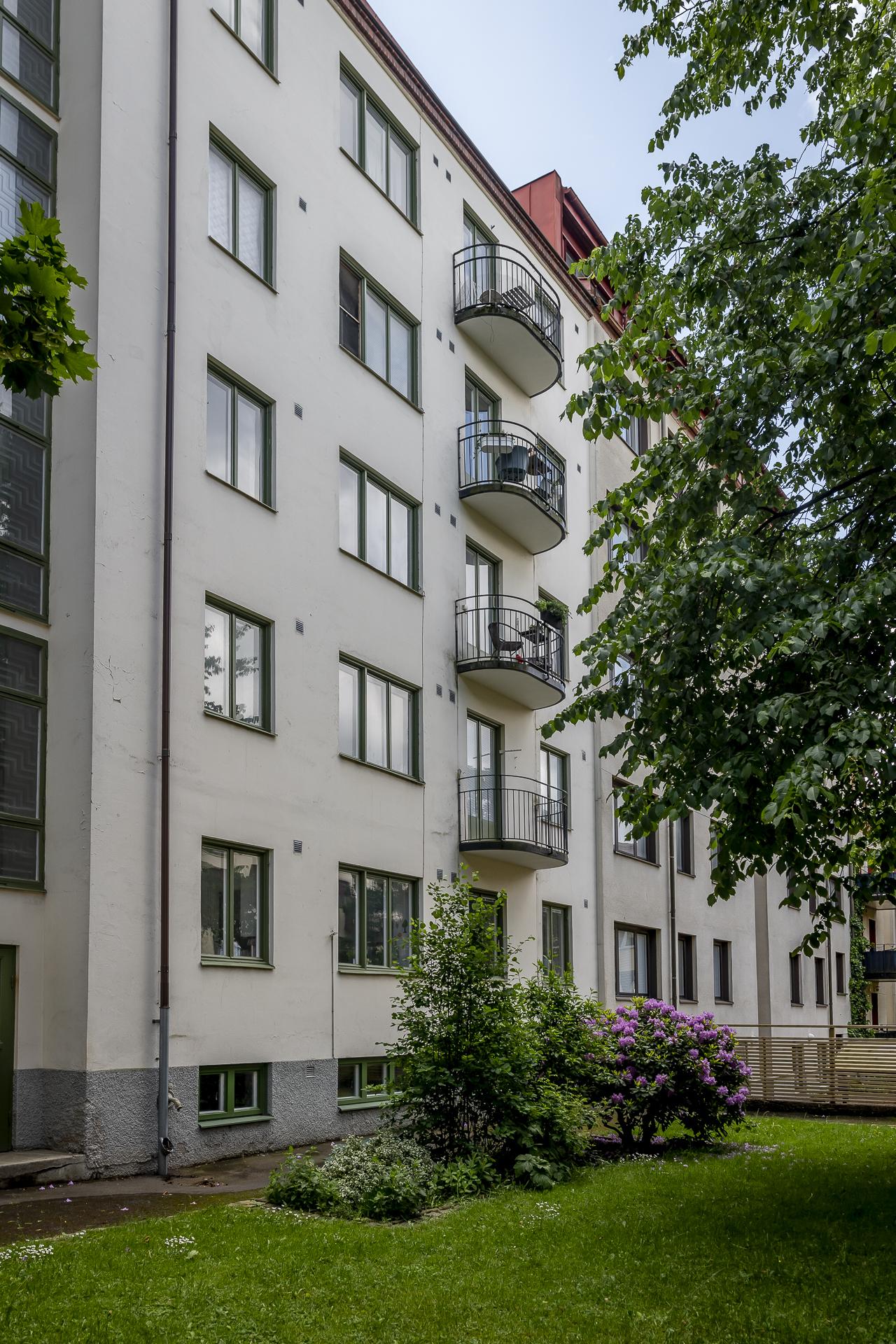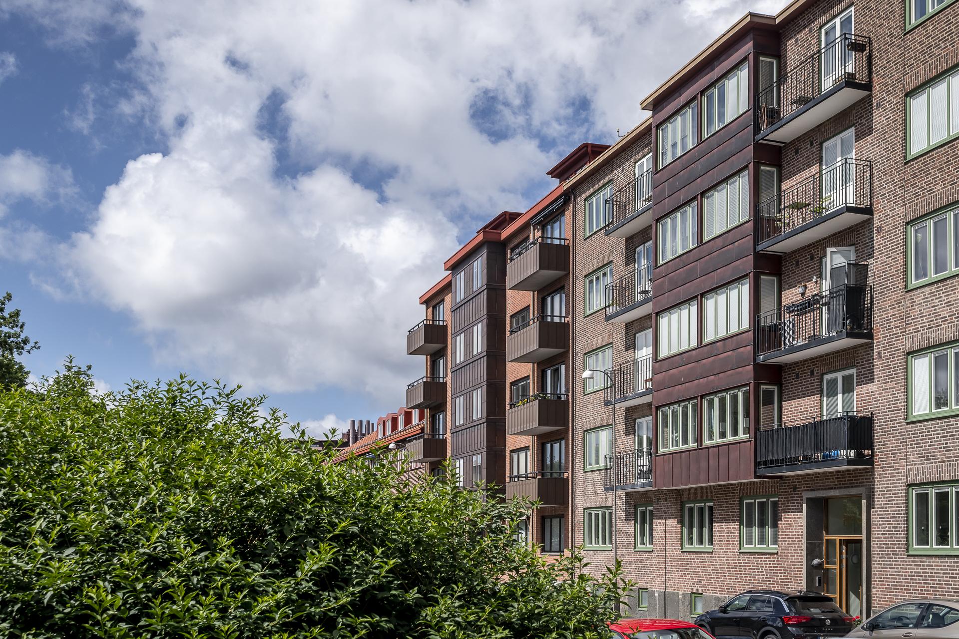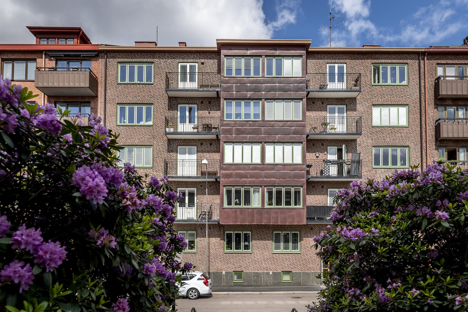 Fastigheten på Walleriusgatan 4 uppfördes 1936 och bär en vacker rödbrun tegelfasad i tidstypisk funkisstil – ett uttryck som är starkt förknippat med Göteborgs centrala stadsdelar. Brf Grönsiskan 7 är en trivsam och välskött förening där de större renoveringarna redan är genomförda och den kvarvarande hyresrätten utgör en dold tillgång. För de boende finns en gemensam tvättstuga på vinden, ett uppskattat komplement till lägenhetens egen tvättmaskin, samt en lummig och inbjudande innergård med utemöbler, odlingsmöjligheter och grillplats. Här erbjuds även goda förvaringslösningar med cykelparkering under tak på gården och i låst cykelrum, liksom både källar- och vindsförråd.