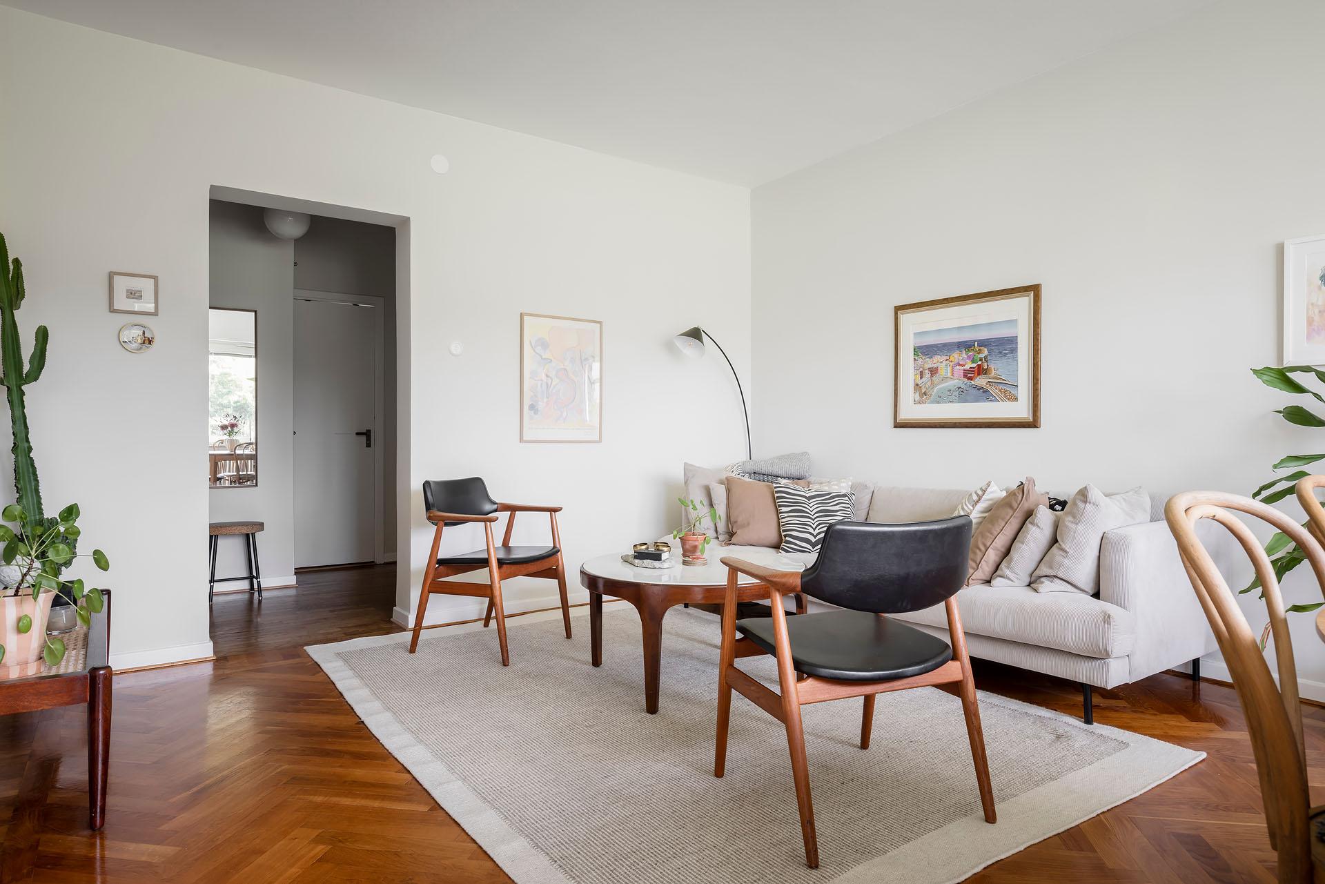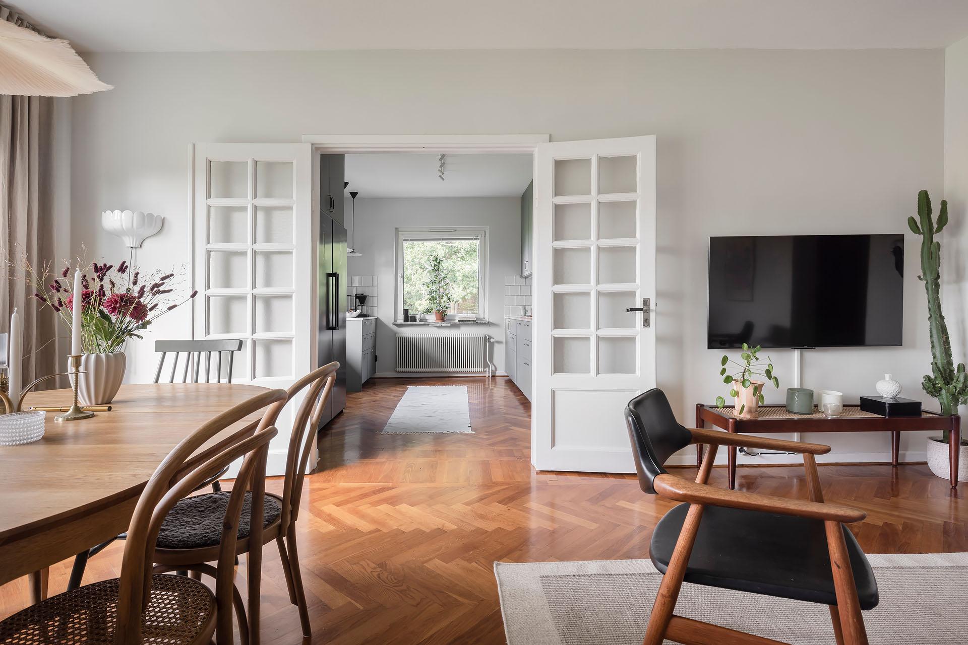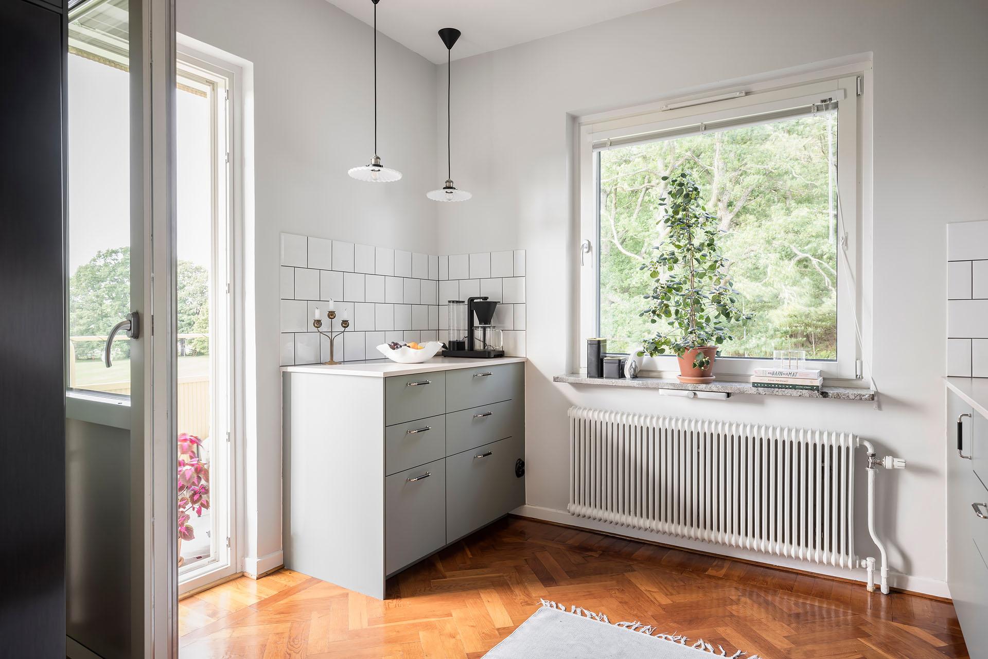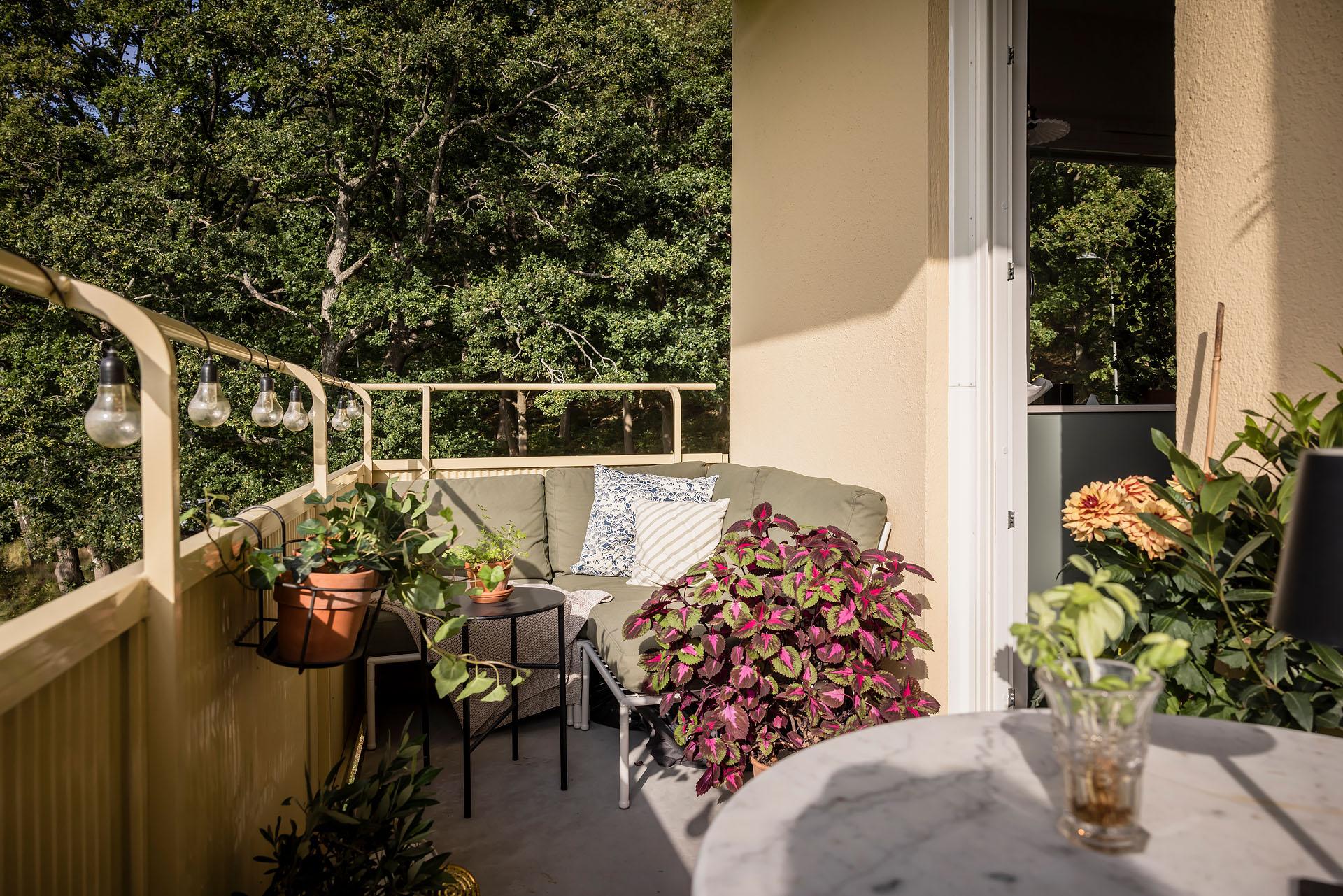 Fönster i tre väderstreck fyller den här ombyggda och smakfullt renoverade gaveltrean med ljus. Från vardagsrummet, köket och den stora balkongen med härlig kvällssol är det fri utsikt över en lummig grönyta. Lägenheten bjuder in till umgänge, och i vardagsrummet finns det plats för att duka upp till trevliga middagar med många gäster. Den breda öppningen mot köket ger känslan av en öppen planlösning samtidigt som pardörrarna med spröjsade fönster gör det möjligt att skilja av. Läget är svårslaget, och här erbjuds ett lugnt, avskilt och barnvänligt boende med naturen som närmaste granne. Promenadvägar genom skogen leder fram till picknickparadiset Apslätten, Skatås motionsområde och Härlanda tjärns badplats. Tillträde: flexibelt. Varmt välkommen hem!